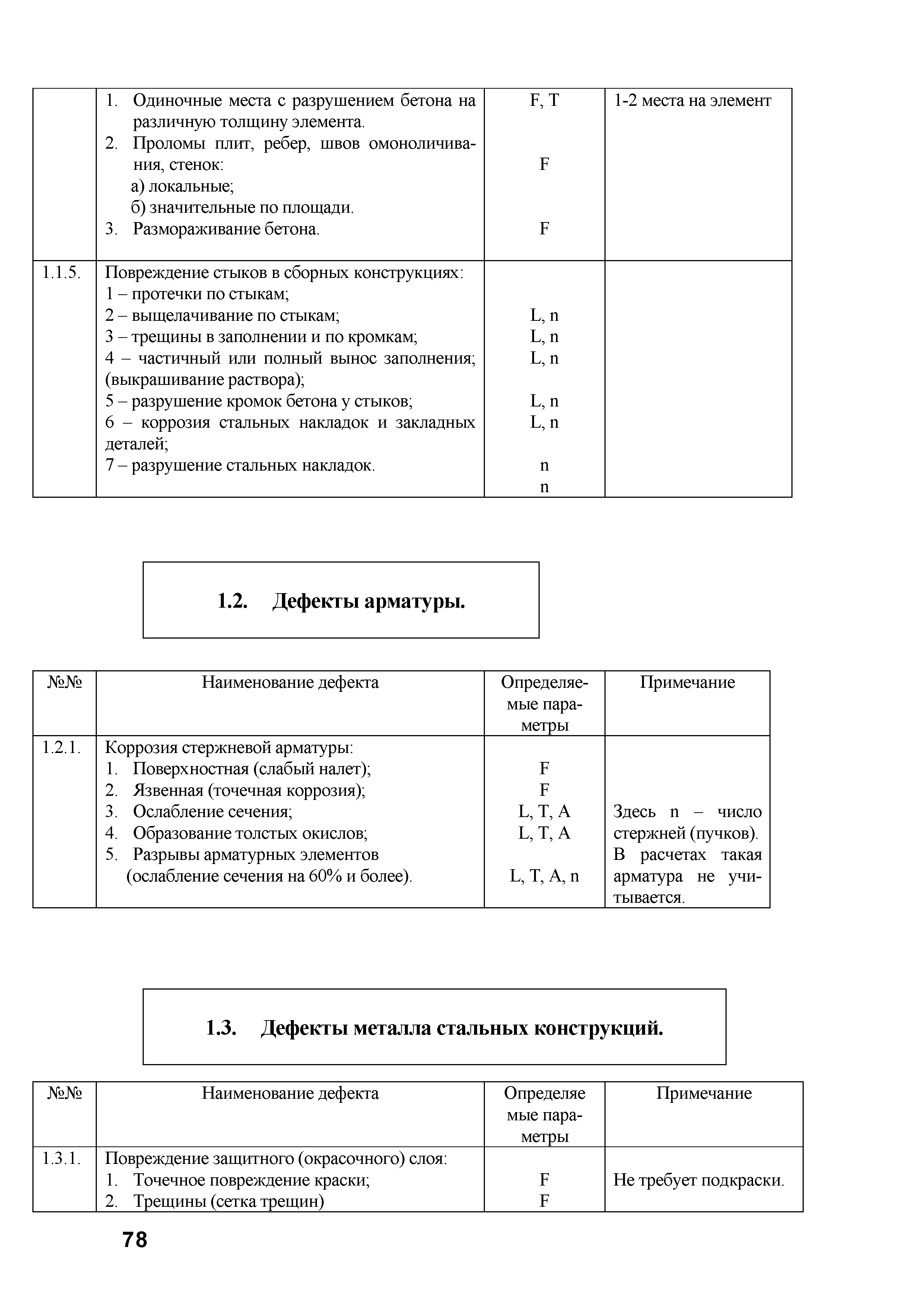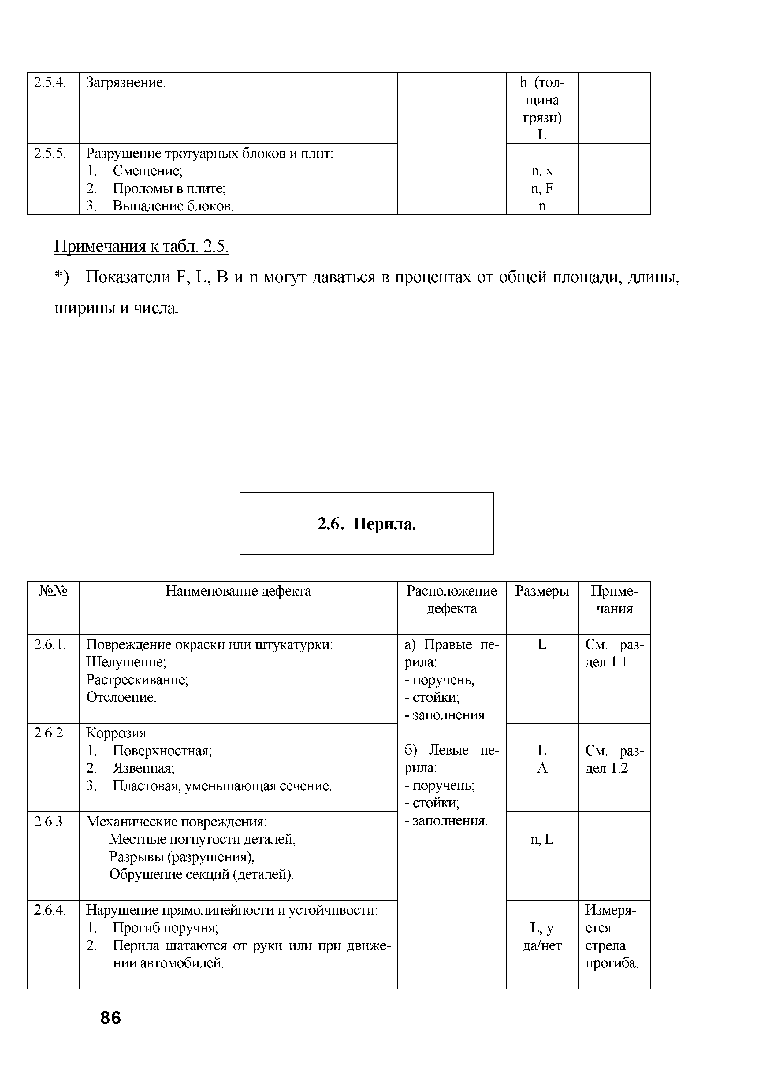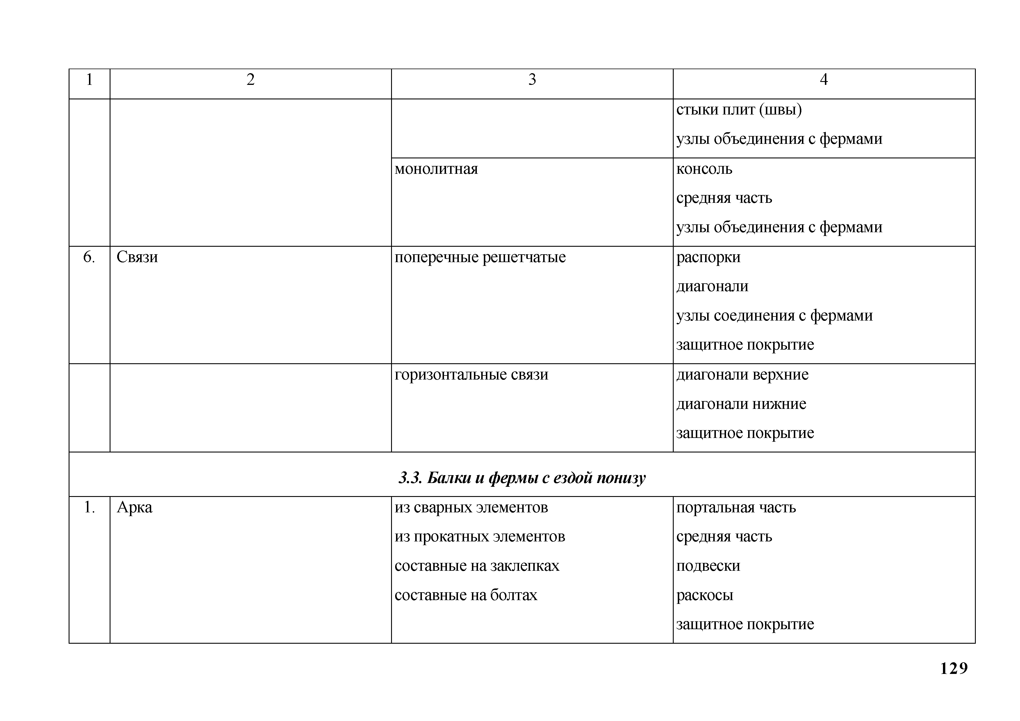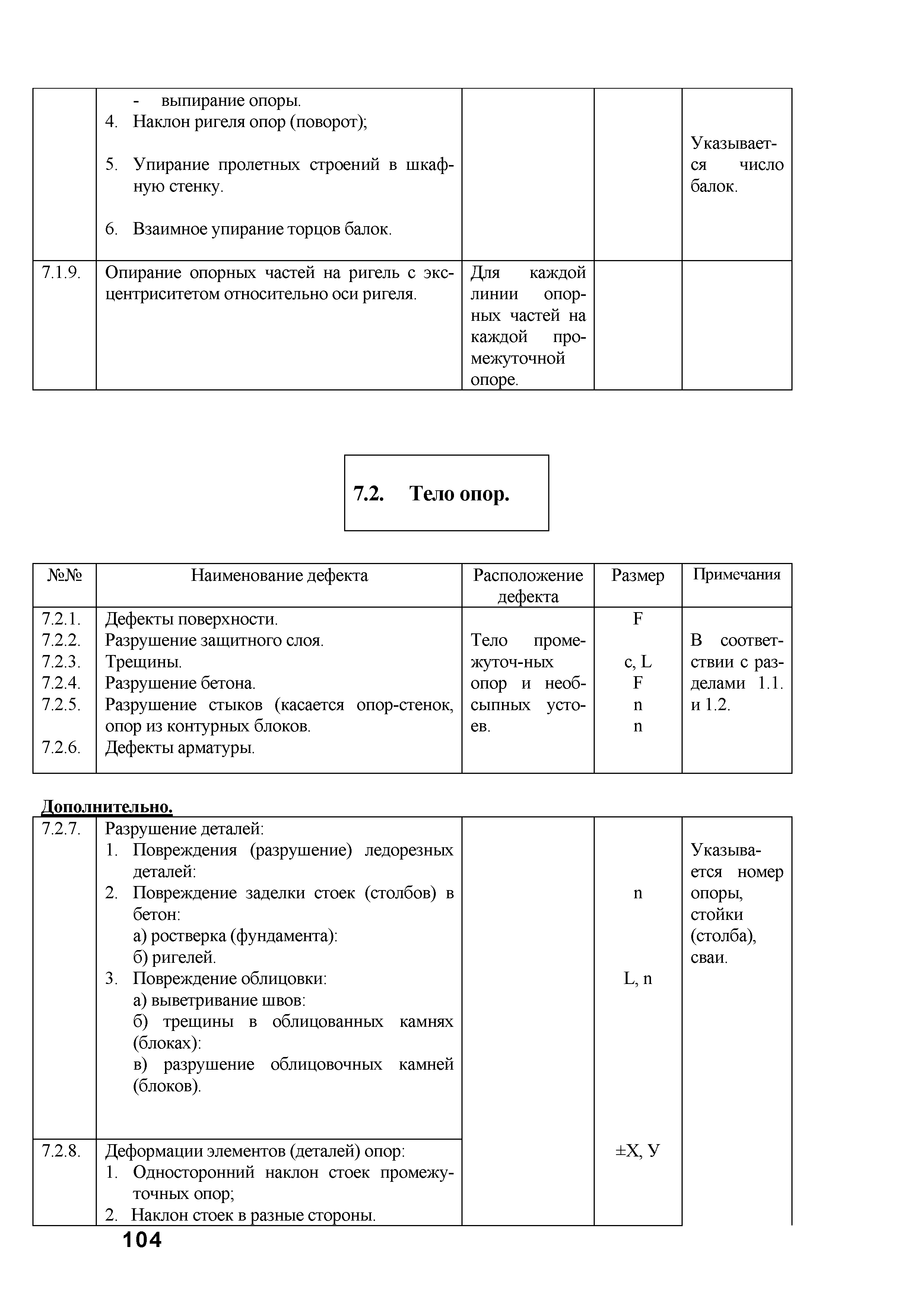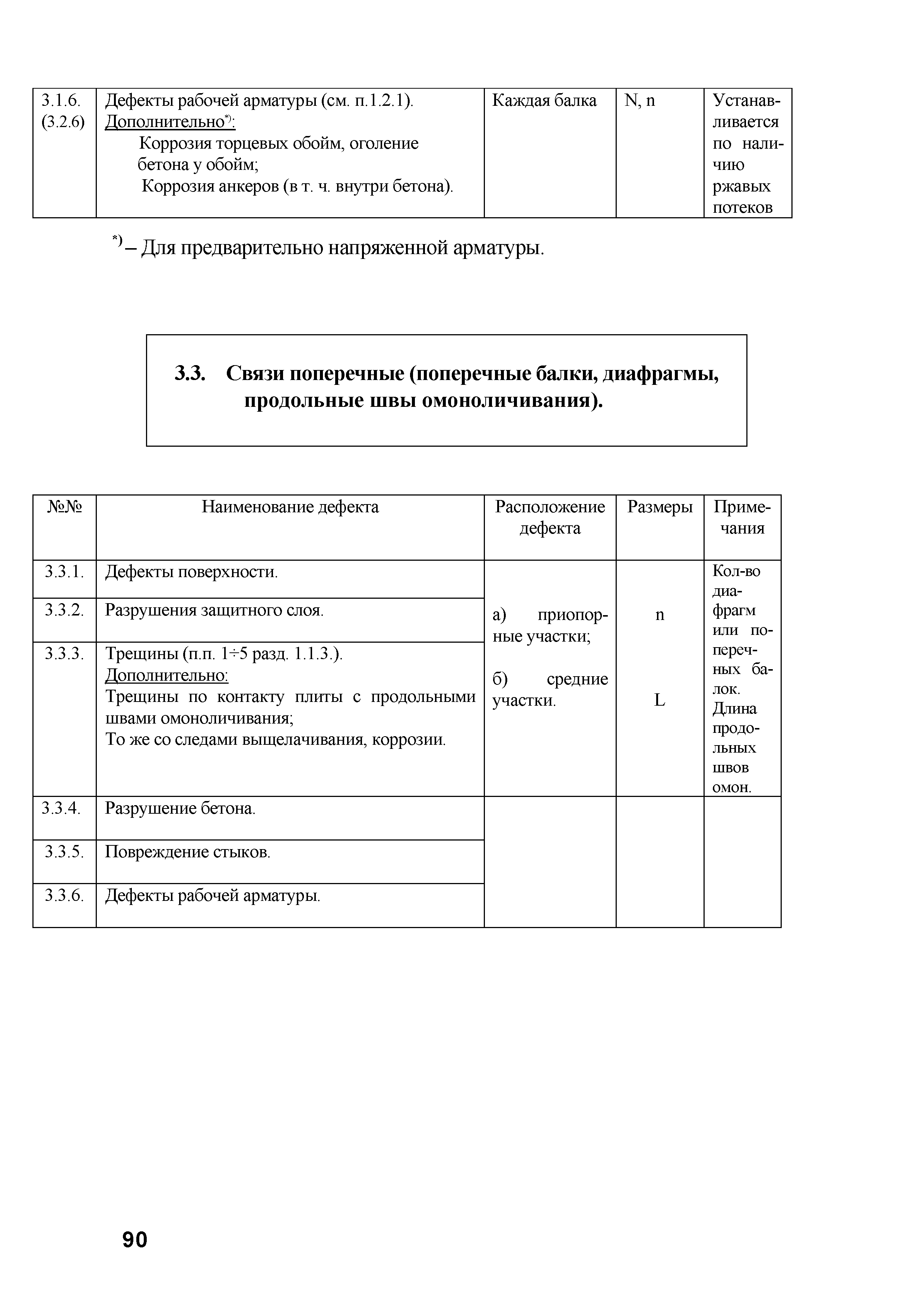 | Оглавление: | 1. Предисловие 2. Общие положения 3. Формы паспорта, порядок диагностики и записи информации. Пояснения к формам паспорта 3.1. Титульный лист паспорта 3.2. Форма 1. "Общие сведения". Пояснения к форме 1 3.3. Форма 2. "Пролетное строение". Пояснения к форме 2 3.4. Форма 3. "Опоры". Пояснения к форме 3 3.5. Форма 4. "Список технической документации". Пояснения к форме 4 3.6. Форма 5. "Ведомость дефектов". Пояснения к форме 5 3.7. Форма 6. "Состояние сооружения". Пояснения к форме 6 3.8. Форма Д. "Дополнительная информация". Пояснения к форме "Д" 3.9. Пояснительная записка, пояснения Приложение 1. Перечень федеральных округов Приложение 2. Таблицы для заполнения форм паспорта Приложение 3. Перечень дефектов, включаемых в форму 5 Приложение 4. Каталог конструкций и элементов Приложение 5. Оценка состояния Приложение 6. Документы, используемые при заполнении форм паспорта |
