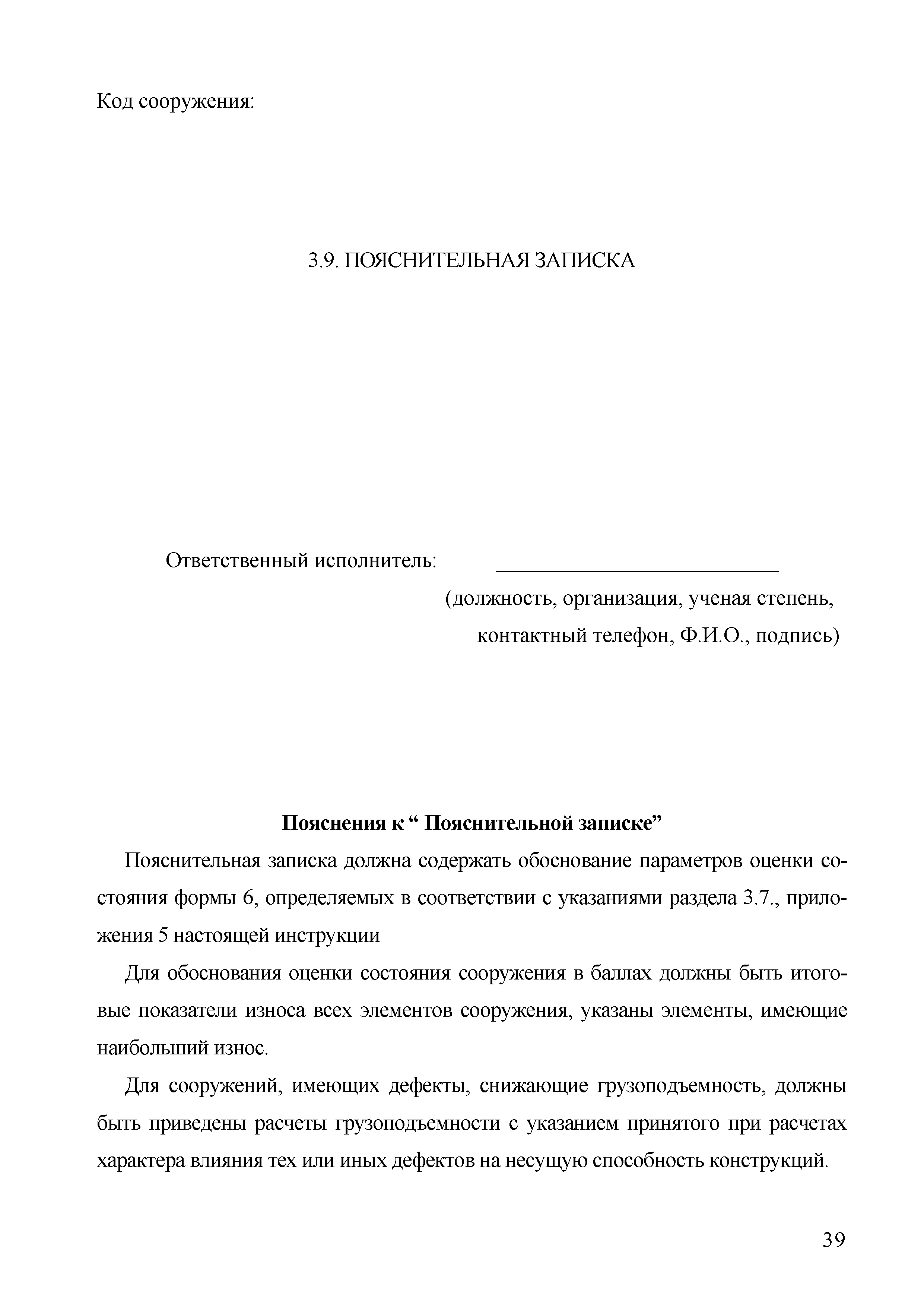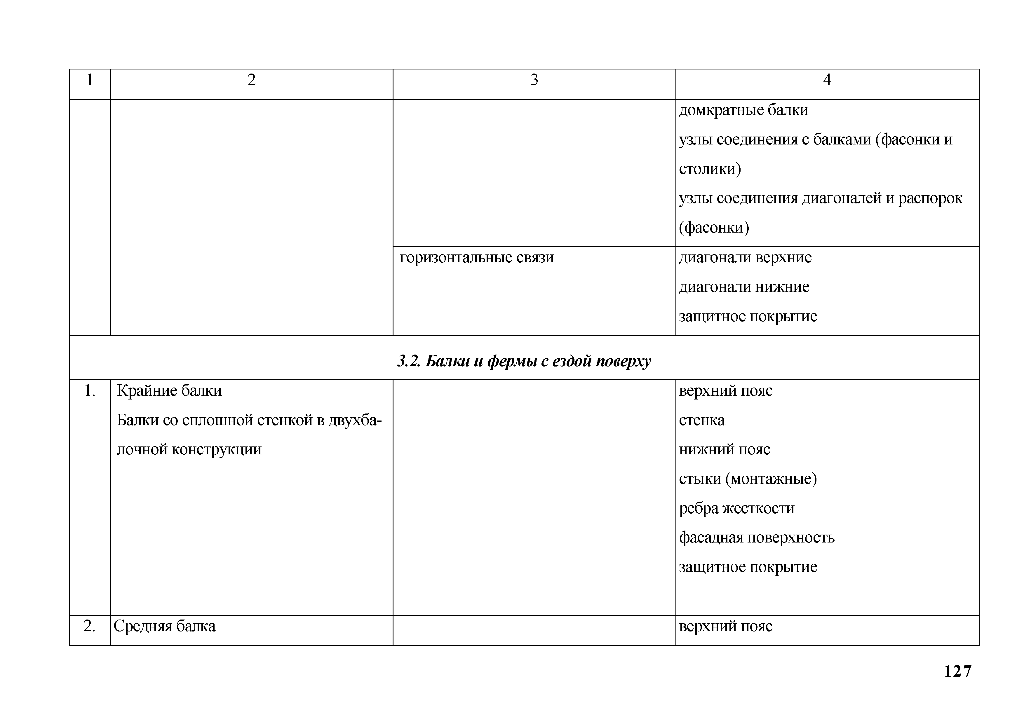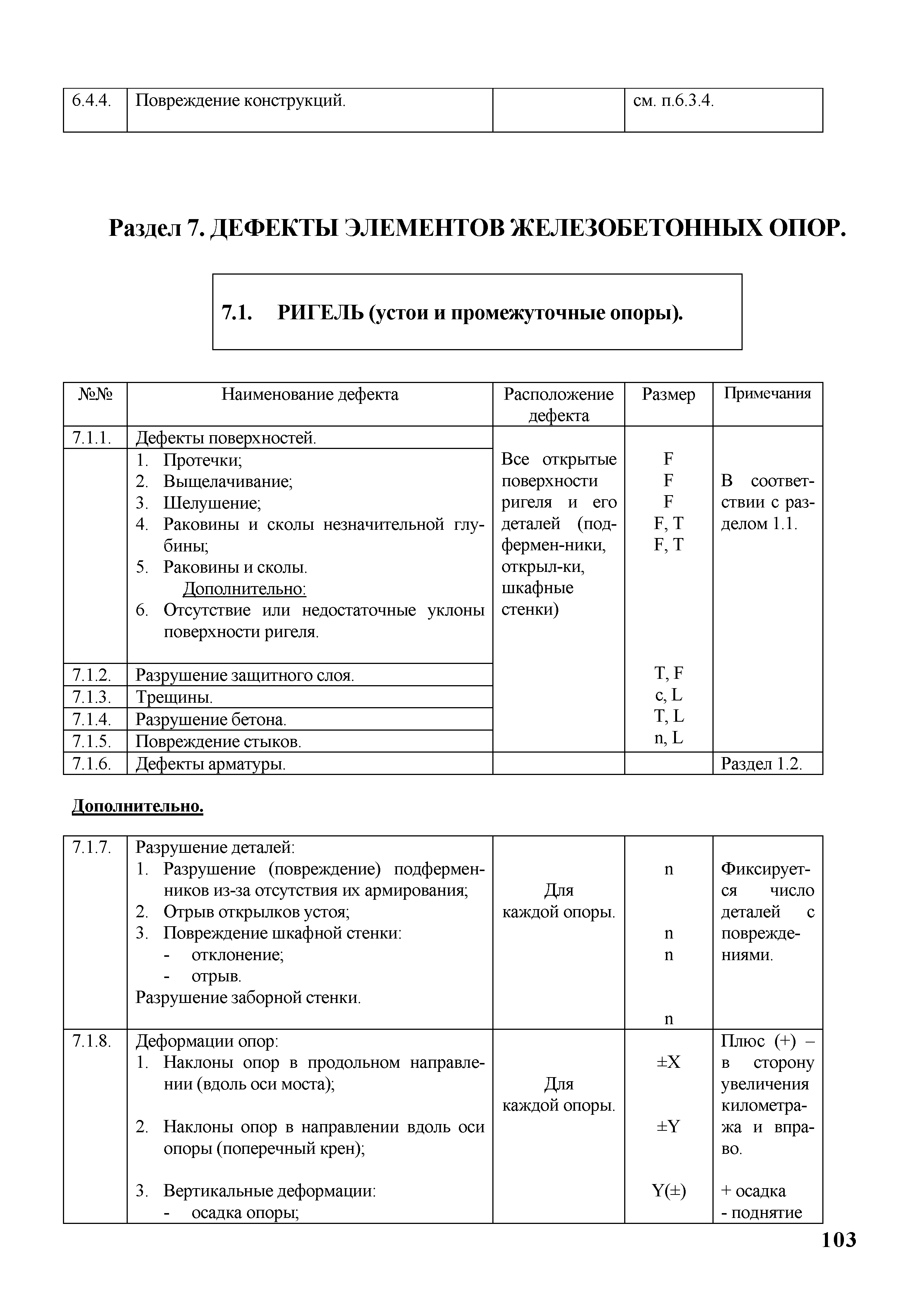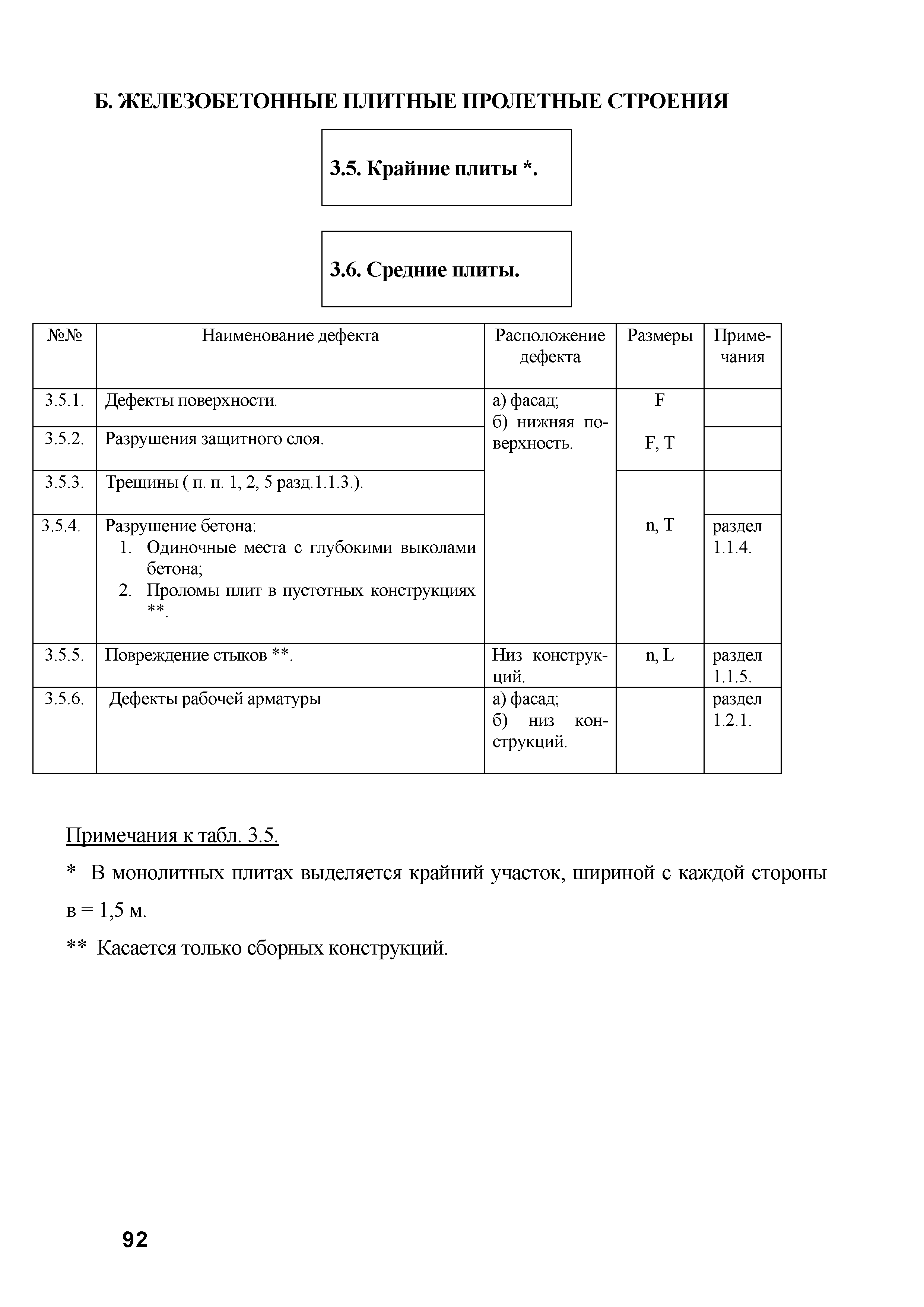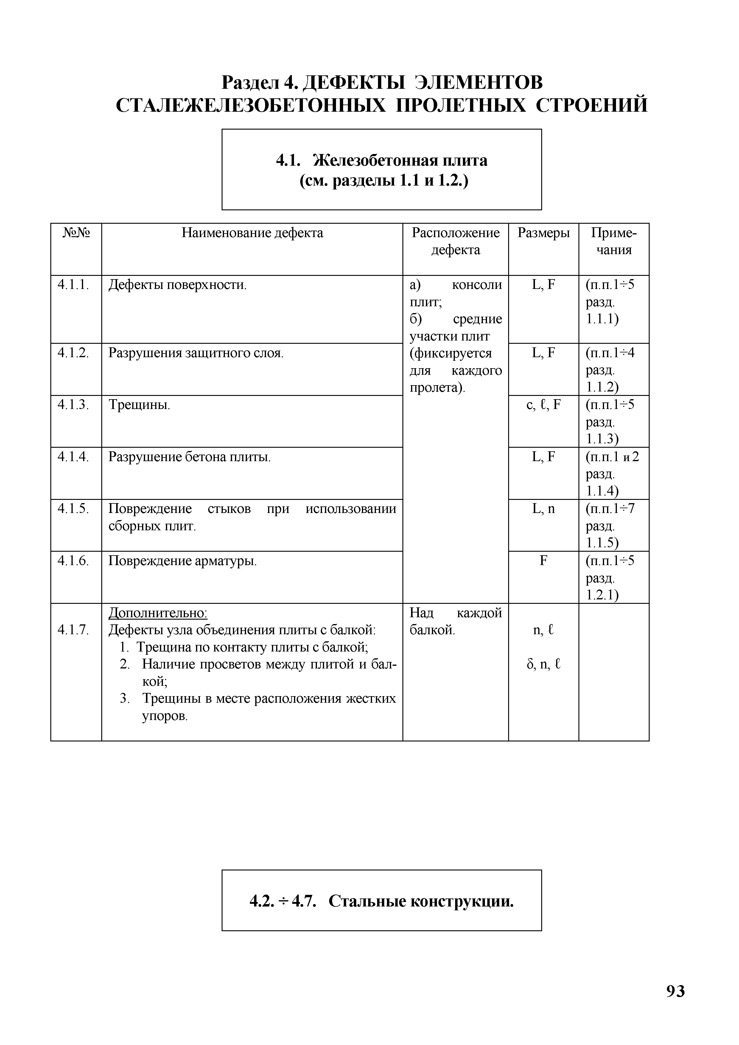 | Оглавление: | 1. Предисловие 2. Общие положения 3. Формы паспорта, порядок диагностики и записи информации. Пояснения к формам паспорта 3.1. Титульный лист паспорта 3.2. Форма 1. "Общие сведения". Пояснения к форме 1 3.3. Форма 2. "Пролетное строение". Пояснения к форме 2 3.4. Форма 3. "Опоры". Пояснения к форме 3 3.5. Форма 4. "Список технической документации". Пояснения к форме 4 3.6. Форма 5. "Ведомость дефектов". Пояснения к форме 5 3.7. Форма 6. "Состояние сооружения". Пояснения к форме 6 3.8. Форма Д. "Дополнительная информация". Пояснения к форме "Д" 3.9. Пояснительная записка, пояснения Приложение 1. Перечень федеральных округов Приложение 2. Таблицы для заполнения форм паспорта Приложение 3. Перечень дефектов, включаемых в форму 5 Приложение 4. Каталог конструкций и элементов Приложение 5. Оценка состояния Приложение 6. Документы, используемые при заполнении форм паспорта |