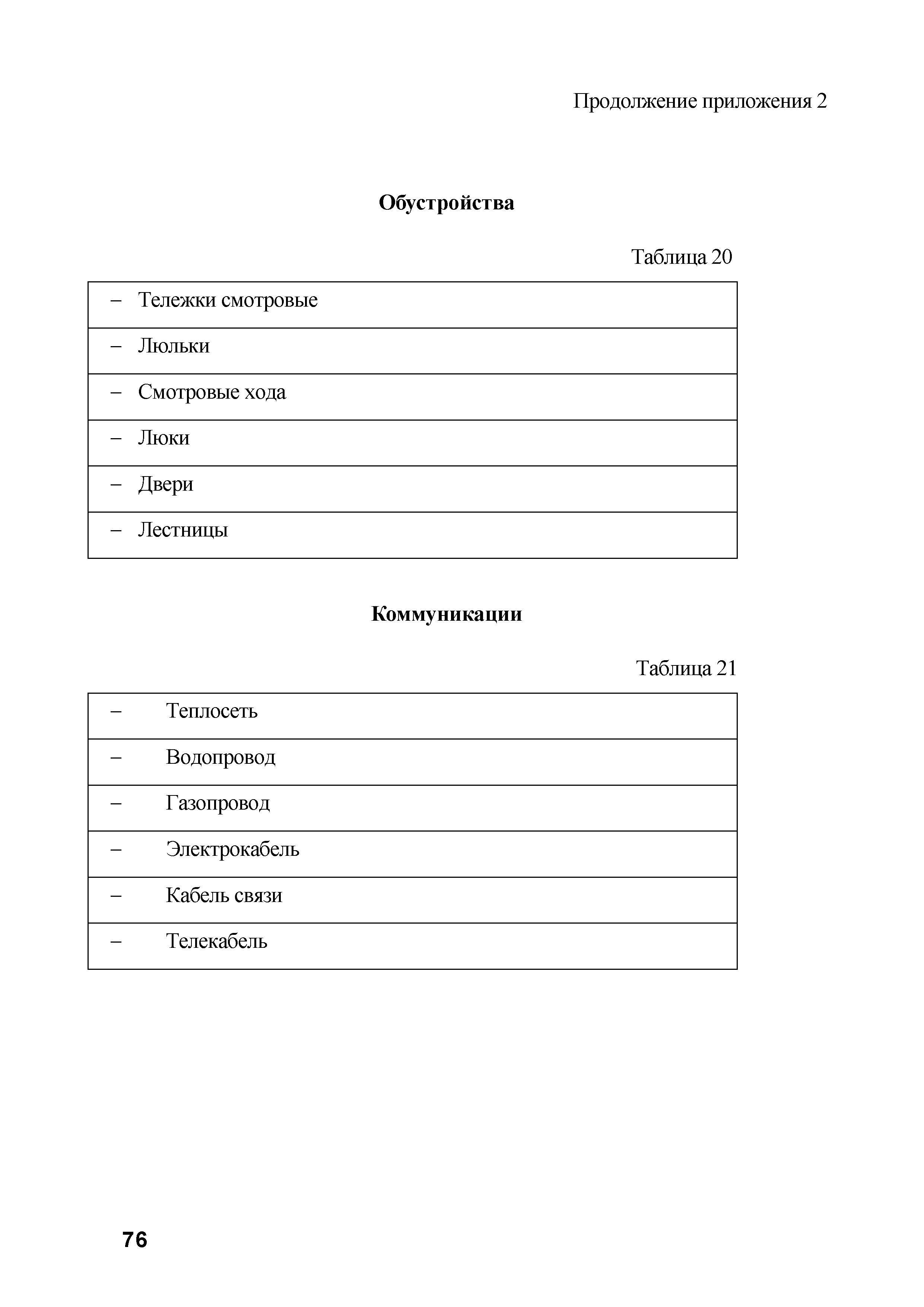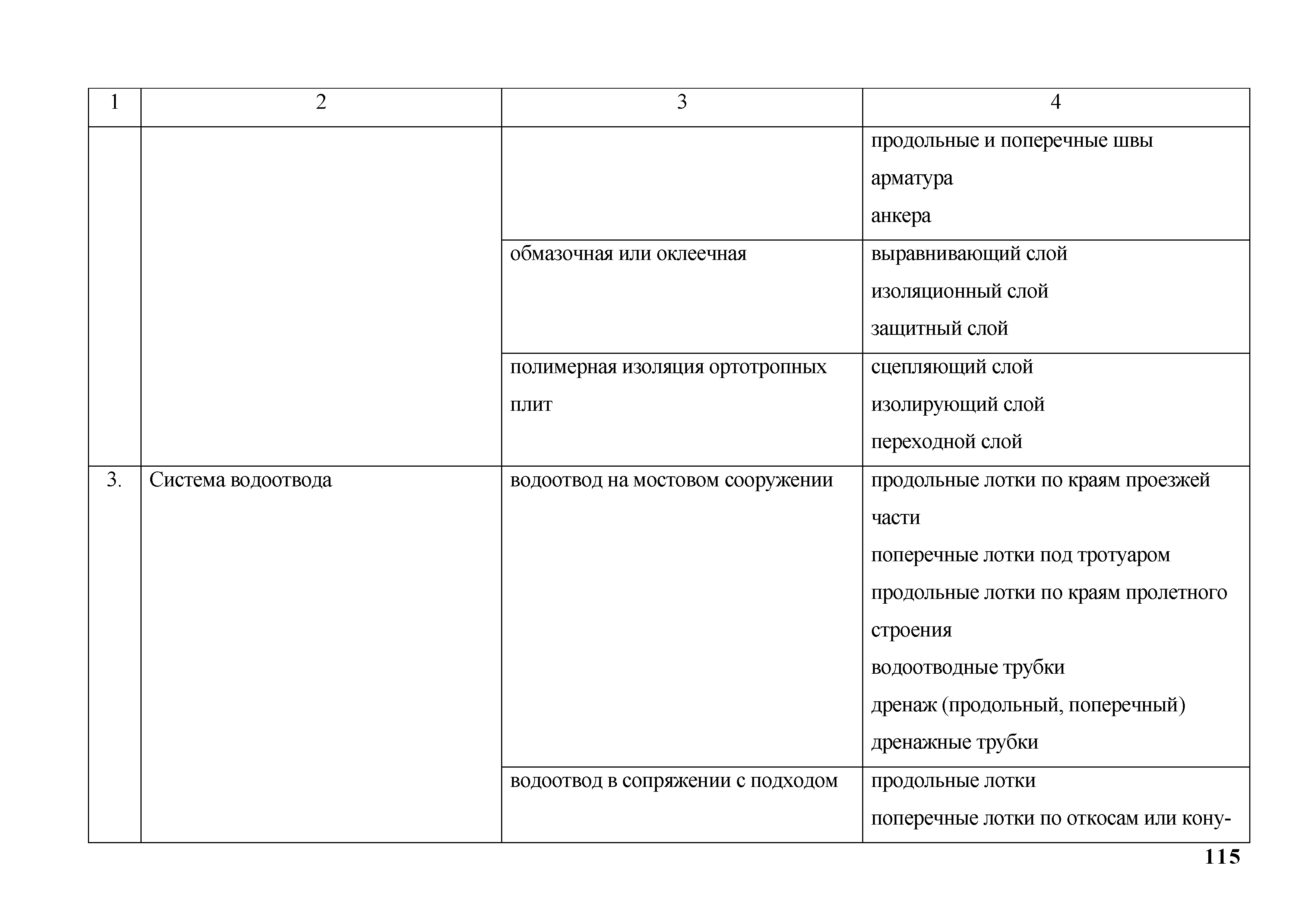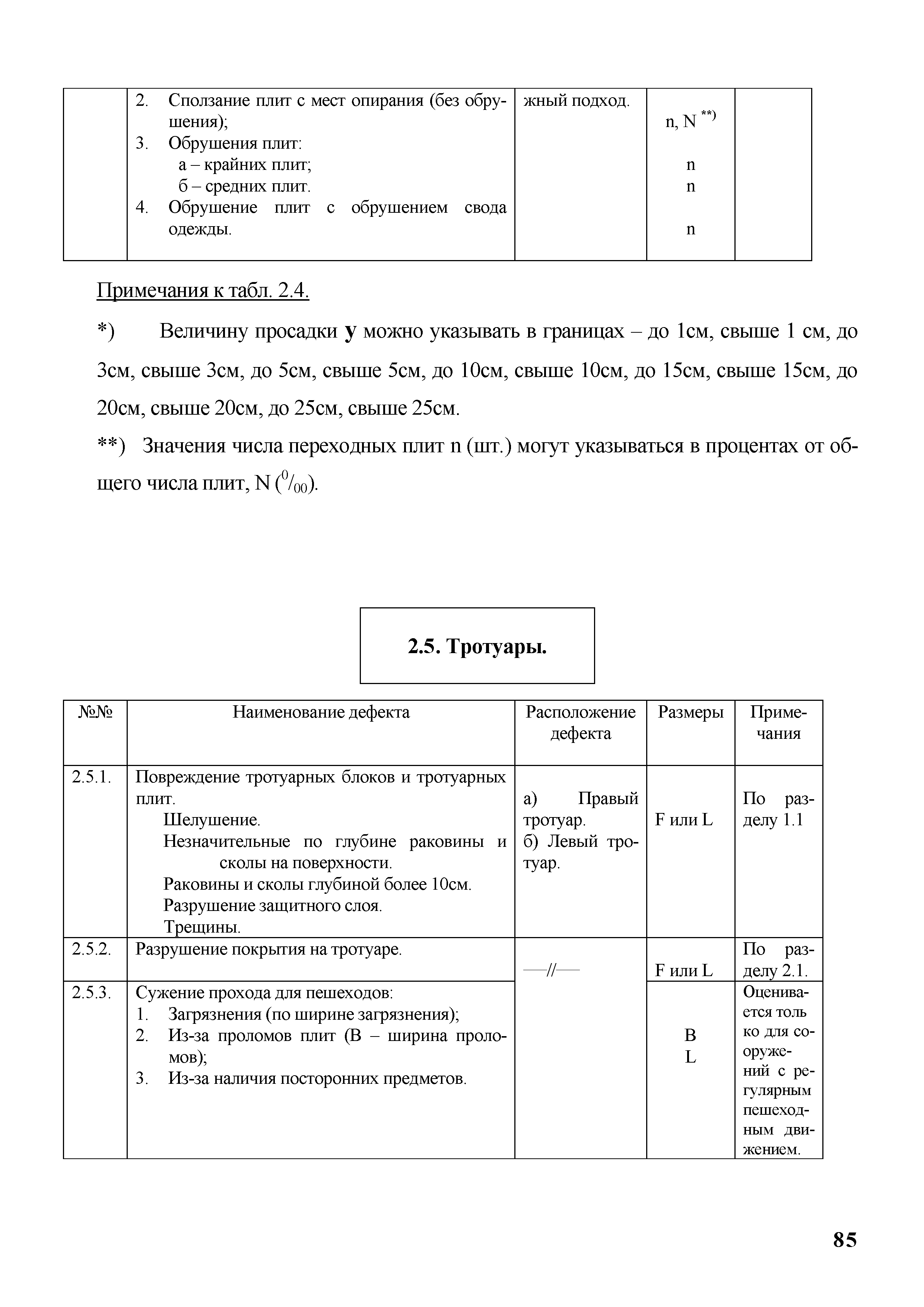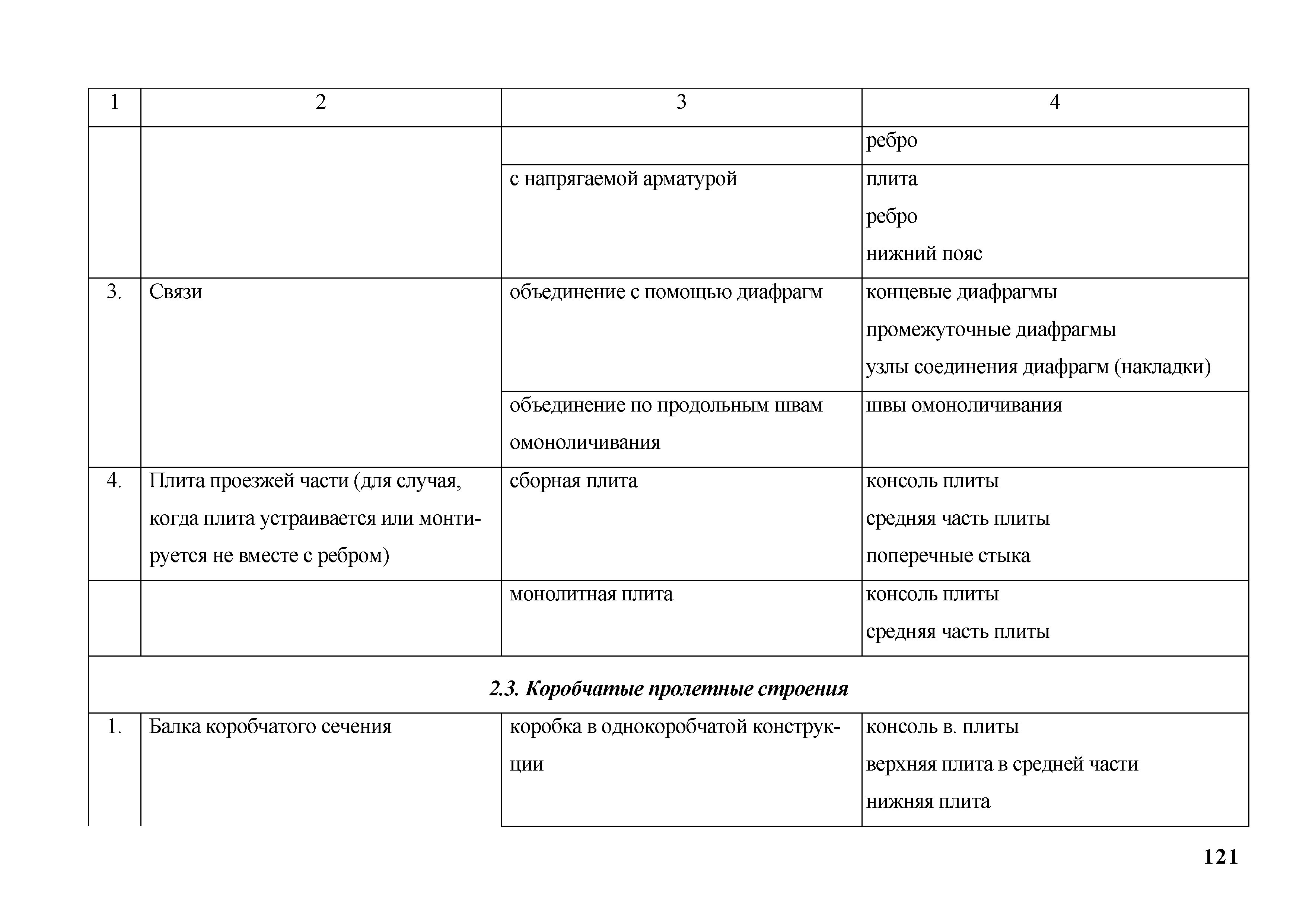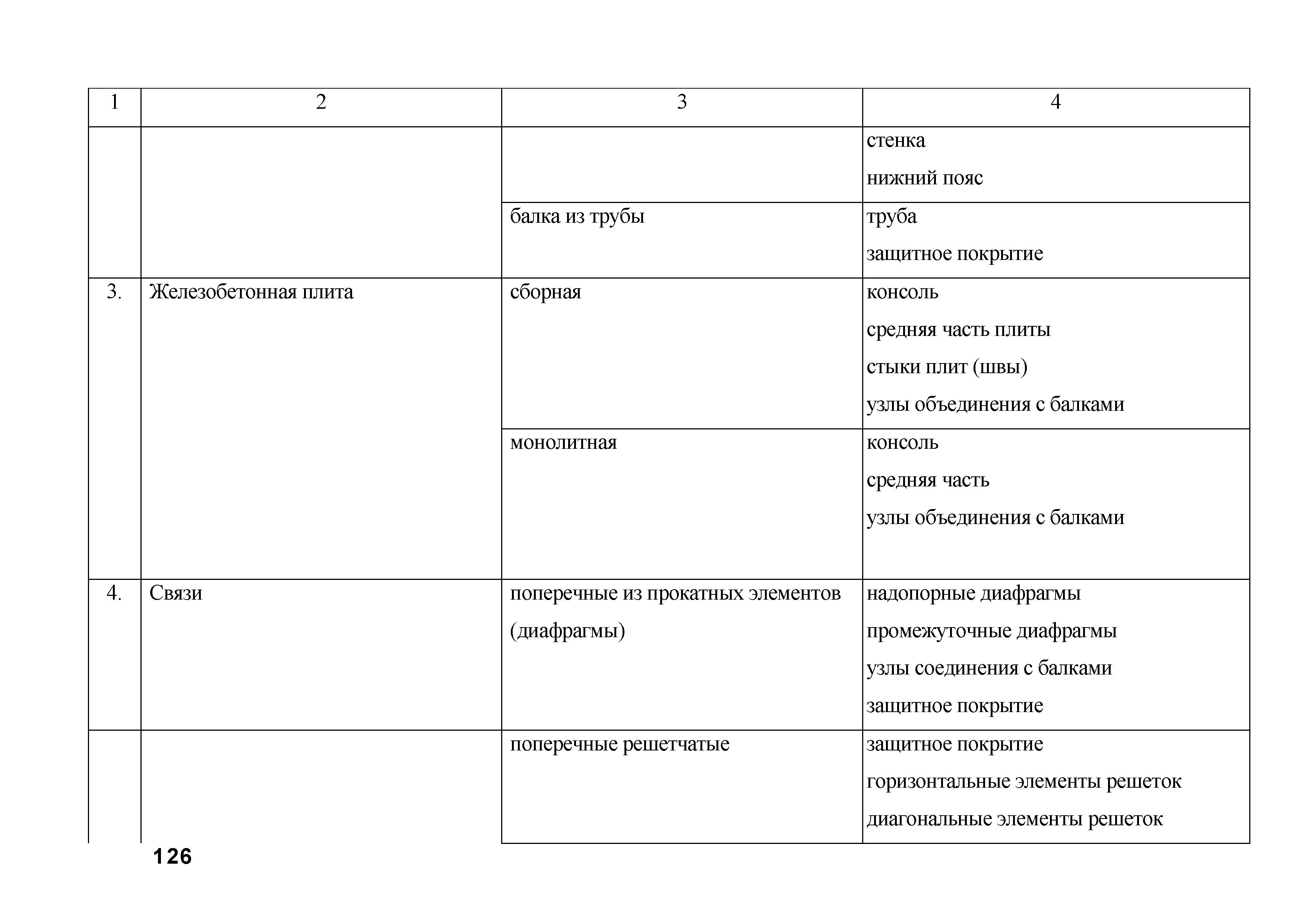| Оглавление: | 1. Предисловие 2. Общие положения 3. Формы паспорта, порядок диагностики и записи информации. Пояснения к формам паспорта 3.1. Титульный лист паспорта 3.2. Форма 1. "Общие сведения". Пояснения к форме 1 3.3. Форма 2. "Пролетное строение". Пояснения к форме 2 3.4. Форма 3. "Опоры". Пояснения к форме 3 3.5. Форма 4. "Список технической документации". Пояснения к форме 4 3.6. Форма 5. "Ведомость дефектов". Пояснения к форме 5 3.7. Форма 6. "Состояние сооружения". Пояснения к форме 6 3.8. Форма Д. "Дополнительная информация". Пояснения к форме "Д" 3.9. Пояснительная записка, пояснения Приложение 1. Перечень федеральных округов Приложение 2. Таблицы для заполнения форм паспорта Приложение 3. Перечень дефектов, включаемых в форму 5 Приложение 4. Каталог конструкций и элементов Приложение 5. Оценка состояния Приложение 6. Документы, используемые при заполнении форм паспорта |