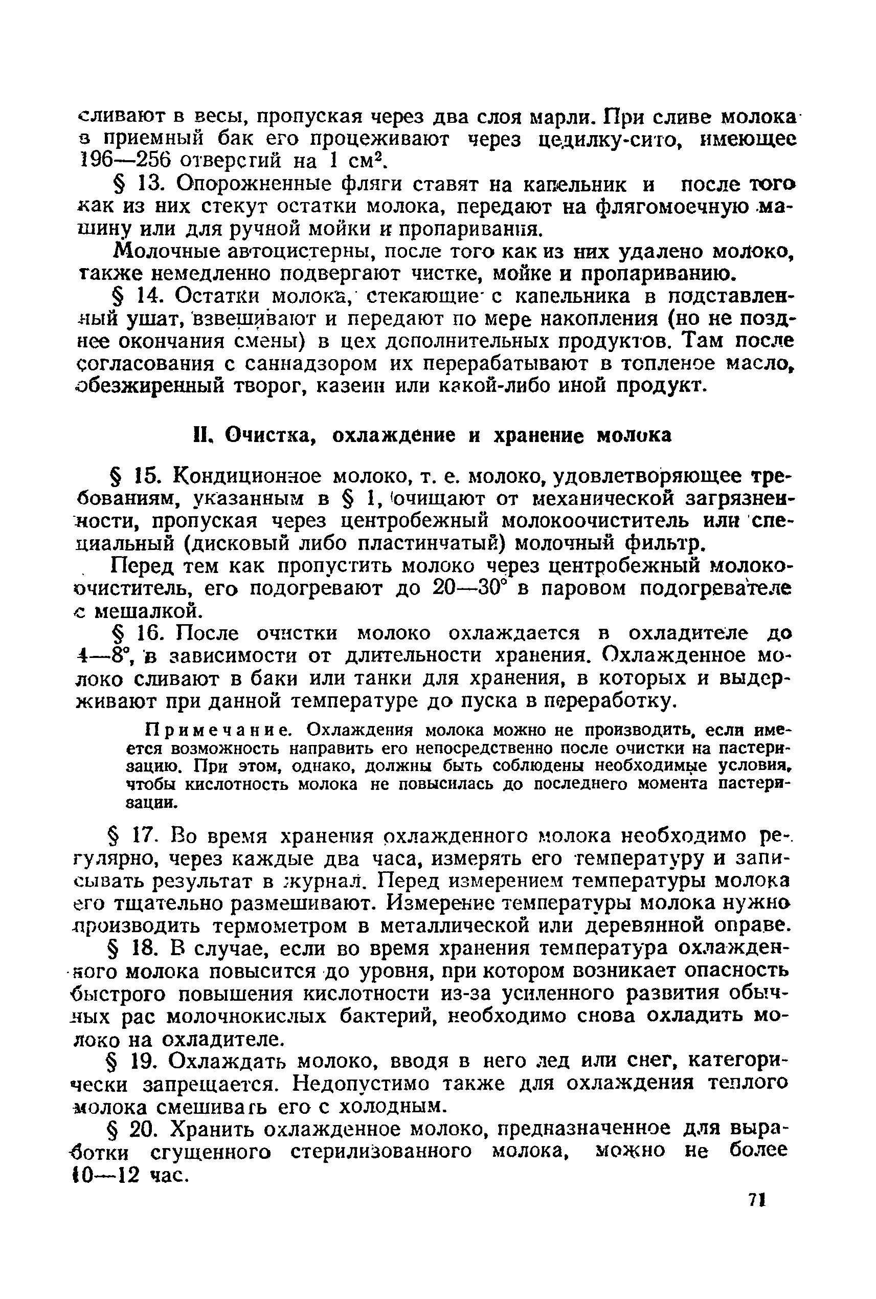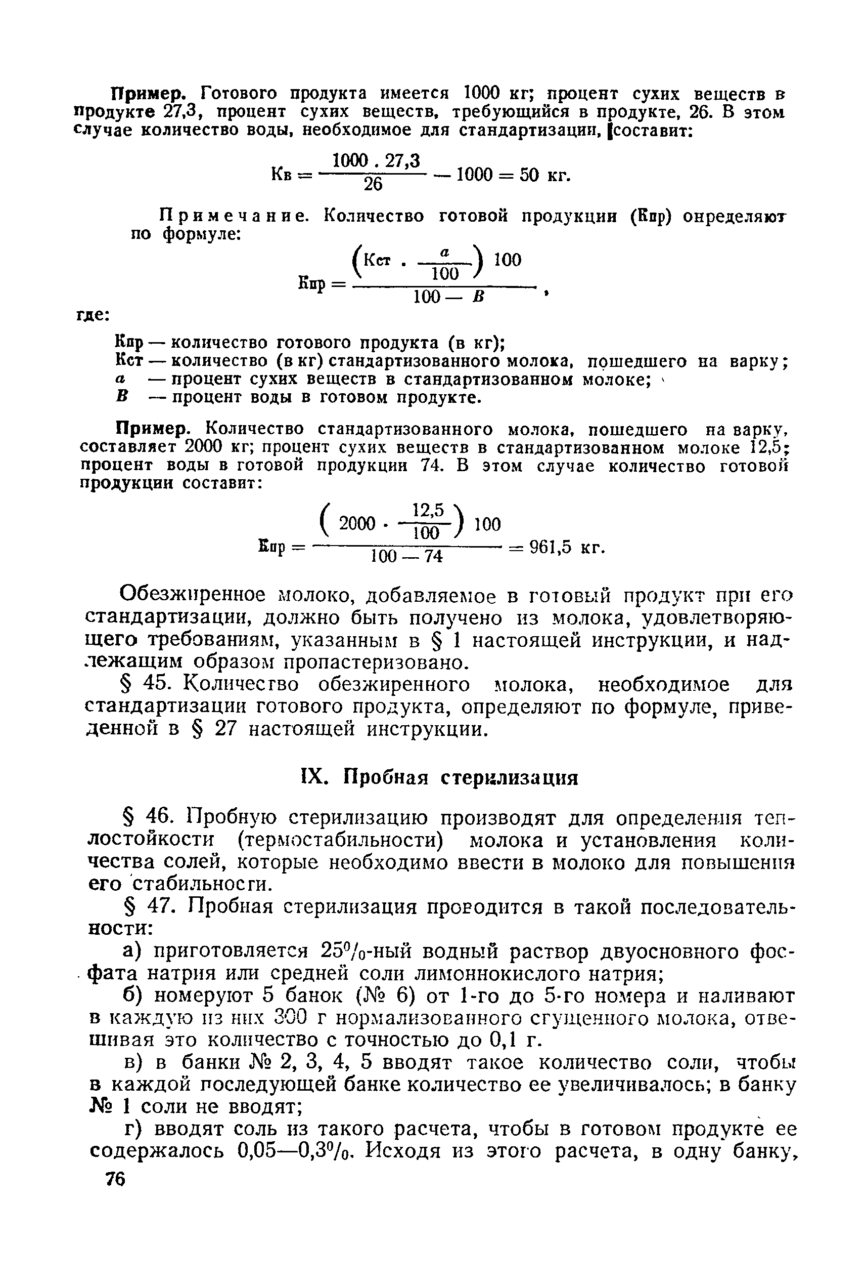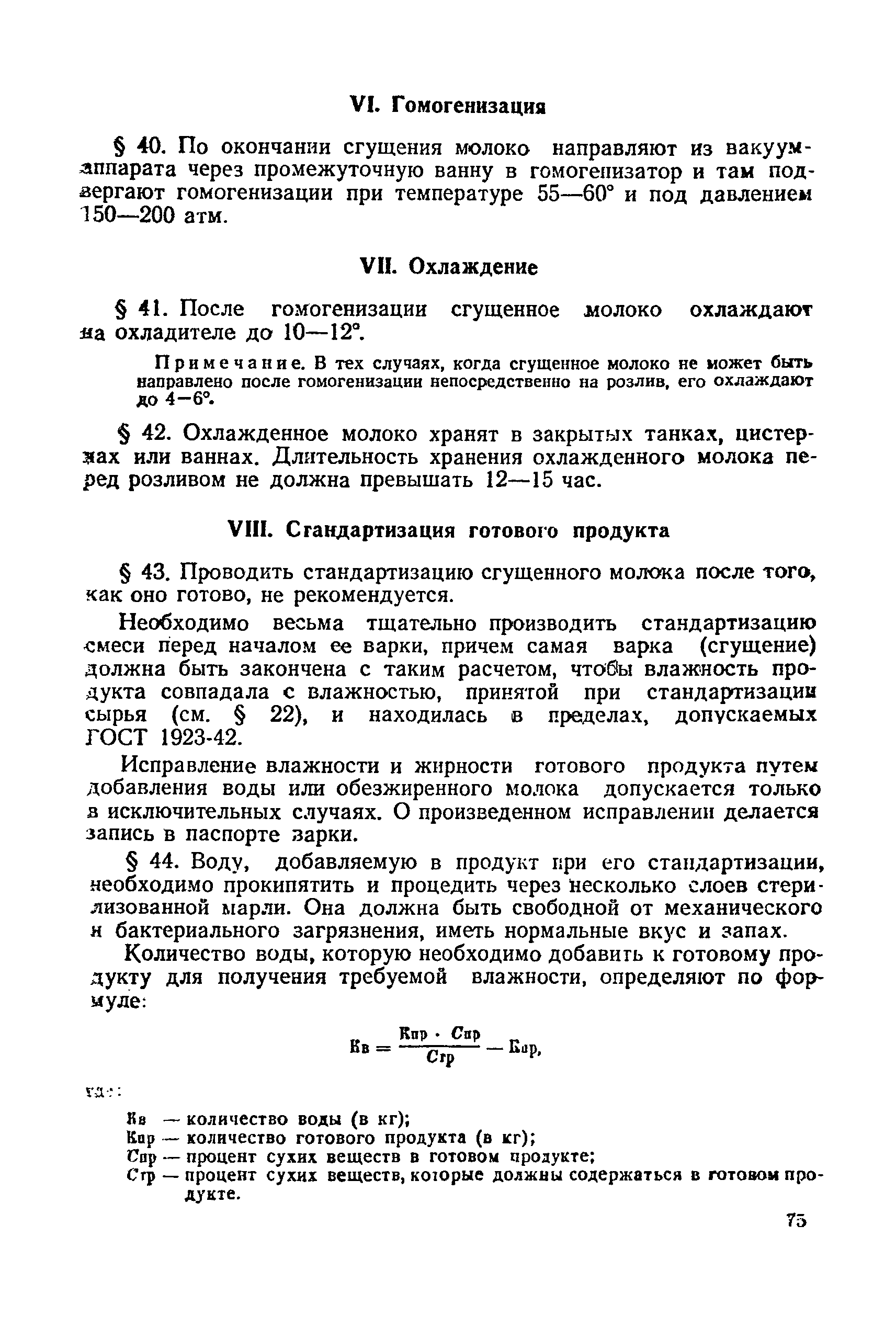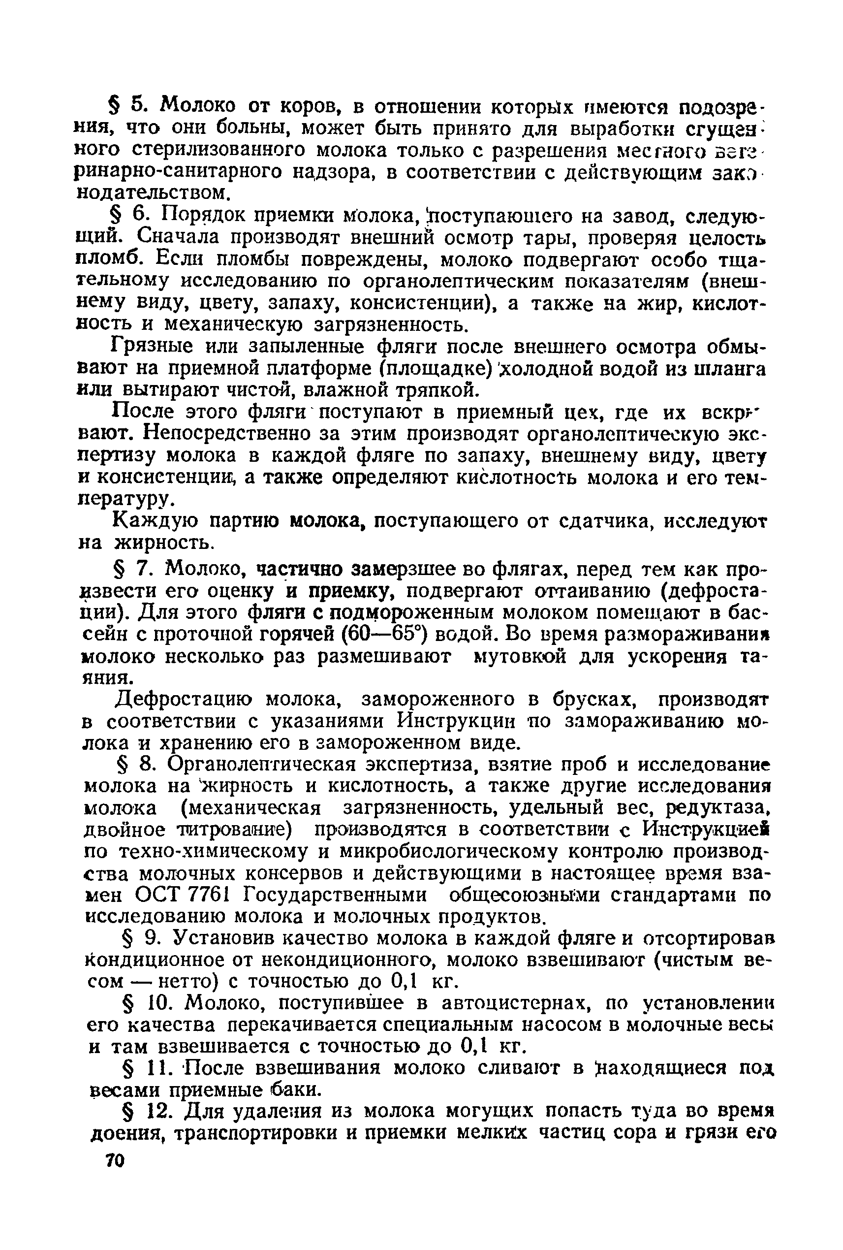 Технологическая инструкция по производству сгущенного стерилизованного молока| Статус: | действует | | Название рус.: | Технологическая инструкция по производству сгущенного стерилизованного молока | | Дата добавления в базу: | 01.02.2017 | | Дата актуализации: | 01.01.2021 | | Дата введения: | 16.10.1946 | | Оглавление: | I. Приемка молока II. Очистка, охлаждение и хранение молока III. Стандартизация молока IV. Предварительное подогревание (пастеризация) V. Сгущение молока VI. Гомогенизация VII. Охлаждение VIII. Стандартизация готового продукта IX. Пробная стерилизация X. Розлив сгущенного молока XI. Стерилизация и охлаждение XII. Встряхивание XIII. Выдерживание XIV. Упаковка и хранение | | Утверждён: | 16.10.1946 Министерство мясной и молочной промышленности СССР