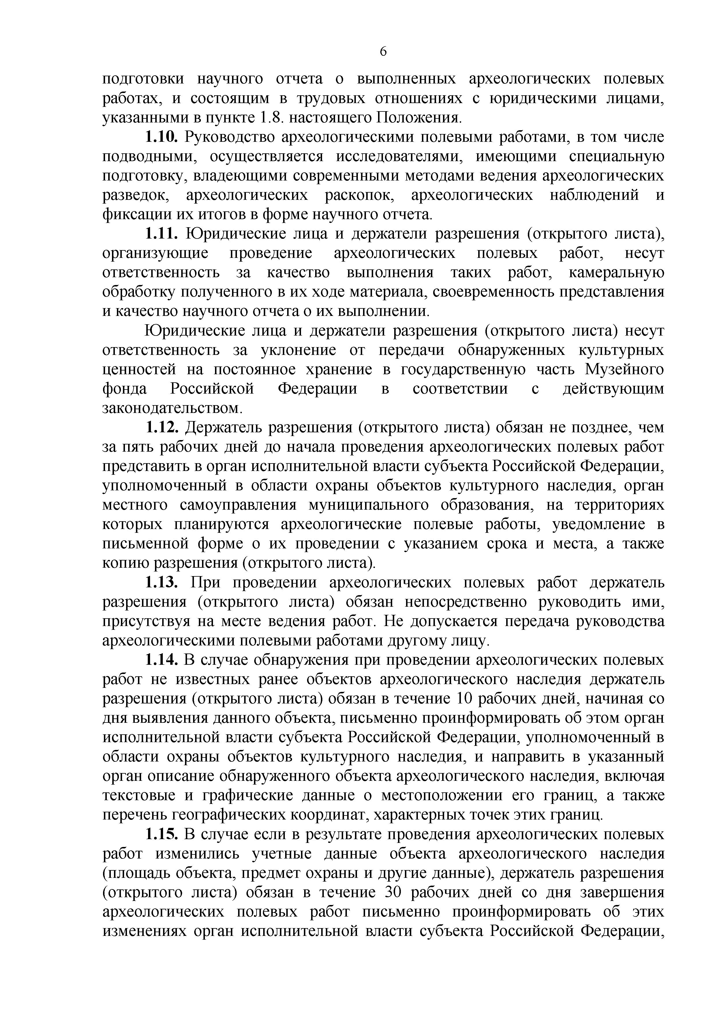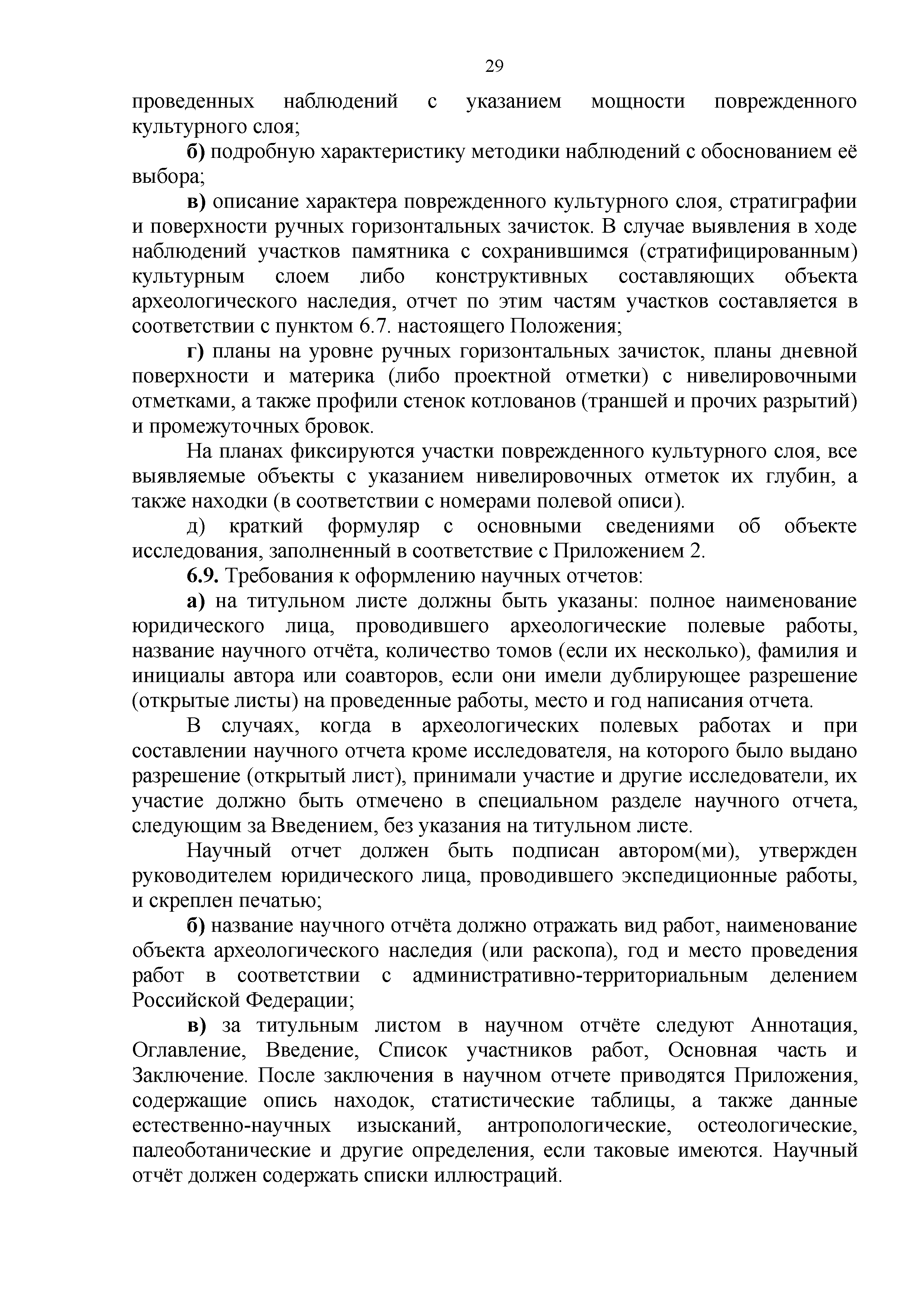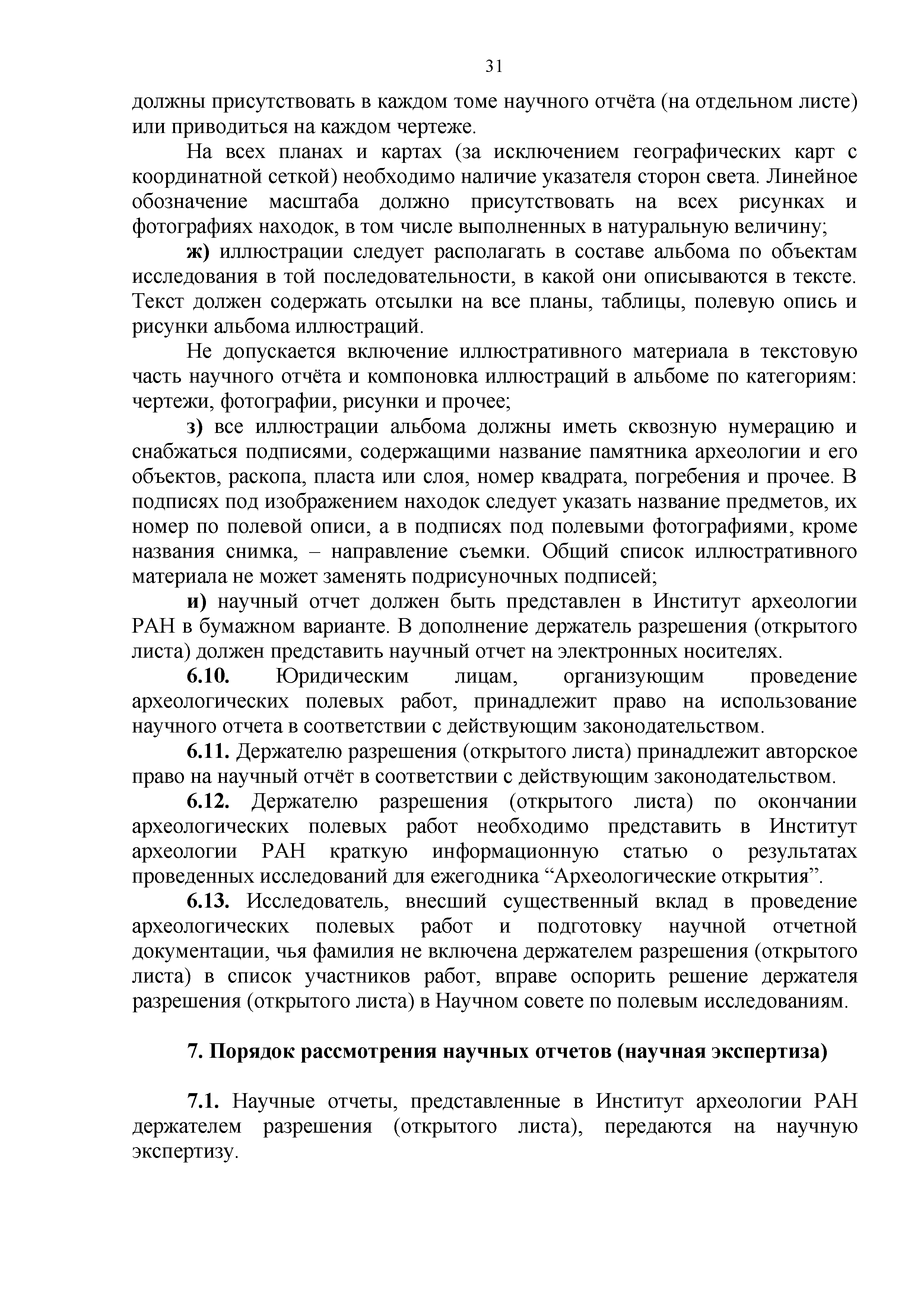 | Название рус.: | Положение о порядке проведения археологических полевых работ и составления научной отчетной документации |