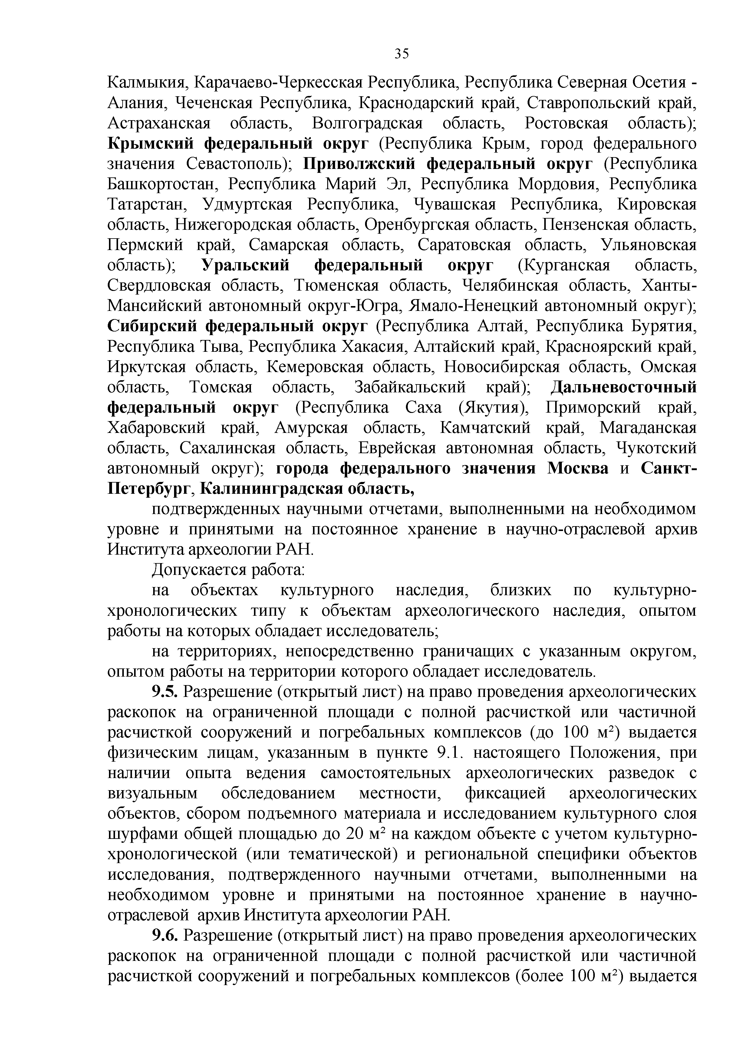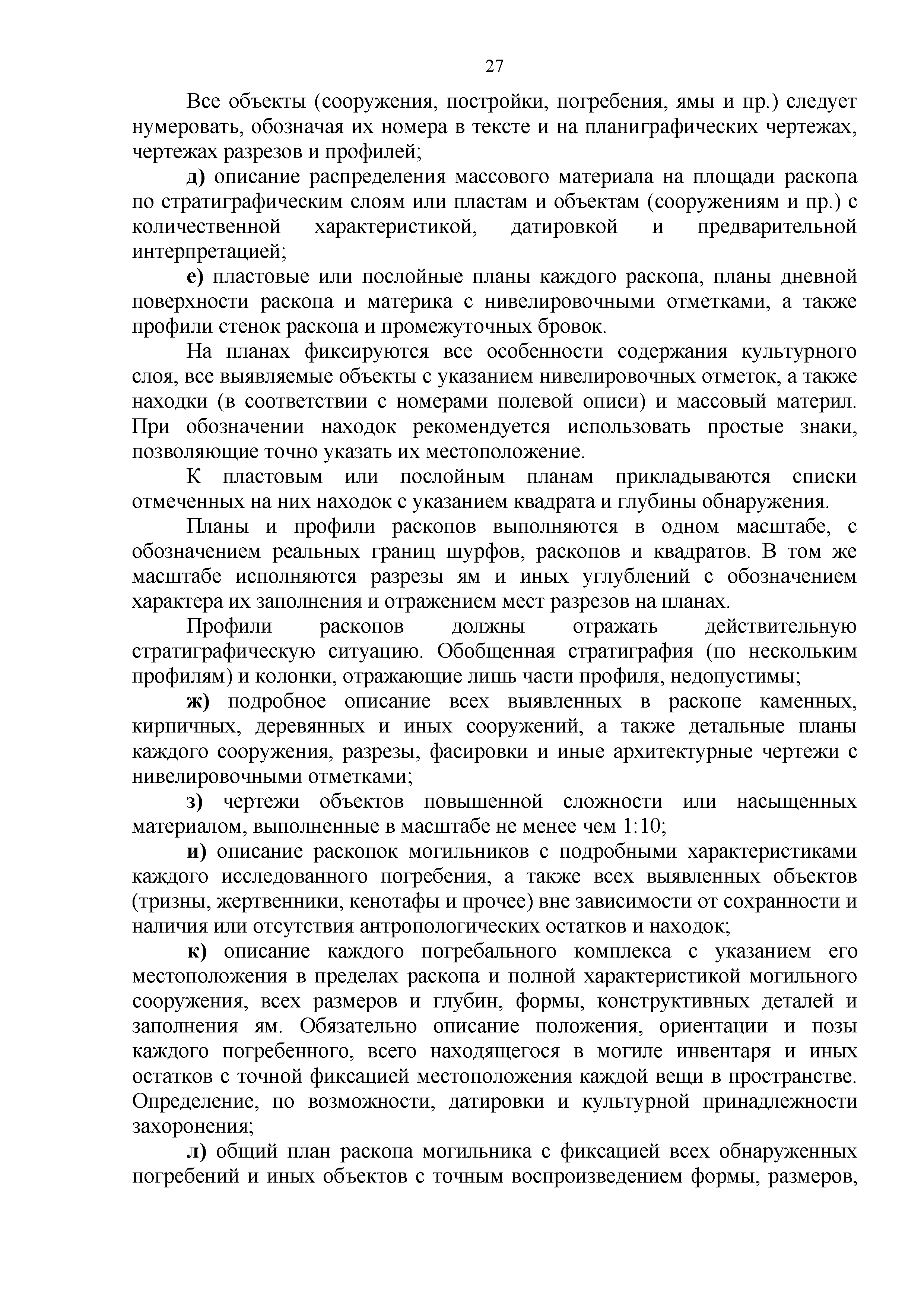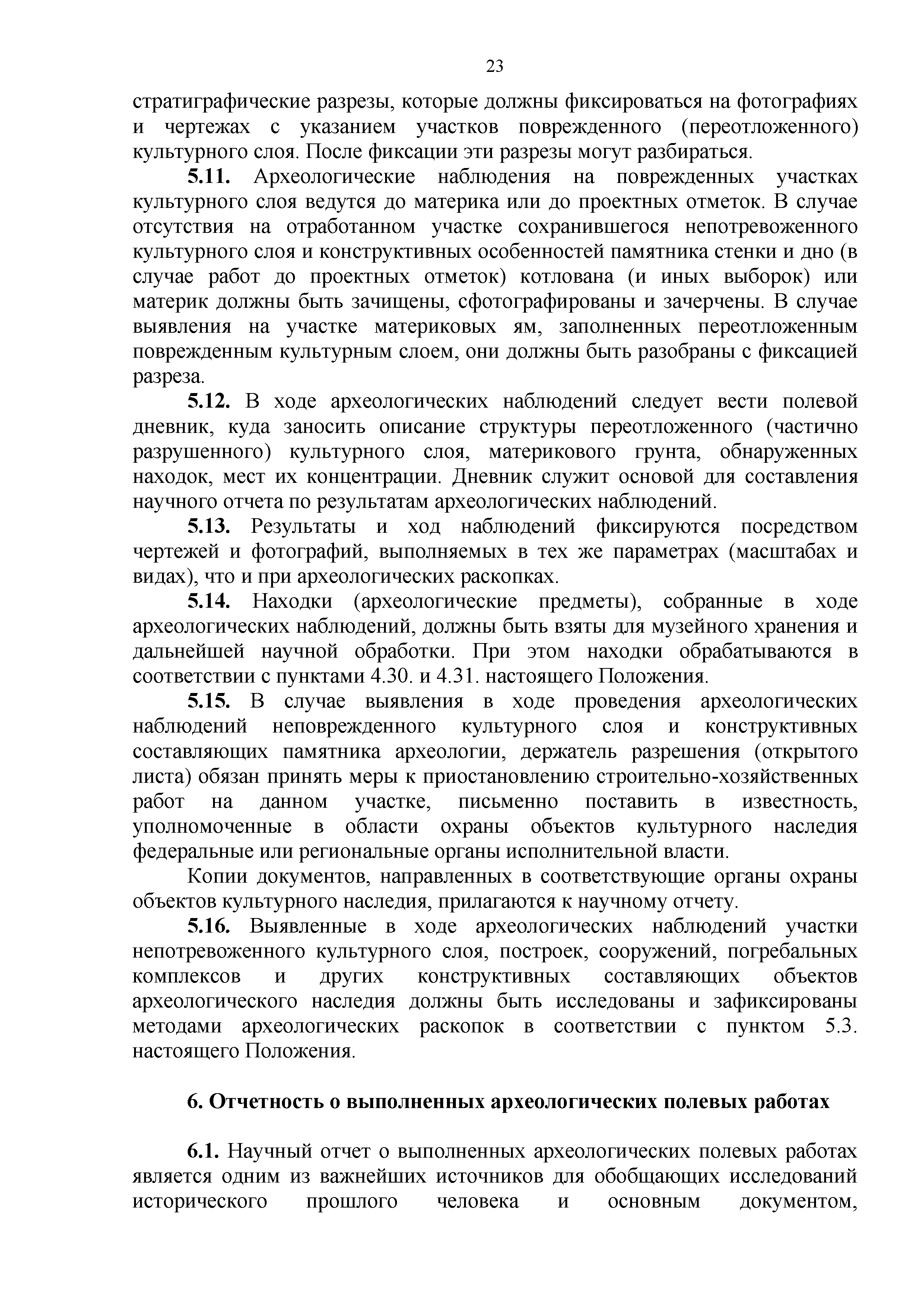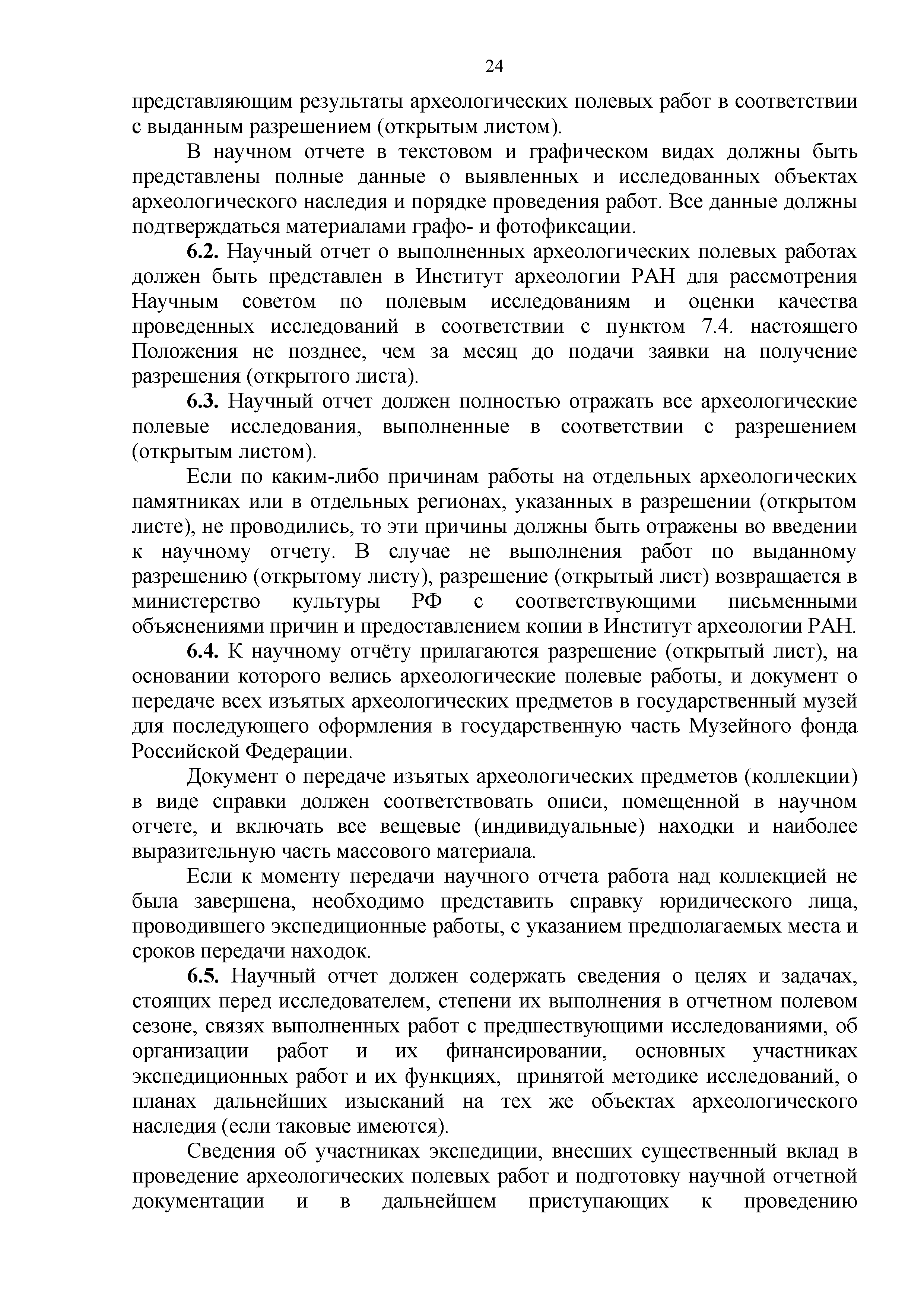 | Название рус.: | Положение о порядке проведения археологических полевых работ и составления научной отчетной документации |