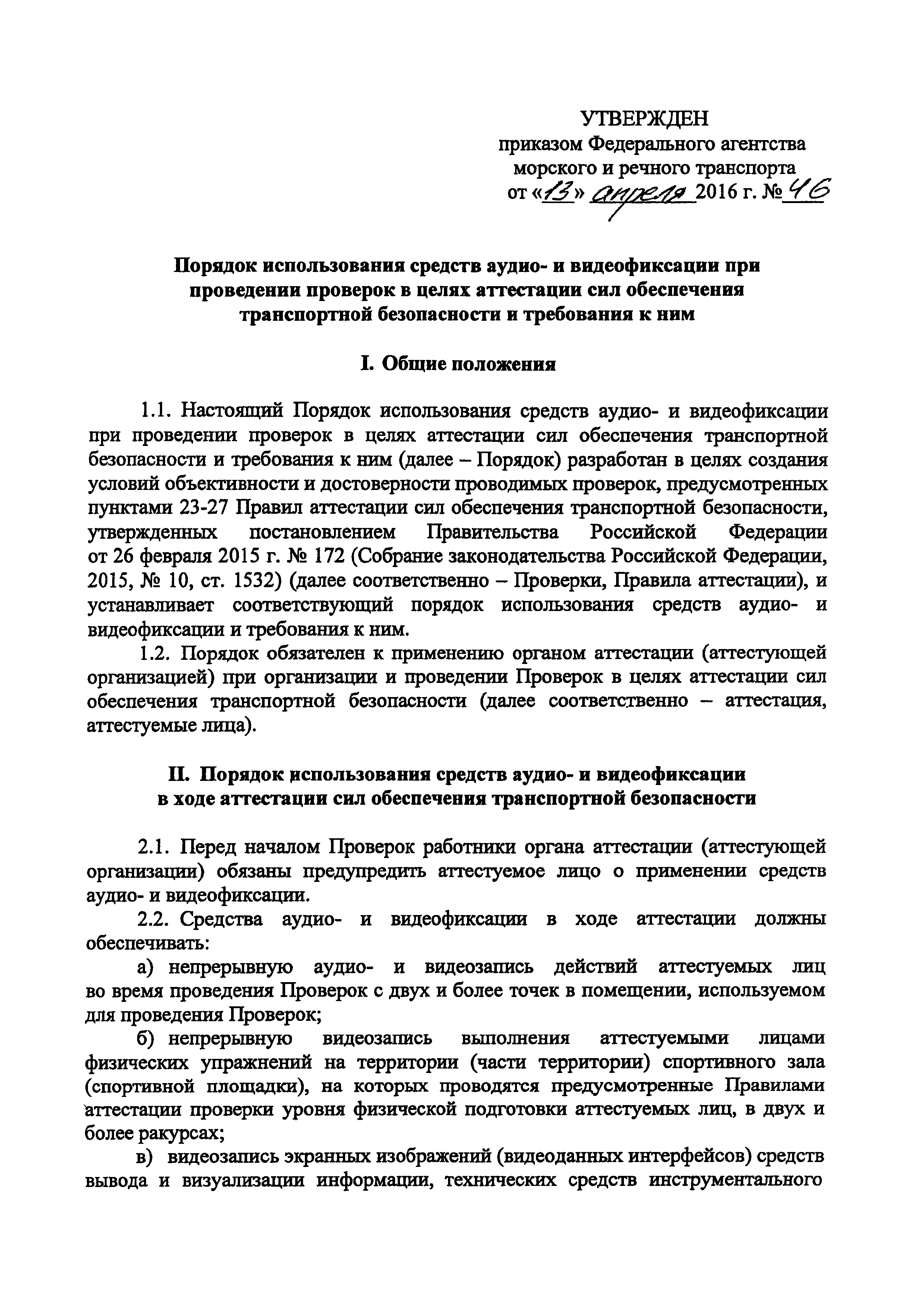 | Утверждён: | 13.04.2016 Федеральное агентство морского и речного транспорта (46)