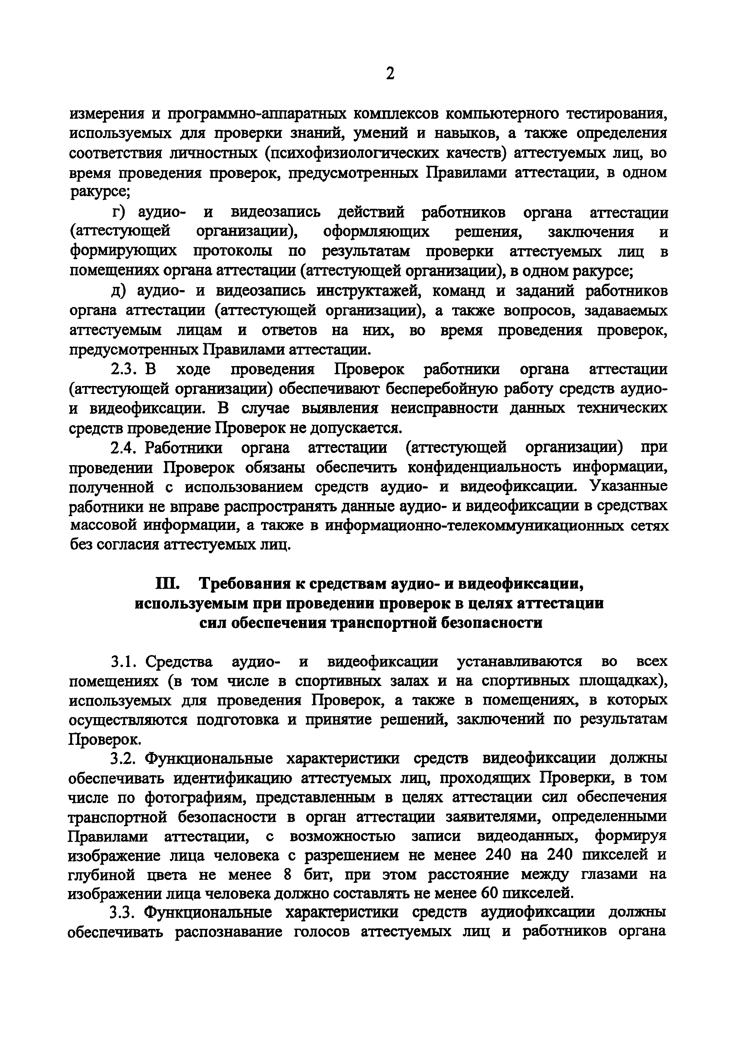 | Оглавление: | I. Общие положения II. Порядок использования средств аудио- и видеофиксации в ходе аттестации сил обеспечения транспортной безопасности III. Требования к средствам аудио- и видеофиксации, используемым при проведении проверок в целях аттестации сил обеспечения транспортной безопасности |