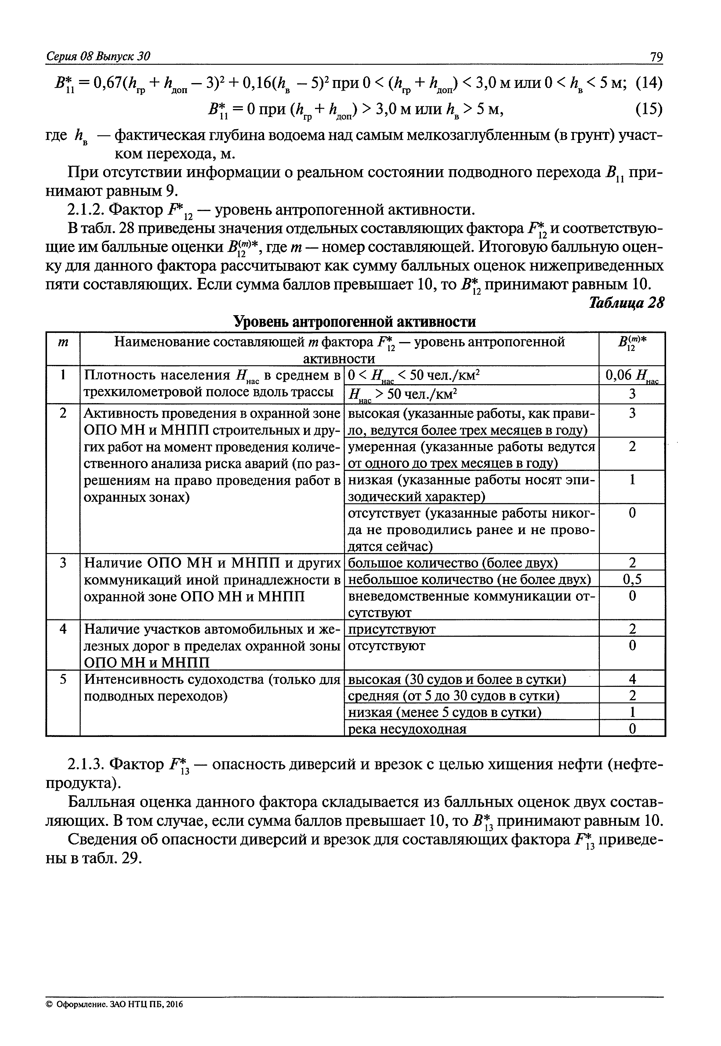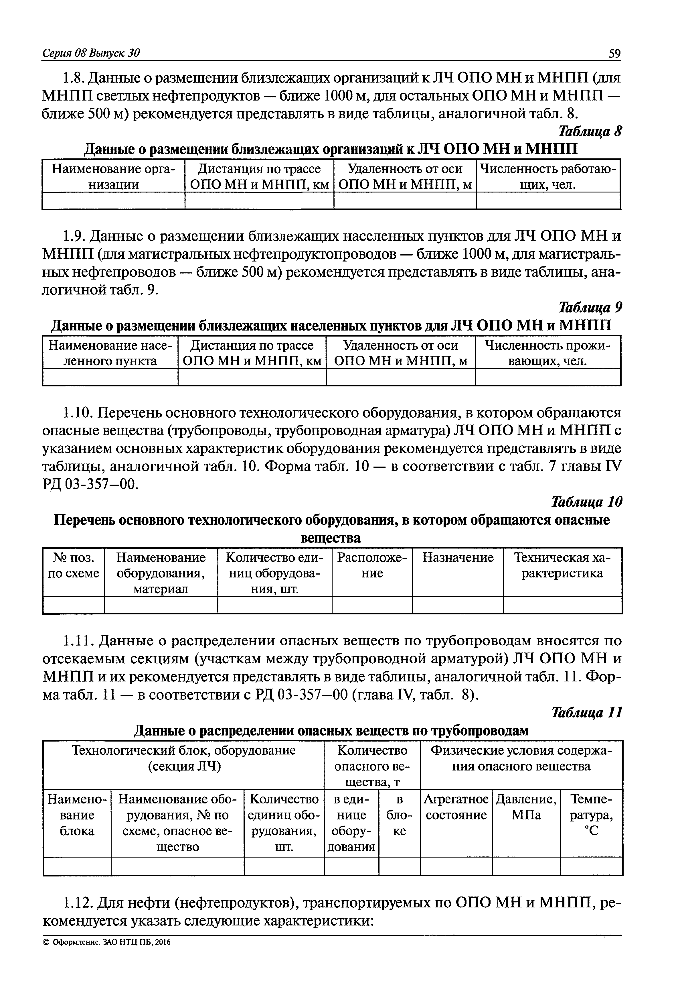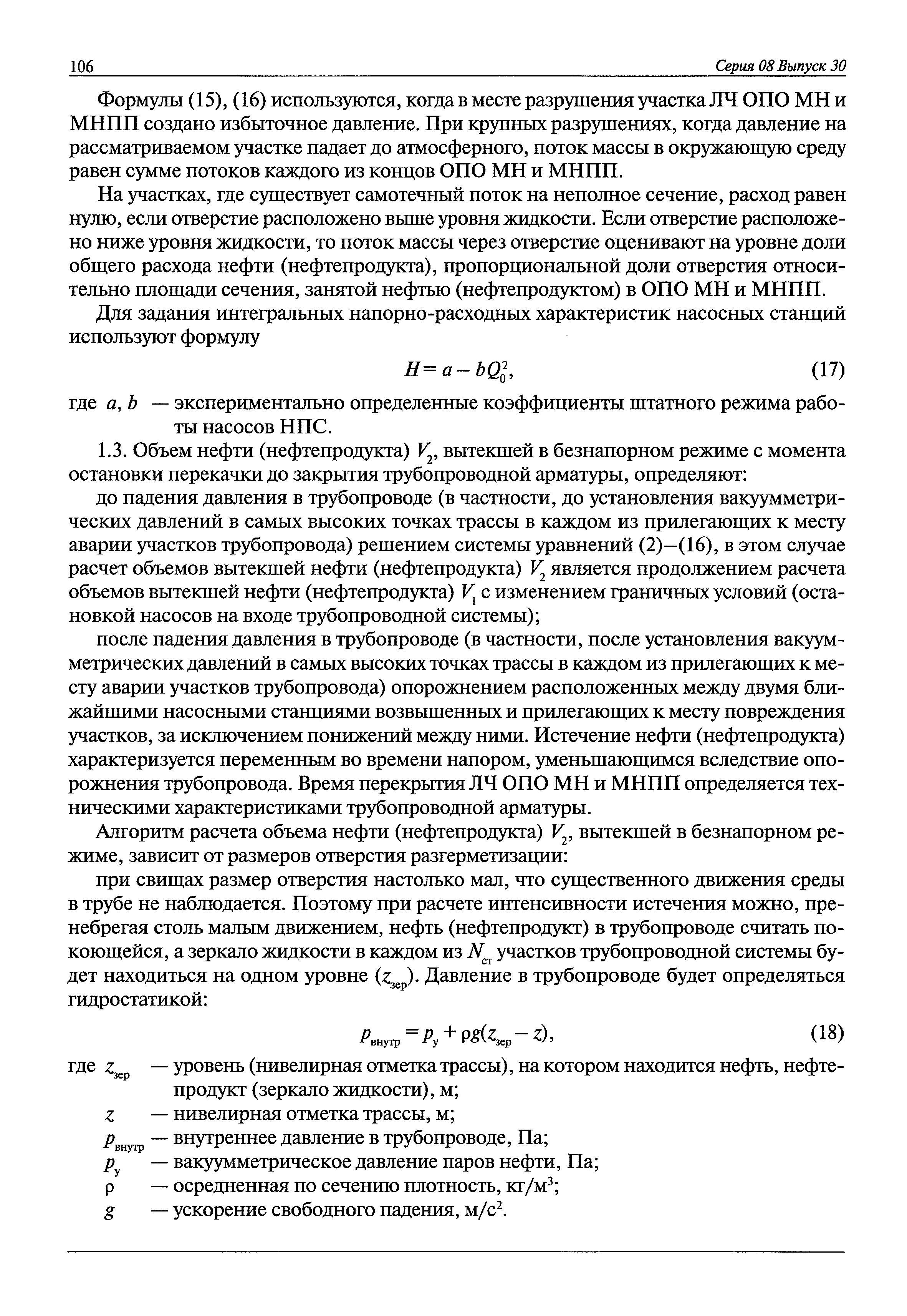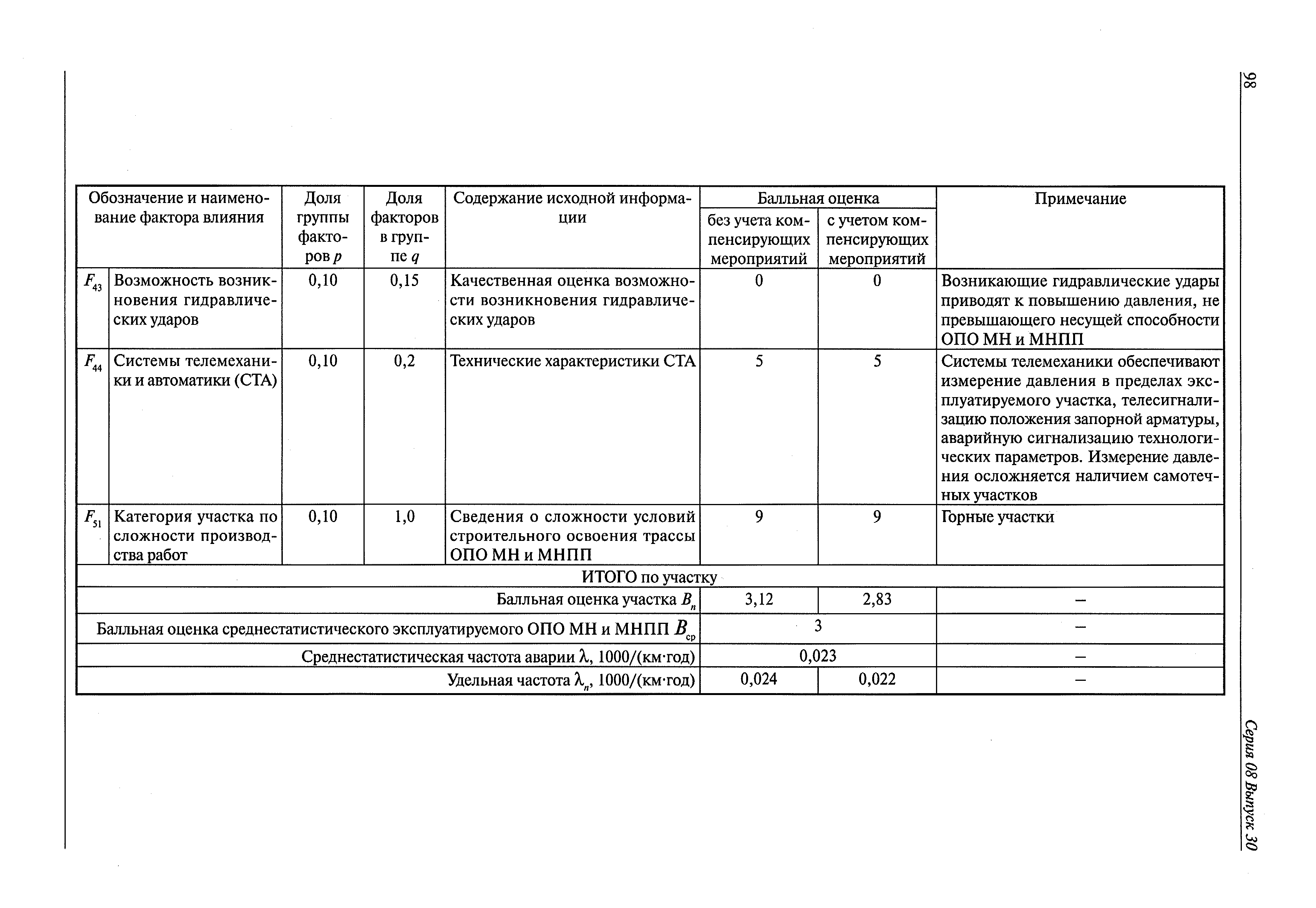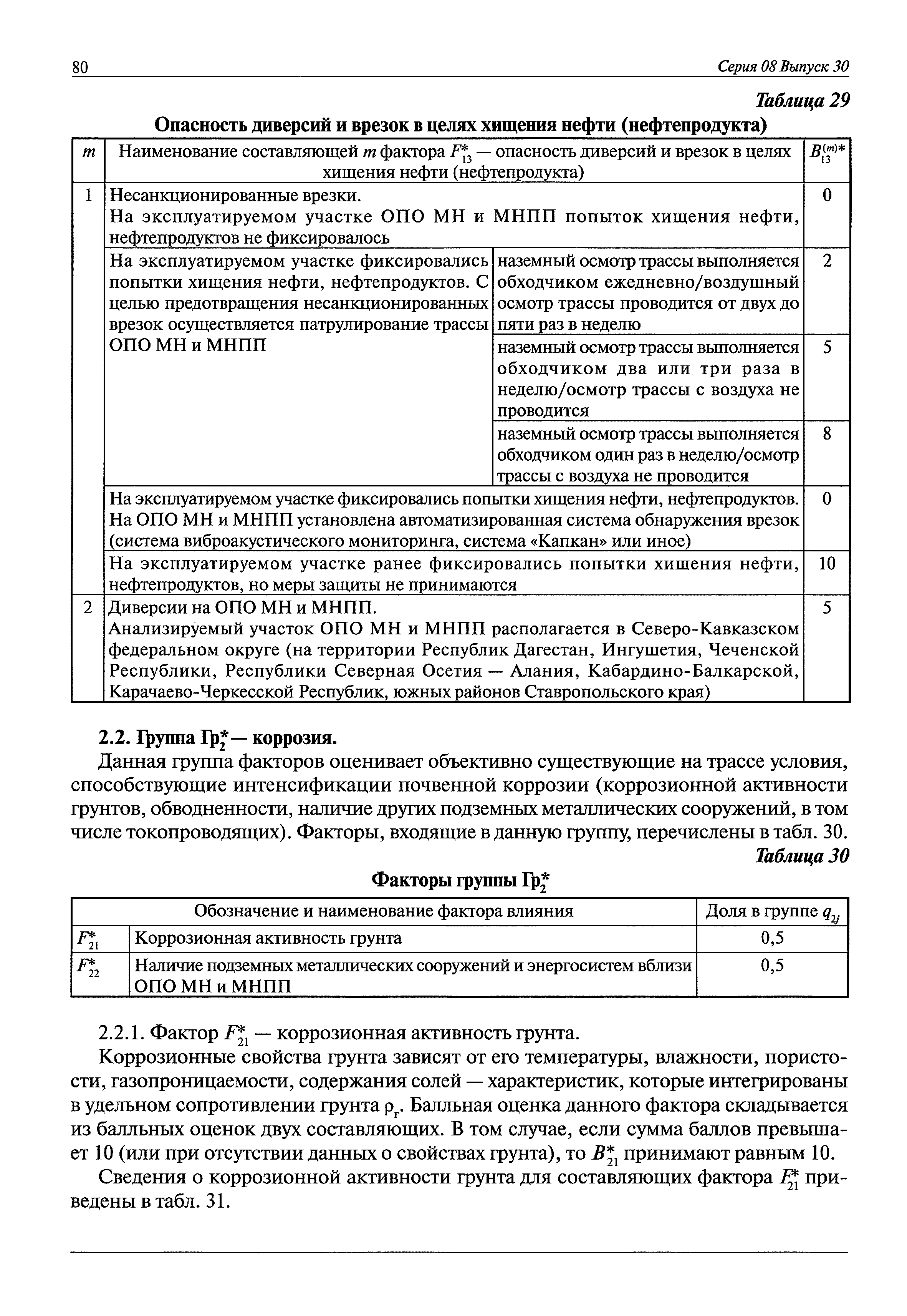 | Оглавление: | I Общие положения II Методические принципы оценки риска авария на опасных производственных объектах магистральных нефтепроводов и магистральных нефтепродуктопроводов III Этапы проведения количественного анализа риска аварий на опасных производственных объектах магистральных нефтепроводов и магистральных нефтепродуктопроводов IV Типовые сценарии аварий на площадочных сооружениях опасных производственных объектов магистральных нефтепроводов и магистральных нефтепродуктопроводов V Количественная оценка риска аварий на опасных производственных объектах магистральных нефтепроводов и магистральных нефтепродуктопроводов. Оценка частоты возможных сценариев аварий VI Оформление результатов количественного анализа риска аварий на опасных производственных объектах магистральных нефтепроводов и магистральных нефтепродуктопроводов Приложение 1. Перечень используемых сокращений и обозначений Приложение 2. Термины и их определения Приложение 3. Рисунки и таблицы Приложение 4. Перечень исходной информации, необходимой для проведения количественного анализа риска аварий на ОНО МН и МНПП Приложение 5. Балльная оценка факторов влияния состояния ОНО МН и МНПП на степень риска аварий Приложение 6. Оценка частоты аварий на линейной части ОНО МН и МНПП Приложение 7. Расчет вероятных зон действия поражающих факторов аварий Приложение 8. Расчет показателей риска аварий Приложение 9. Расчет объемов выброса нефти (нефтепродуктов) и площадей разлива при авариях на линейной части ОНО МН и МНПП и площадочных сооружениях ОНО МН и МНПП |