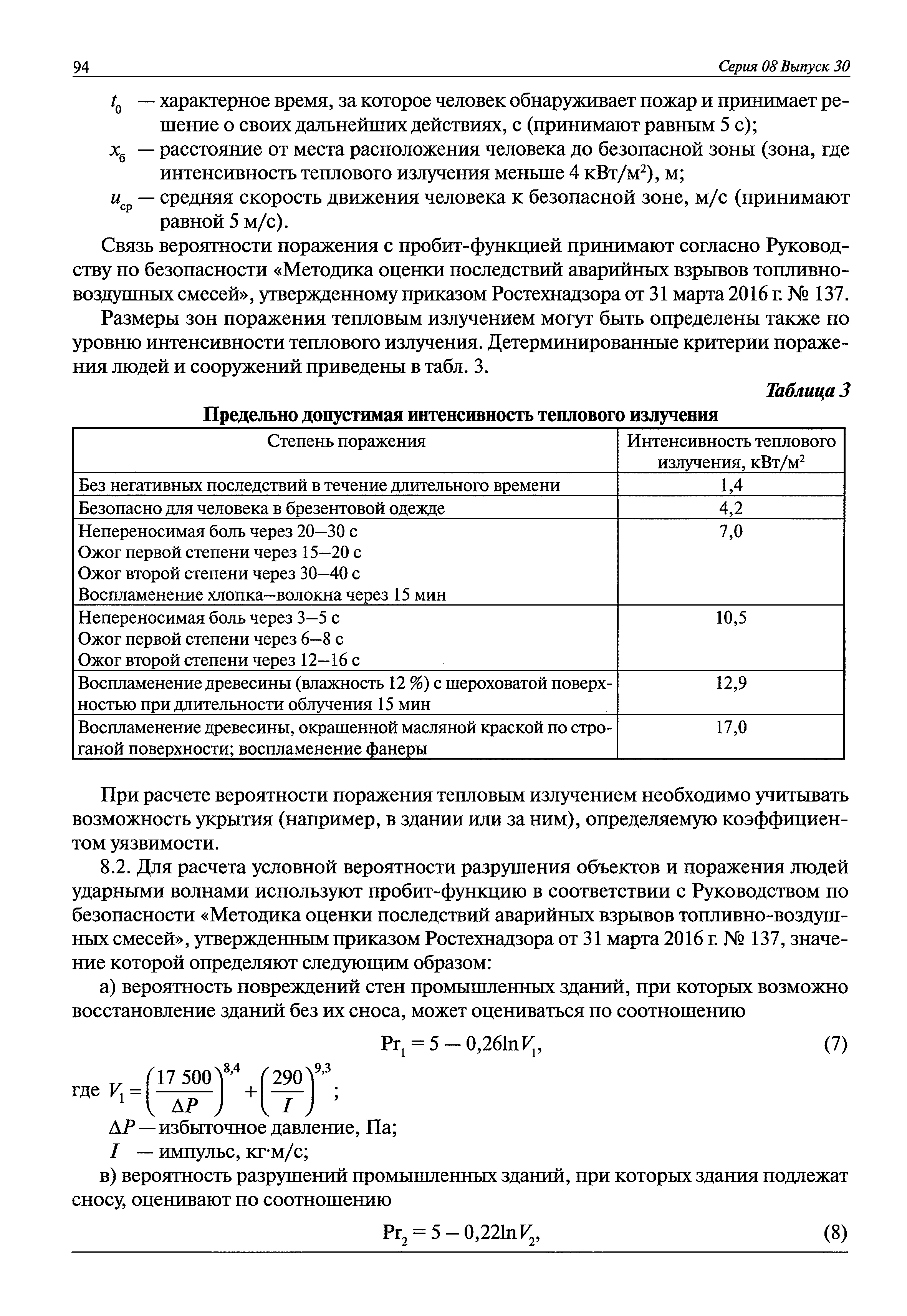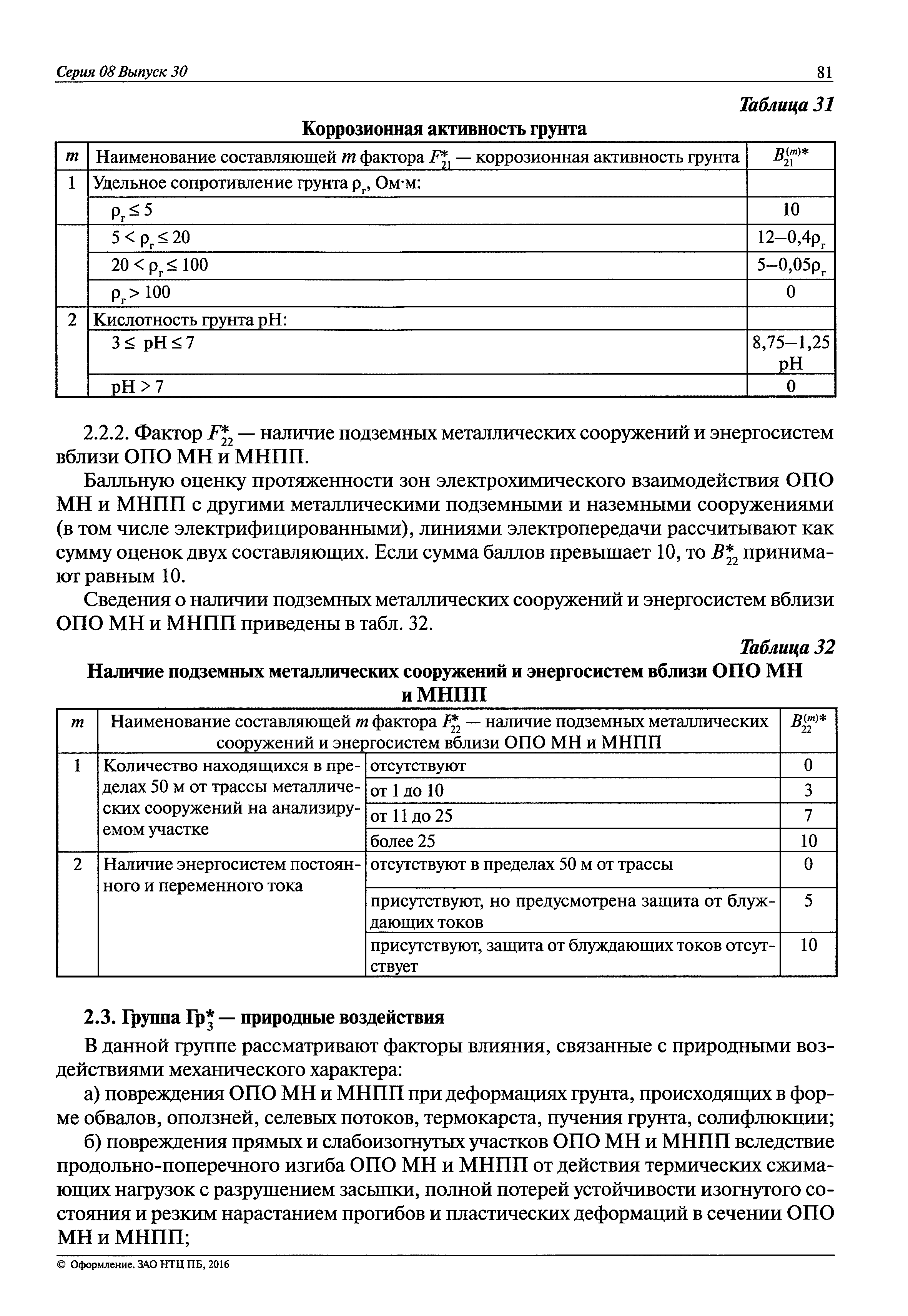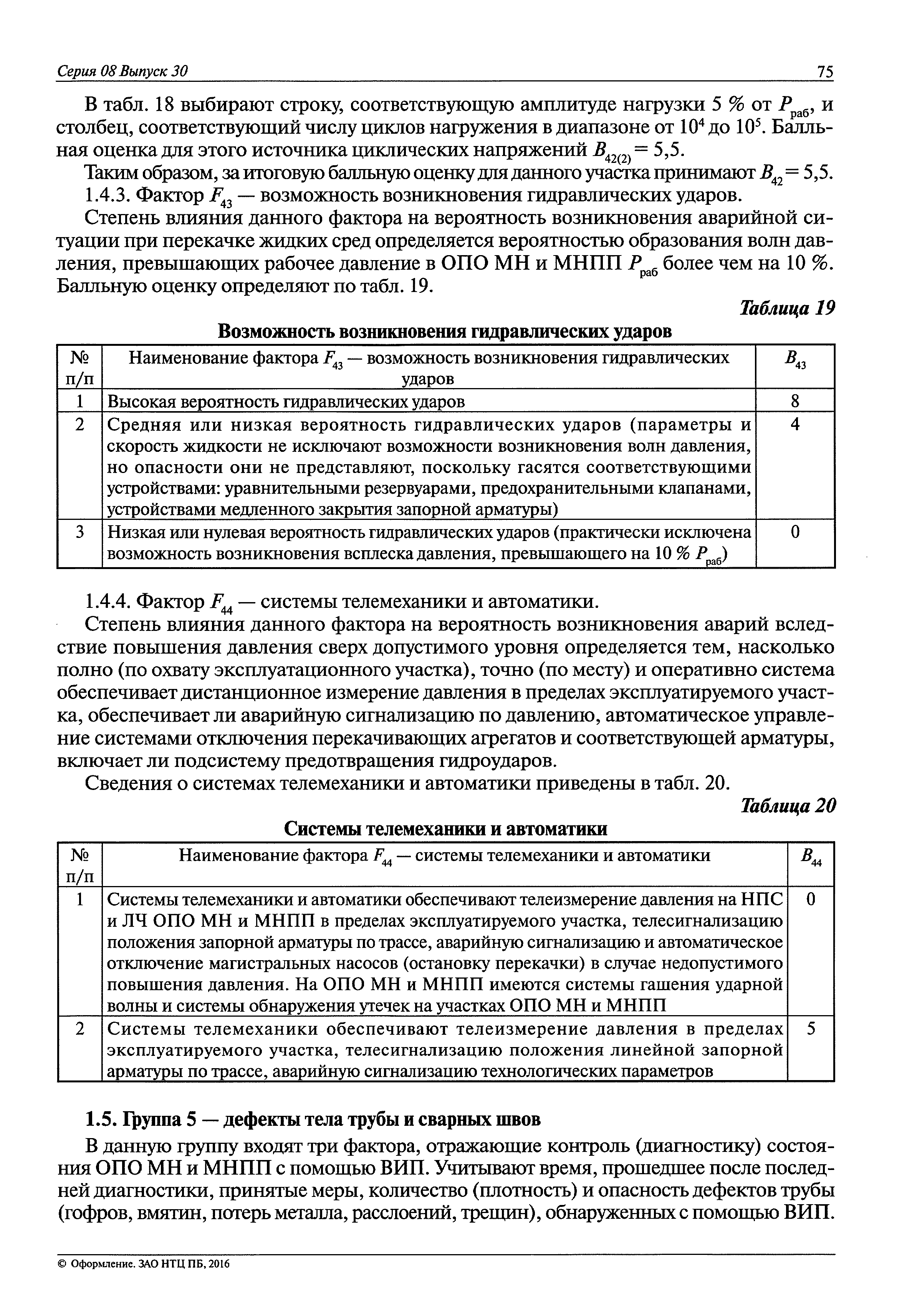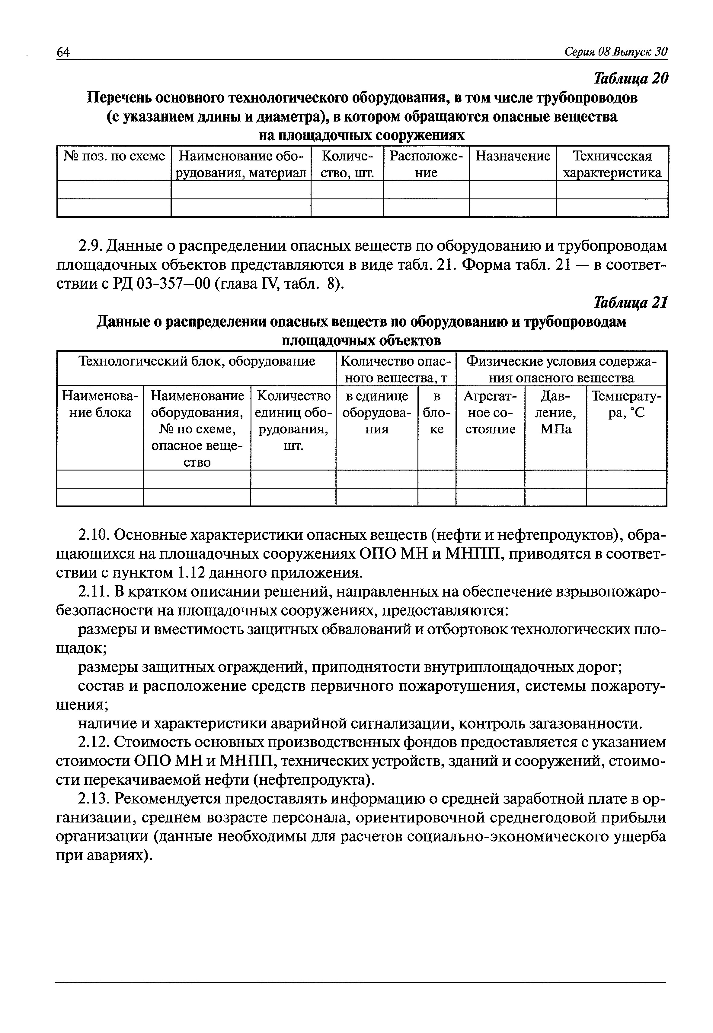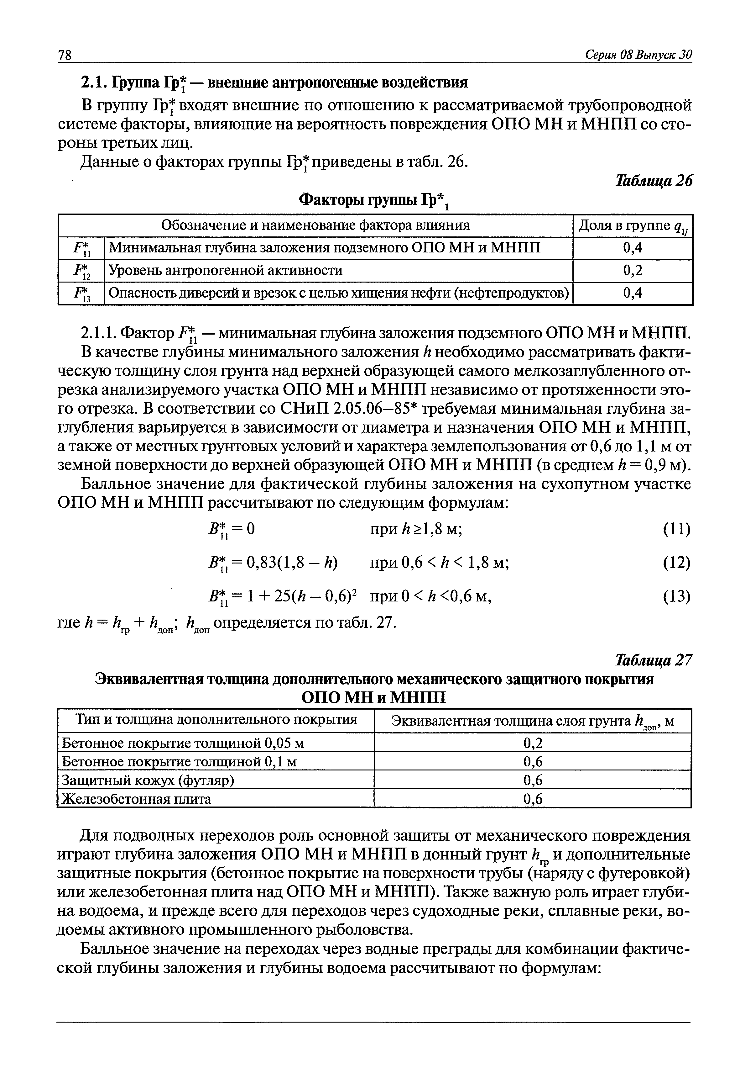 | Оглавление: | I Общие положения II Методические принципы оценки риска авария на опасных производственных объектах магистральных нефтепроводов и магистральных нефтепродуктопроводов III Этапы проведения количественного анализа риска аварий на опасных производственных объектах магистральных нефтепроводов и магистральных нефтепродуктопроводов IV Типовые сценарии аварий на площадочных сооружениях опасных производственных объектов магистральных нефтепроводов и магистральных нефтепродуктопроводов V Количественная оценка риска аварий на опасных производственных объектах магистральных нефтепроводов и магистральных нефтепродуктопроводов. Оценка частоты возможных сценариев аварий VI Оформление результатов количественного анализа риска аварий на опасных производственных объектах магистральных нефтепроводов и магистральных нефтепродуктопроводов Приложение 1. Перечень используемых сокращений и обозначений Приложение 2. Термины и их определения Приложение 3. Рисунки и таблицы Приложение 4. Перечень исходной информации, необходимой для проведения количественного анализа риска аварий на ОНО МН и МНПП Приложение 5. Балльная оценка факторов влияния состояния ОНО МН и МНПП на степень риска аварий Приложение 6. Оценка частоты аварий на линейной части ОНО МН и МНПП Приложение 7. Расчет вероятных зон действия поражающих факторов аварий Приложение 8. Расчет показателей риска аварий Приложение 9. Расчет объемов выброса нефти (нефтепродуктов) и площадей разлива при авариях на линейной части ОНО МН и МНПП и площадочных сооружениях ОНО МН и МНПП |