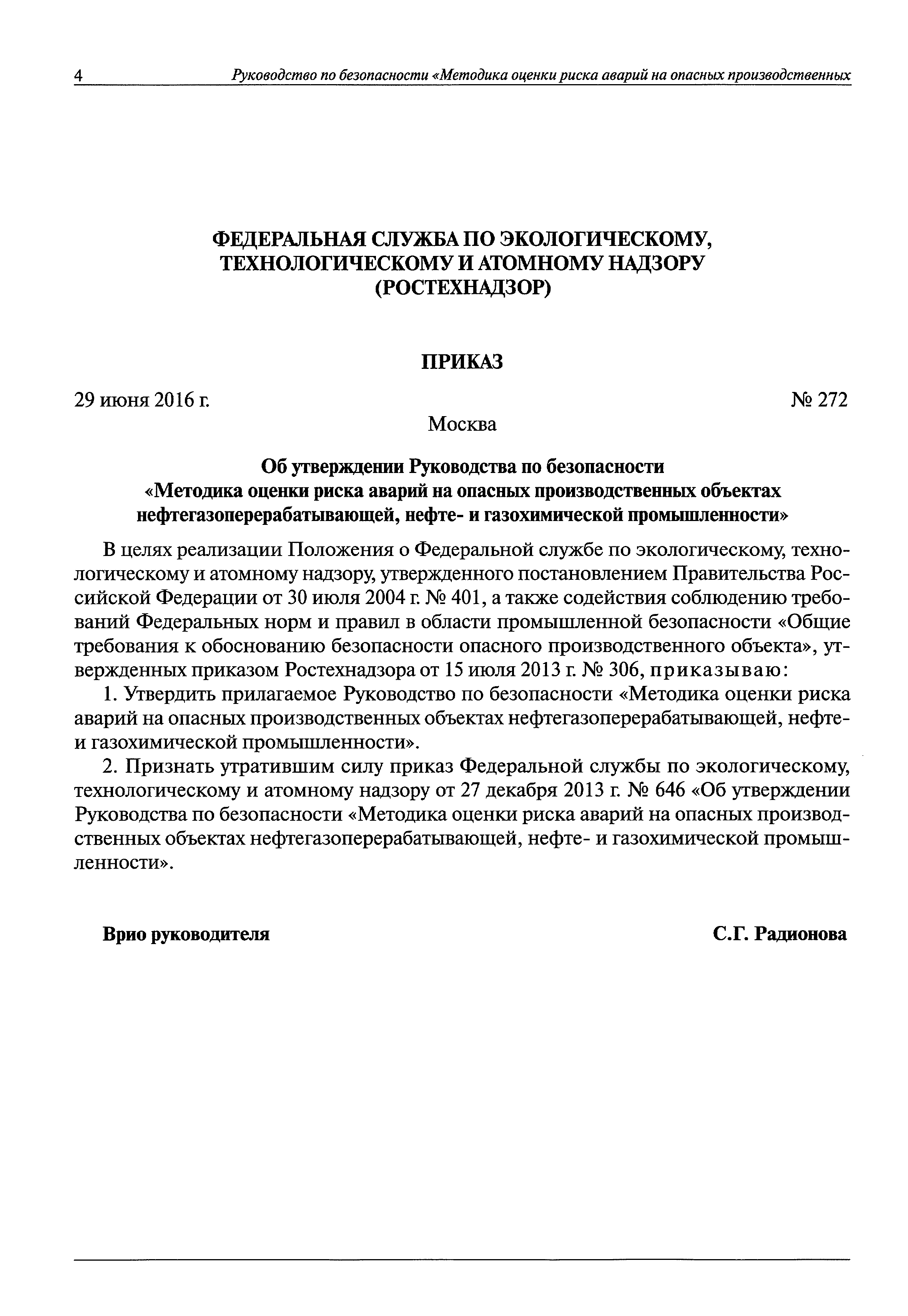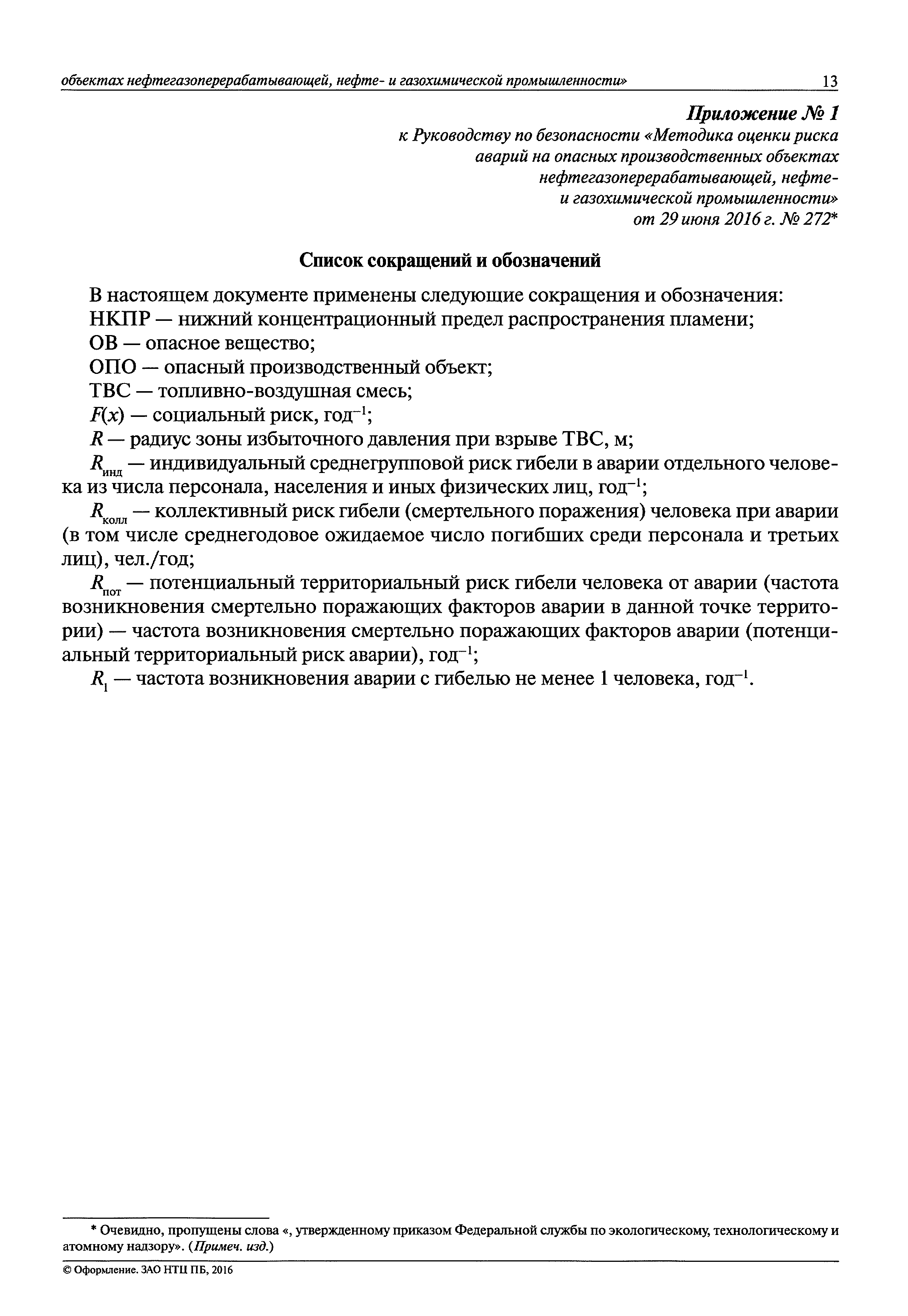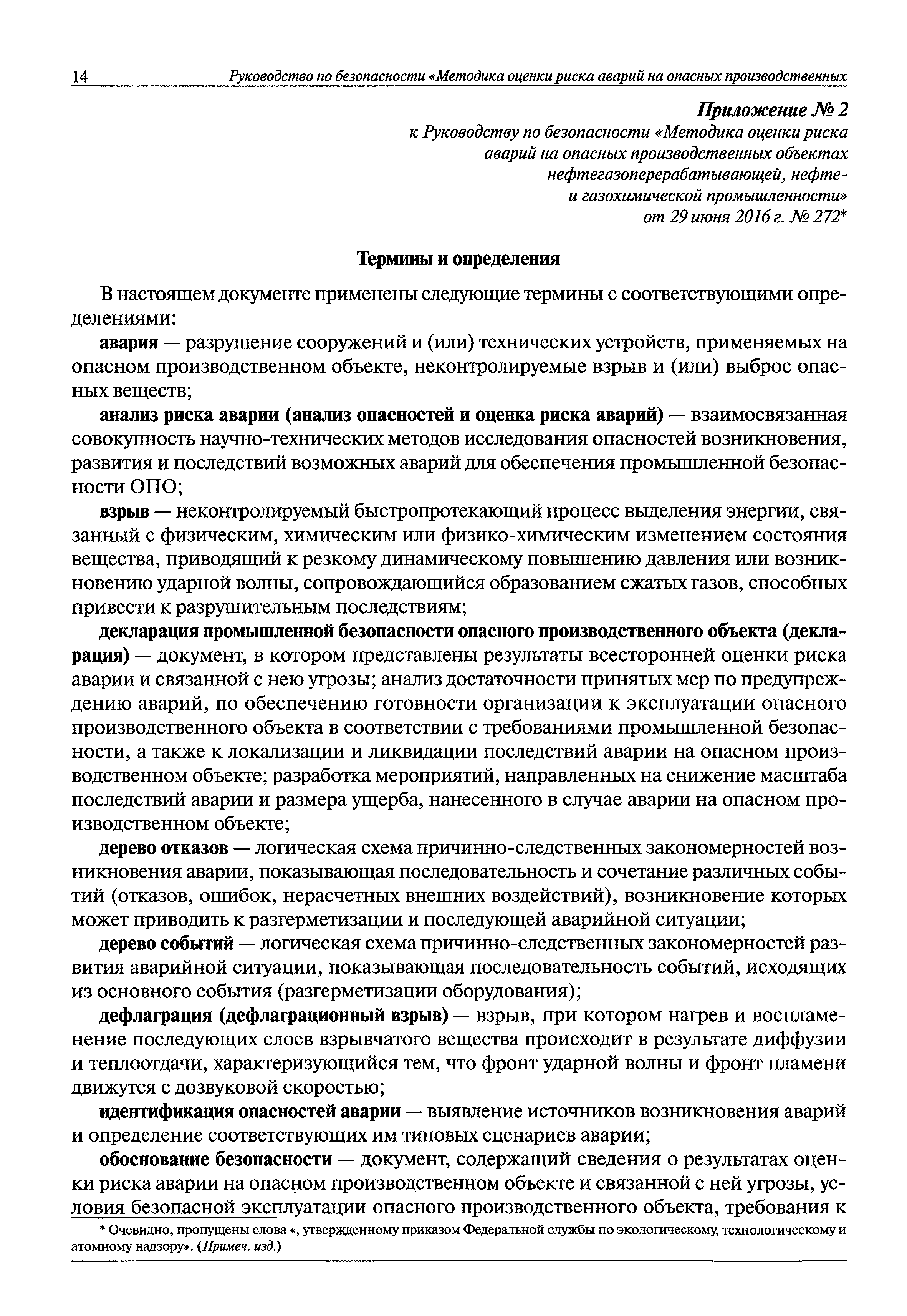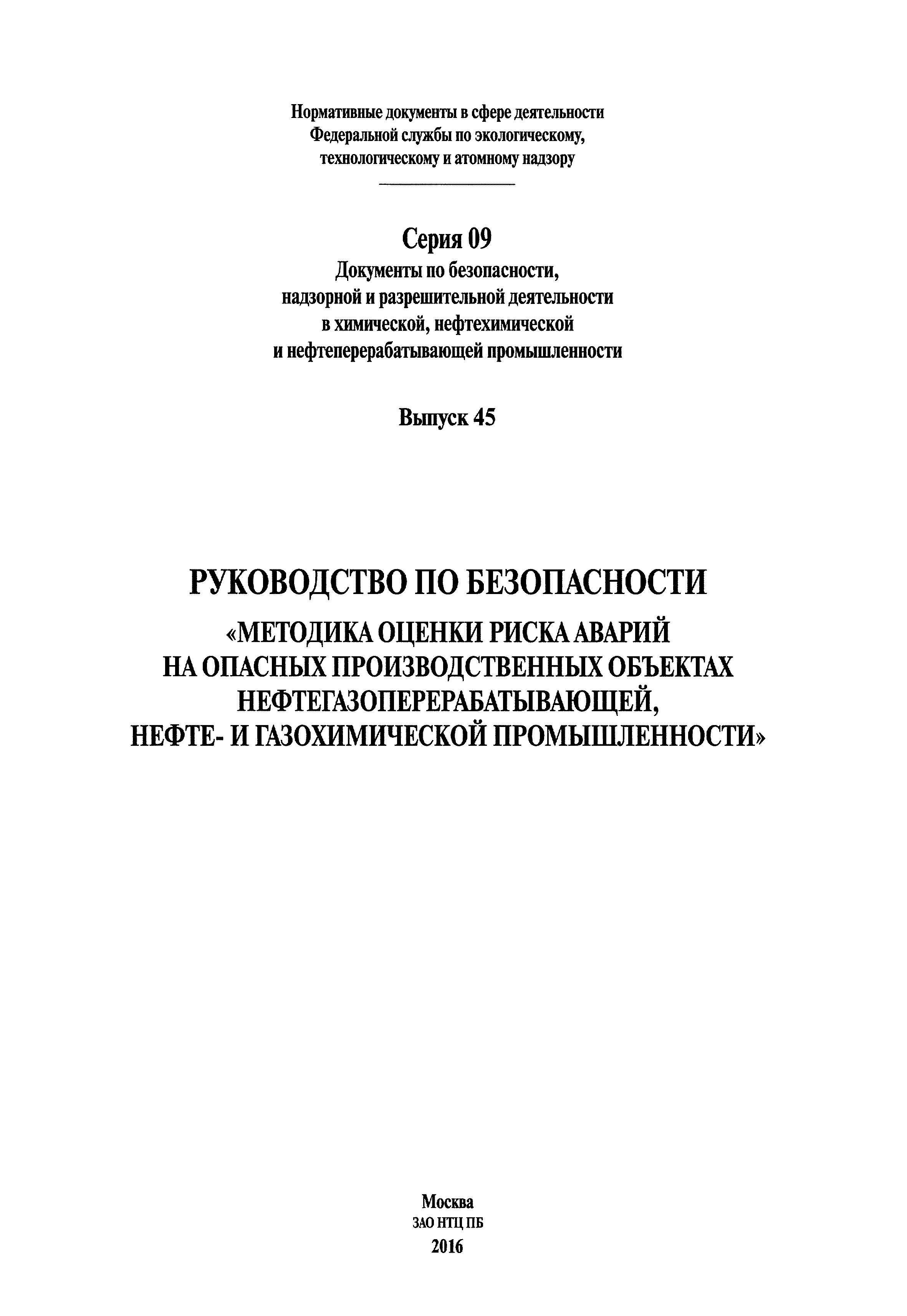 | Область применения: | Руководство содержит рекомендации к количественной оценке риска аварий для обеспечения требований промышленной безопасности при проектировании, строительстве, капитальном ремонте, техническом перевооружении, реконструкции, эксплуатации, консервации и ликвидации опасных производственных объектов нефтегазоперерабатывающей, нефте- и газохимической промышленности и не является нормативным правовым актом. |