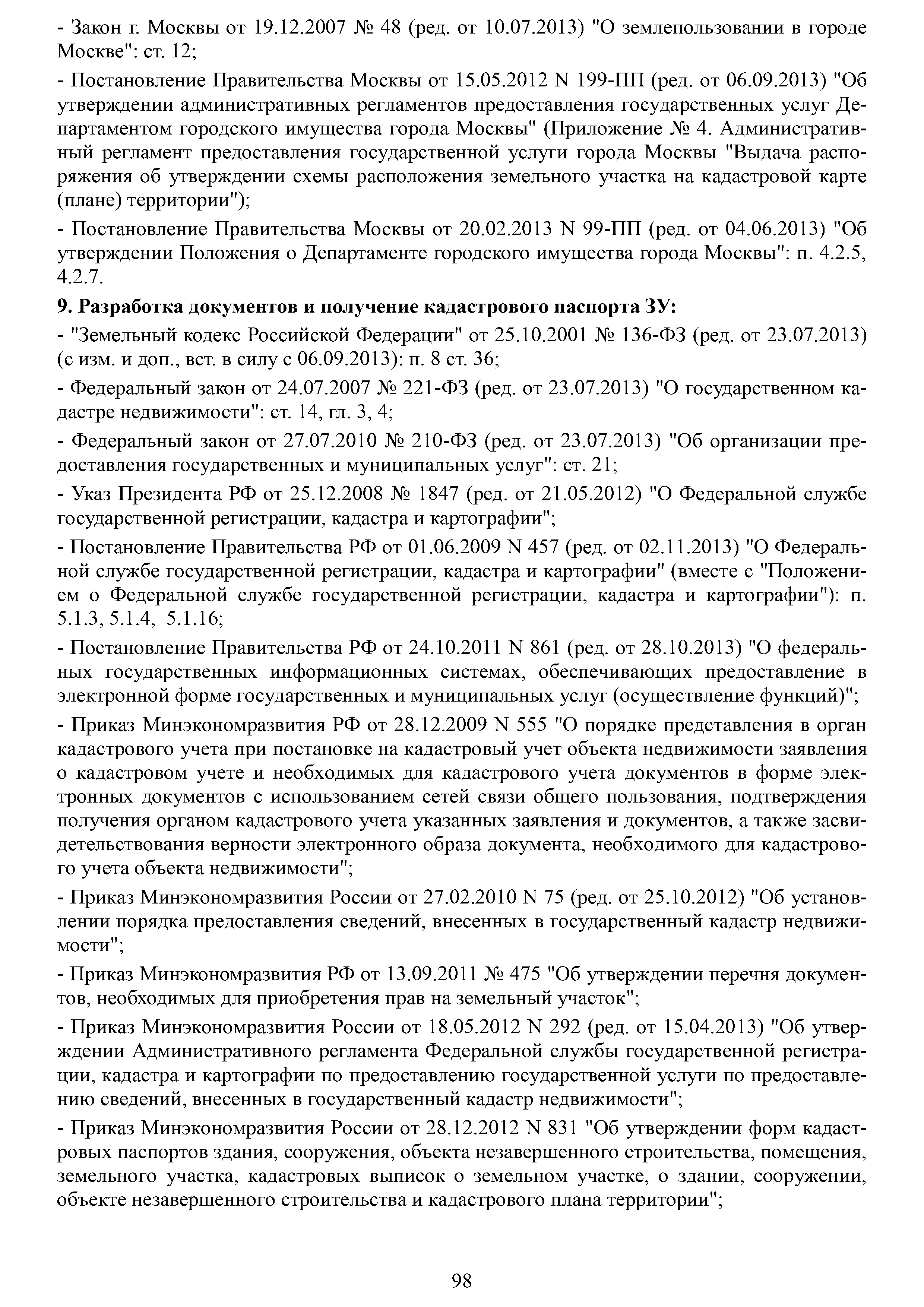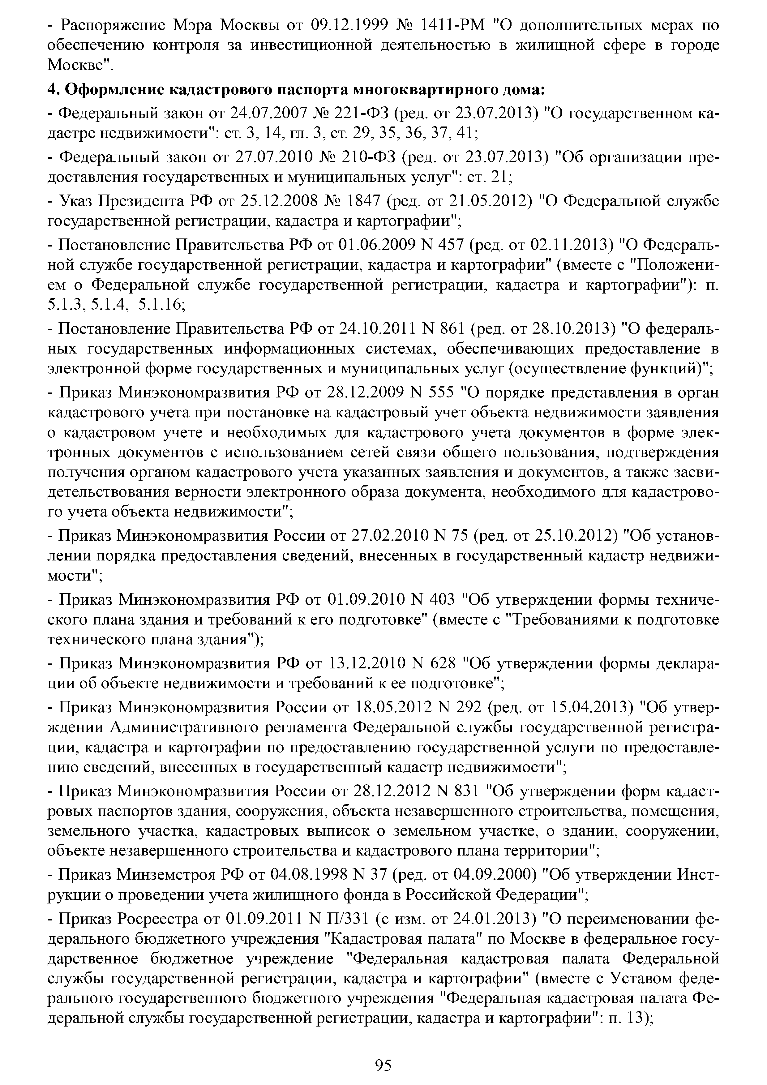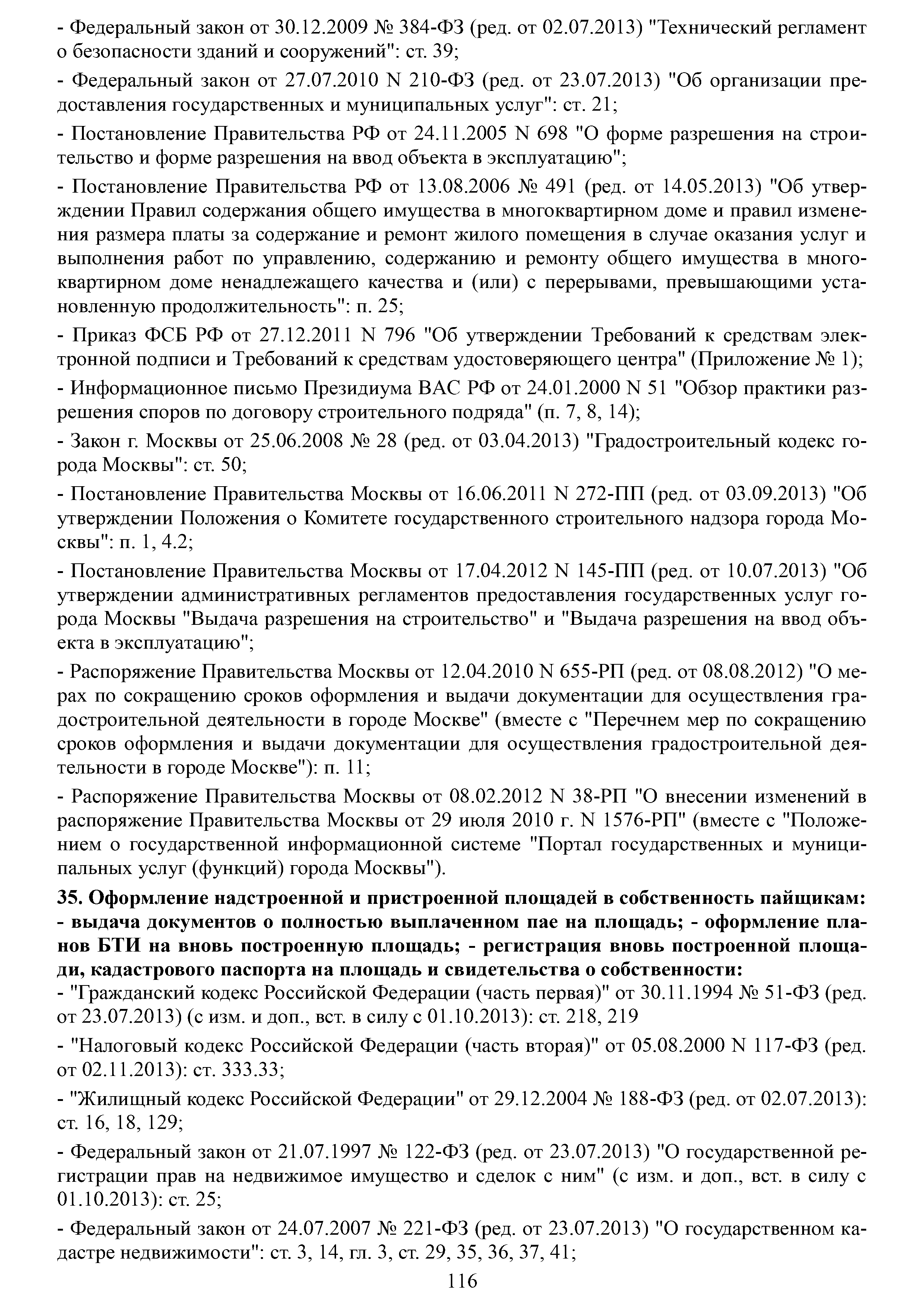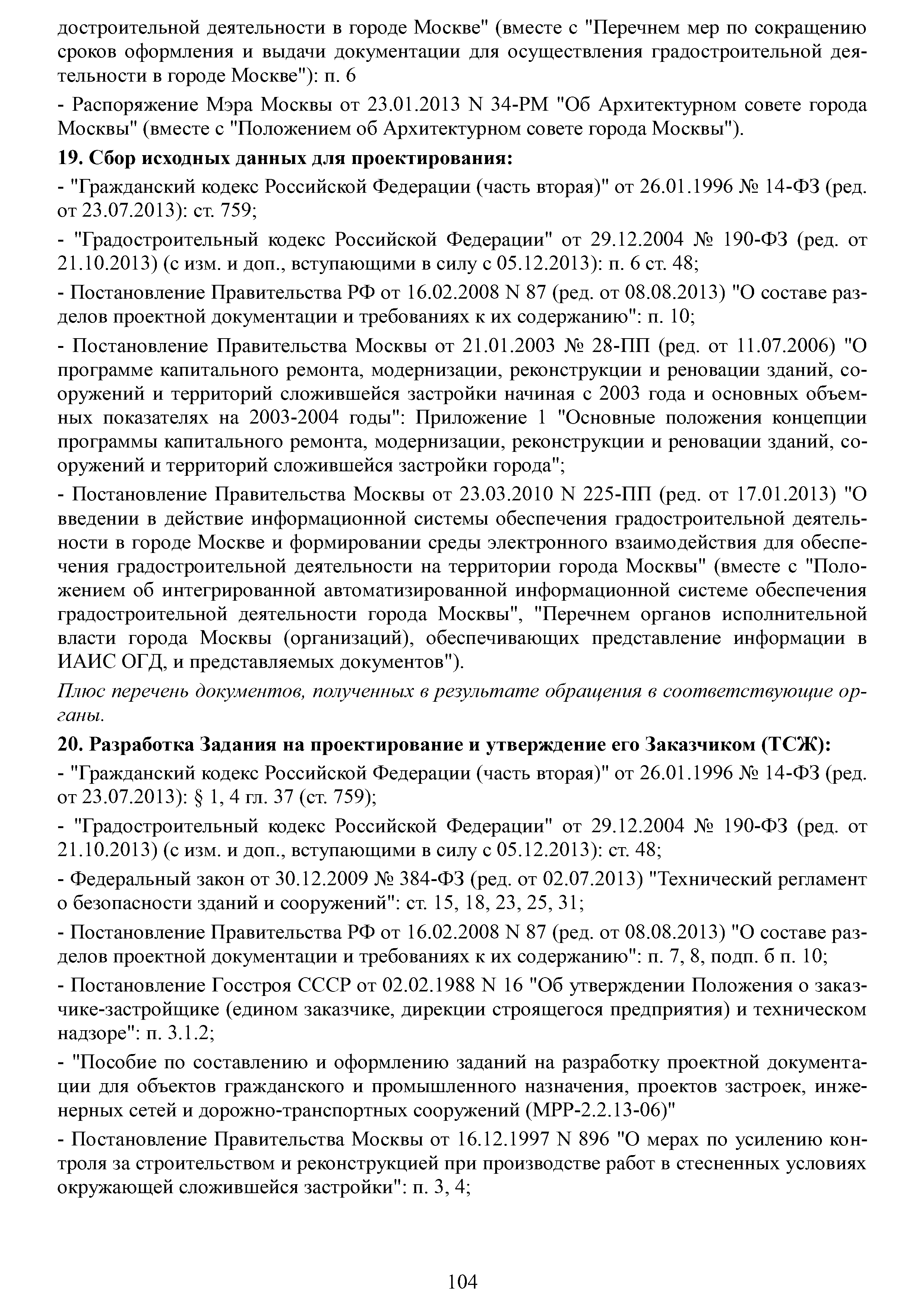 | Оглавление: | Аннотация Пояснительная записка Актуальность и значимость разработки Методических рекомендаций Цели и задачи Методических рекомендаций. Ожидаемый результат от их использования Область применения Характеристики типового жилого дома до и после реконструкции с надстройкой и обстройкой здания Содержание Методических рекомендаций по разработке и реализации проектов реконструкции жилых домов с надстройкой и обстройкой здания без отселения жителей с привлечением средств собственников и других источников внебюджетного финансирования 1. Формы организации жителей жилого дома, необходимые для разработки и реализации проекта реконструкции жилых домов с надстройкой и обстройкой здания без отселения жителей с привлечением средств собственников и других источников внебюджетного финансирования. Первые шаги 1.1. Шаг 1-й. Подготовка и проведение собрания собственников по вопросу организации юридического лица (ТСЖ и др.) с целью дальнейшей разработки и реализации Проекта 1.2. Шаг 2-й. Выполнение решения собрания собственников об организации юридического лица. Регистрация ТСЖ и постановка на налоговый учет 2. Участники процесса разработки и реализации Проекта 3. Этапы, стадии (группы) и виды работ. Сетевой график и законодательно-нормативная база выполнения работ 3.1. Перечень этапов, стадий и видов работ 3.2. Типовой сетевой график выполнения работ 4. Шаг 3-й. Методические рекомендации по бизнес-планированию разработки и реализации Проекта 4.1. Введение в бизнес-планирование 4.2. Рекомендации о последовательности подготовки и содержании бизнес-плана 4.3. Рекомендации по анализу рынка жилой недвижимости 4.4. Источники финансирования и финансовое планирование 4.4.1. Источники финансирования 4.4.2. Финансовое планирование 4.4.3. Типовая финансовая схема на примере ТСЖ «Мишина-32» 4.5. Риски. Рекомендации по управлению Проектом 5. Дальнейшие шаги. Взаимодействие коллектива собственников с ресурсоснабжающими и другими организациями, органами исполнительной власти города Москвы при разработке и реализации Проекта Приложение № 1. Типовые формы и образцы документов, используемых при разработке и реализации Проекта Приложение № 2. Нормативно-правовые акты для реализации сетевого графика выполнения работ по реконструкции многоквартирных домов с надстройкой и обстройкой здания без отселения жителей с привлечением средств собственников и других источников внебюджетного финансирования Приложение № 3. Условия предоставления электронных государственных услуг в строительстве |