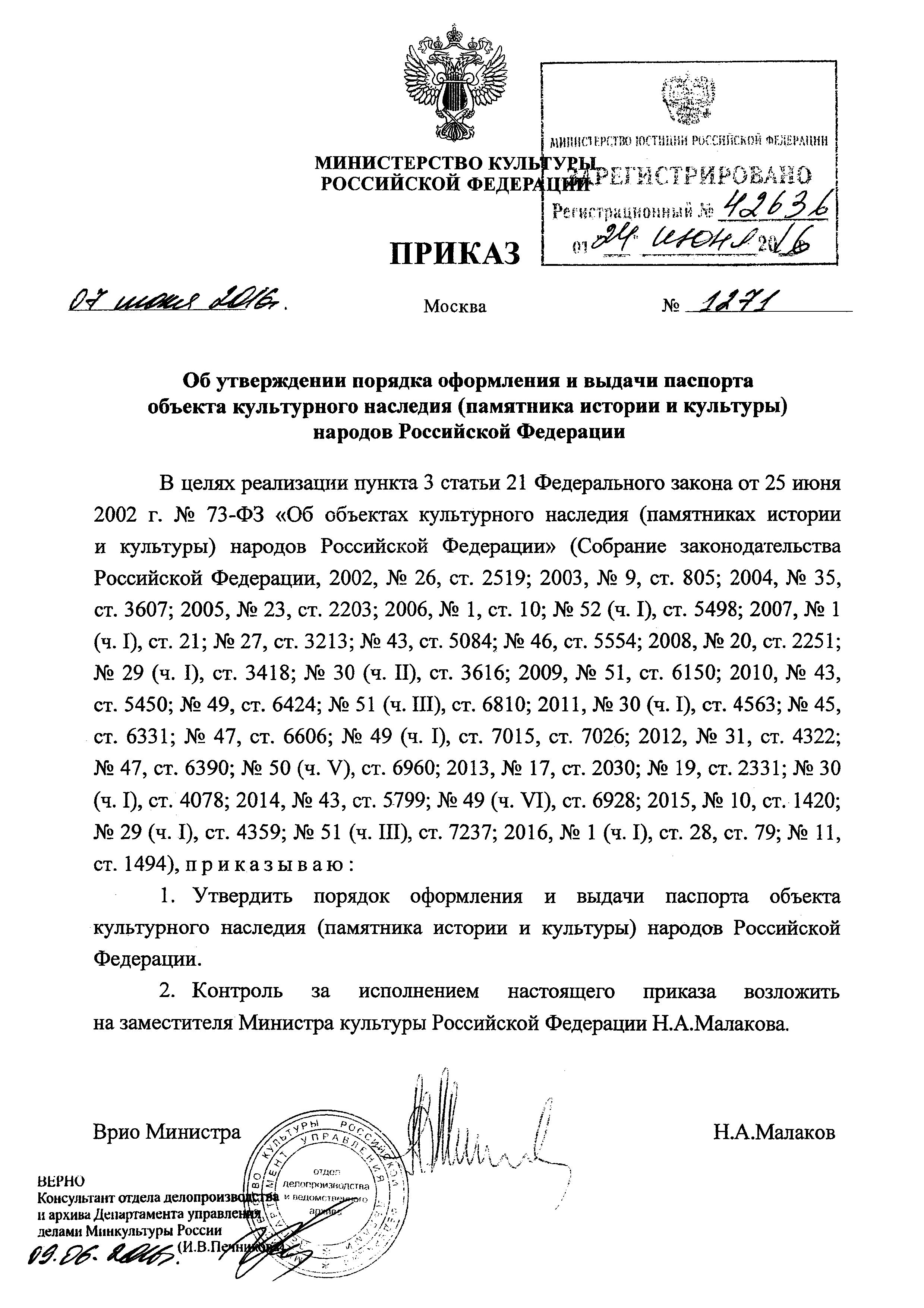 | Утверждён: | 07.06.2016 Министерство культуры Российской Федерации (Russian Federation Ministry of Culture 1271)