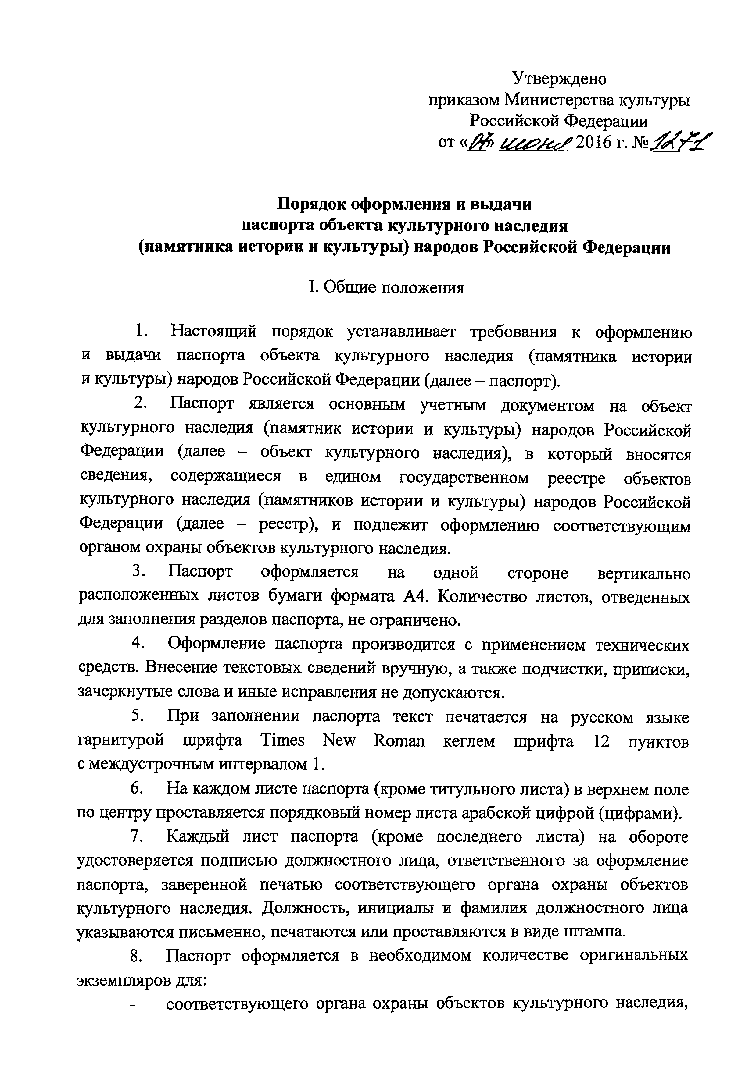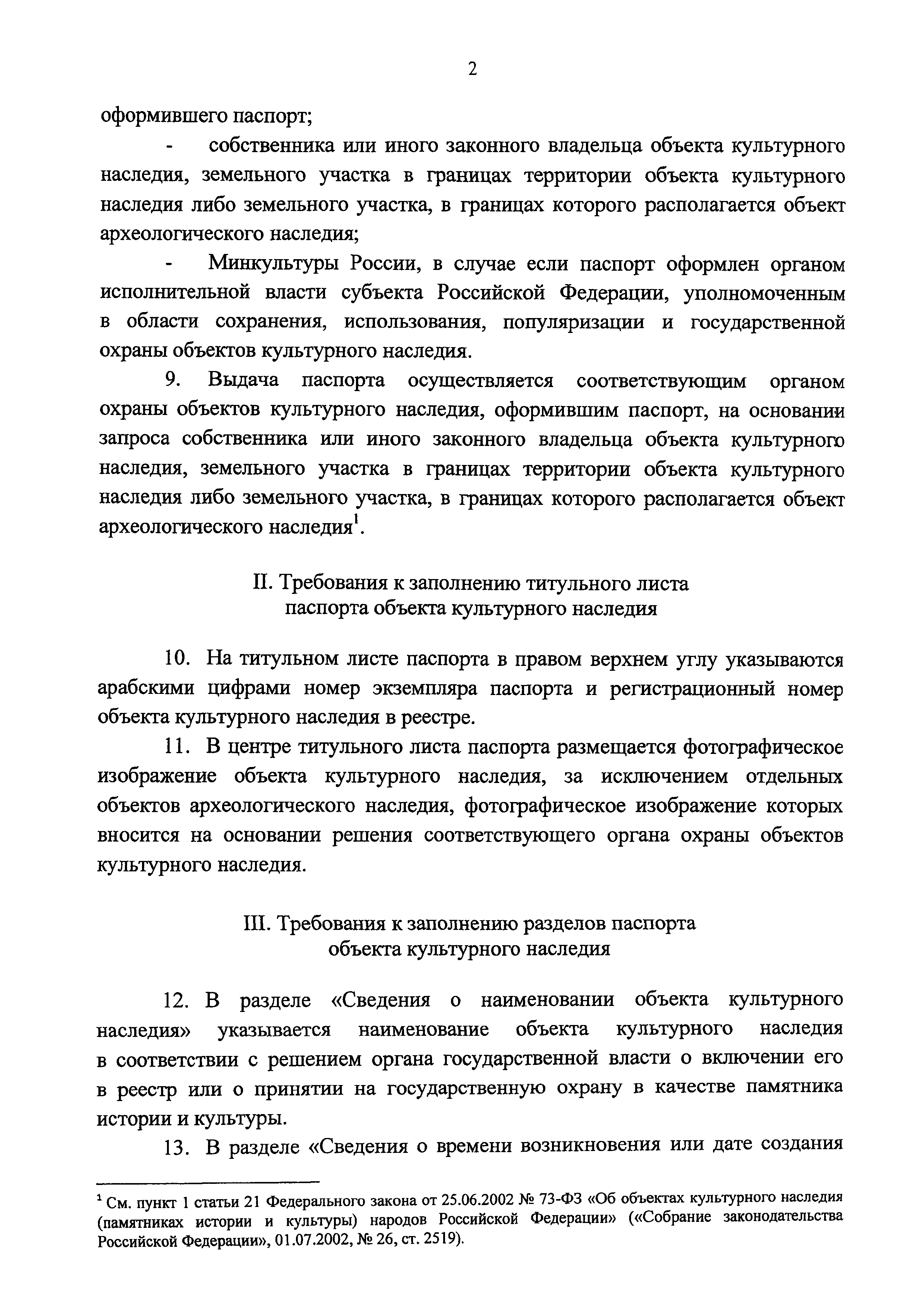 | Название рус.: | Порядок оформления и выдачи паспорта объекта культурного наследия (памятника истории и культуры) народов Российской Федерации |