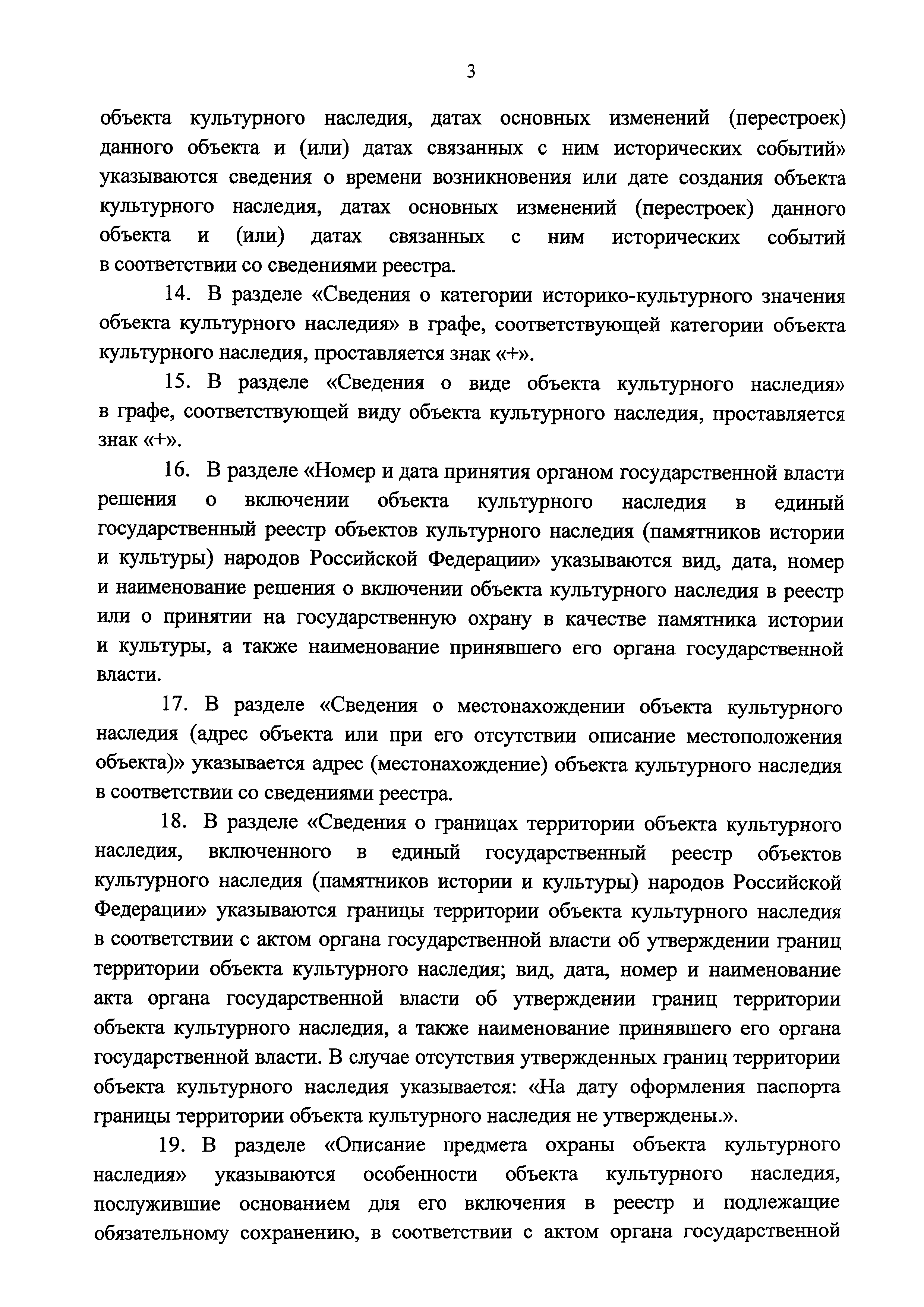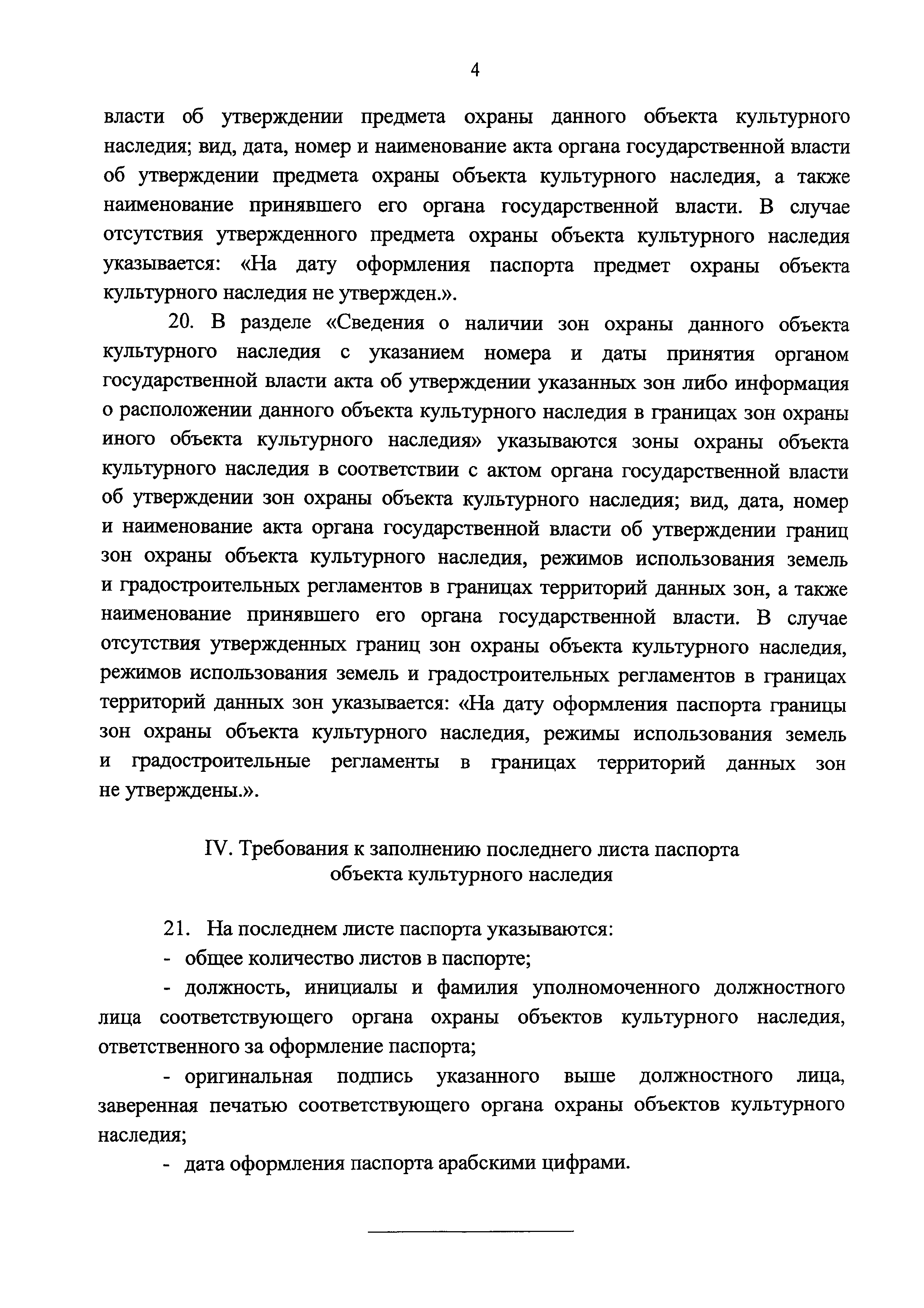 | Оглавление: | I. Общие положения II. Требования к заполнению титульного листа паспорта объекта культурного наследия III. Требования к заполнению разделов паспорта объекта культурного наследия IV. Требования к заполнению последнего листа паспорта объекта культурного наследия |