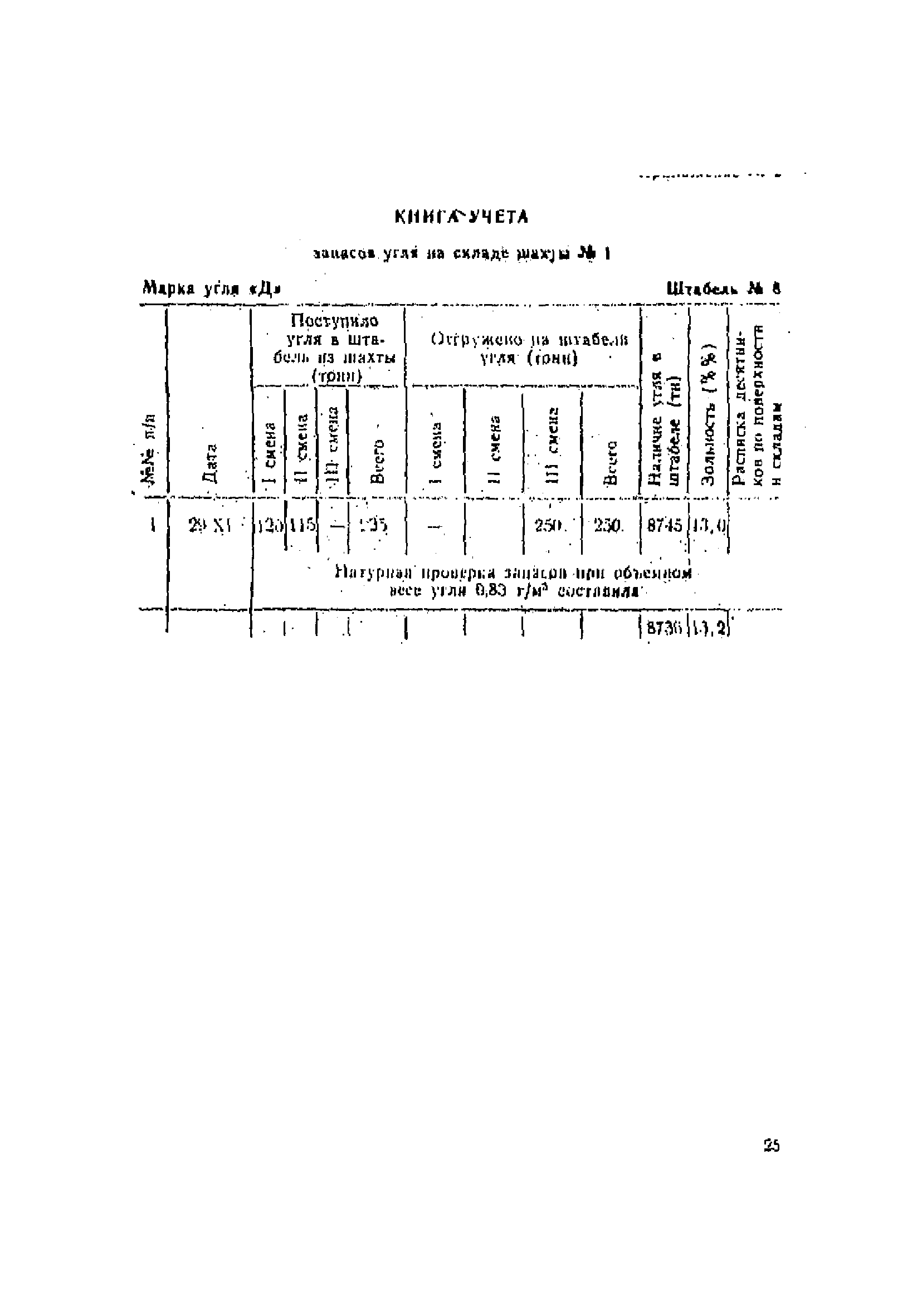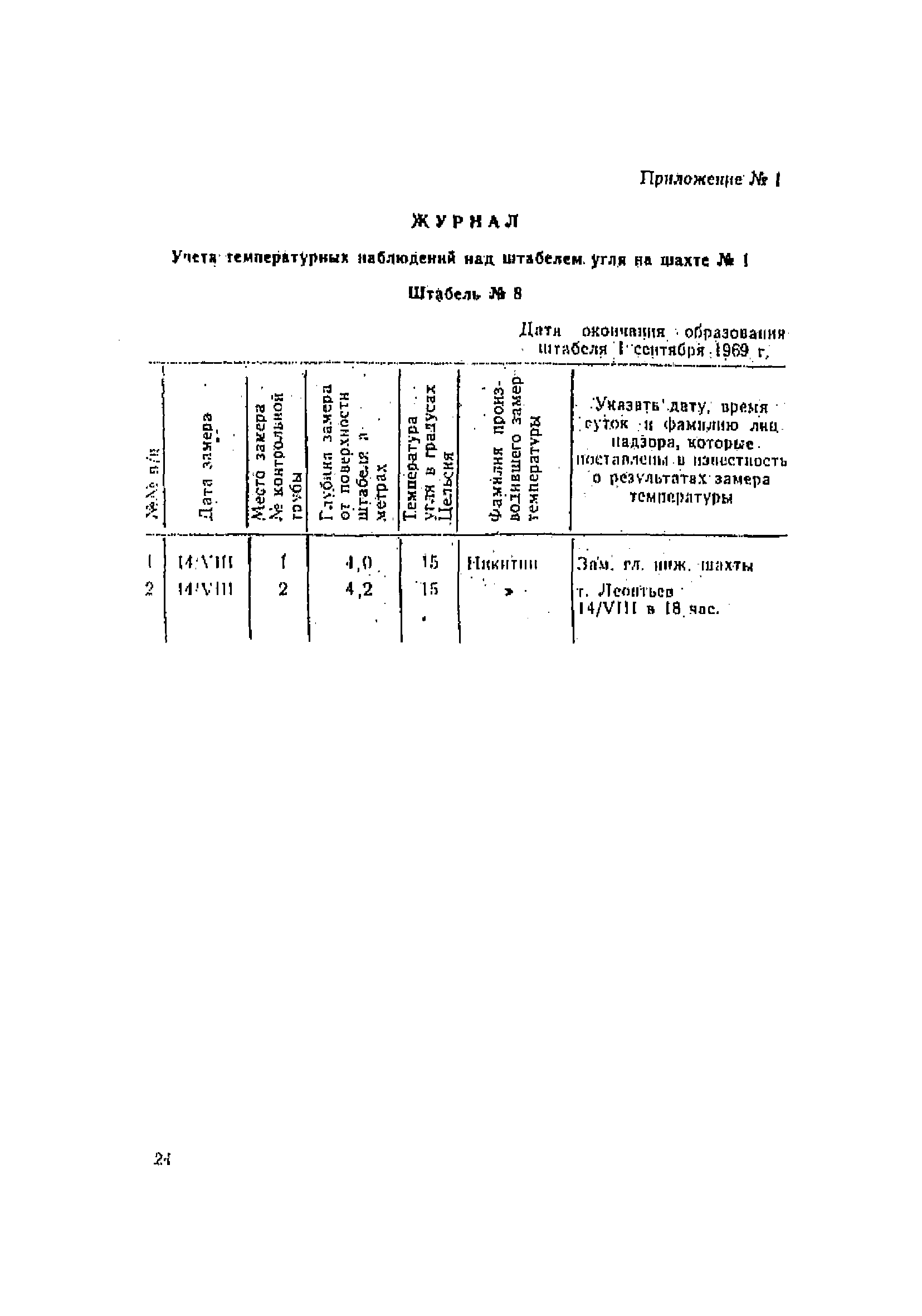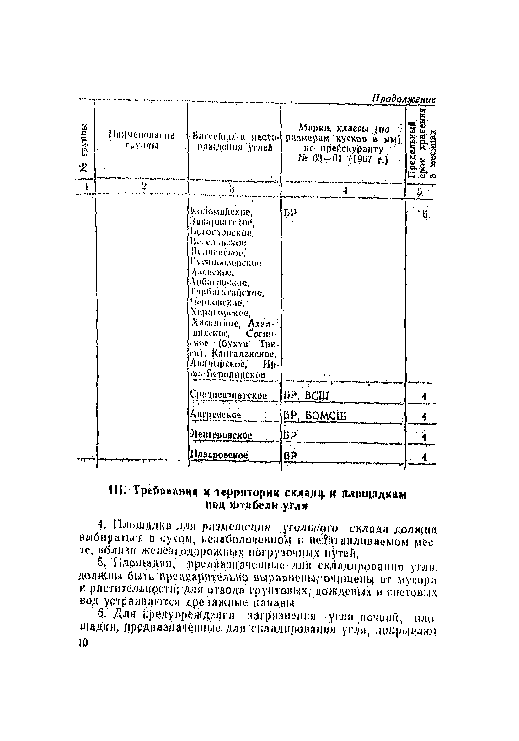 Инструкция по эксплуатации складов для хранения угля на шахтах, карьерах, обогатительных фабриках и сортировках| Статус: | не установлен срок действия | | Название рус.: | Инструкция по эксплуатации складов для хранения угля на шахтах, карьерах, обогатительных фабриках и сортировках | | Дата добавления в базу: | 01.02.2017 | | Дата актуализации: | 01.01.2021 | | Оглавление: | I Общие положения II Группировка углей по склонности к окислению и предельные сроки хранения на складах III Требования к территории склада и площадкам под штабели угля IV Прием угля на склад и отгрузка со склада V Закладка угля в штабель и мероприятия по снижению потерь угля при хранении VI Учет и проверка запасов угля на складе Приложение 1. Учет температурных наблюдений над штабелем угля на шахте № 1 Приложение 2. Книга учета запасов угля на складе шахты № 1 Приложение 3. Химические вещества - ингибиторы, тормозящие окислительные процессы в углях Приложение 4. Поверхностные покрытия штабелей угля | | Утверждён: | 10.02.1970 Министерство угольной промышленности СССР (USSR Ministry of the Coal Industry 57)