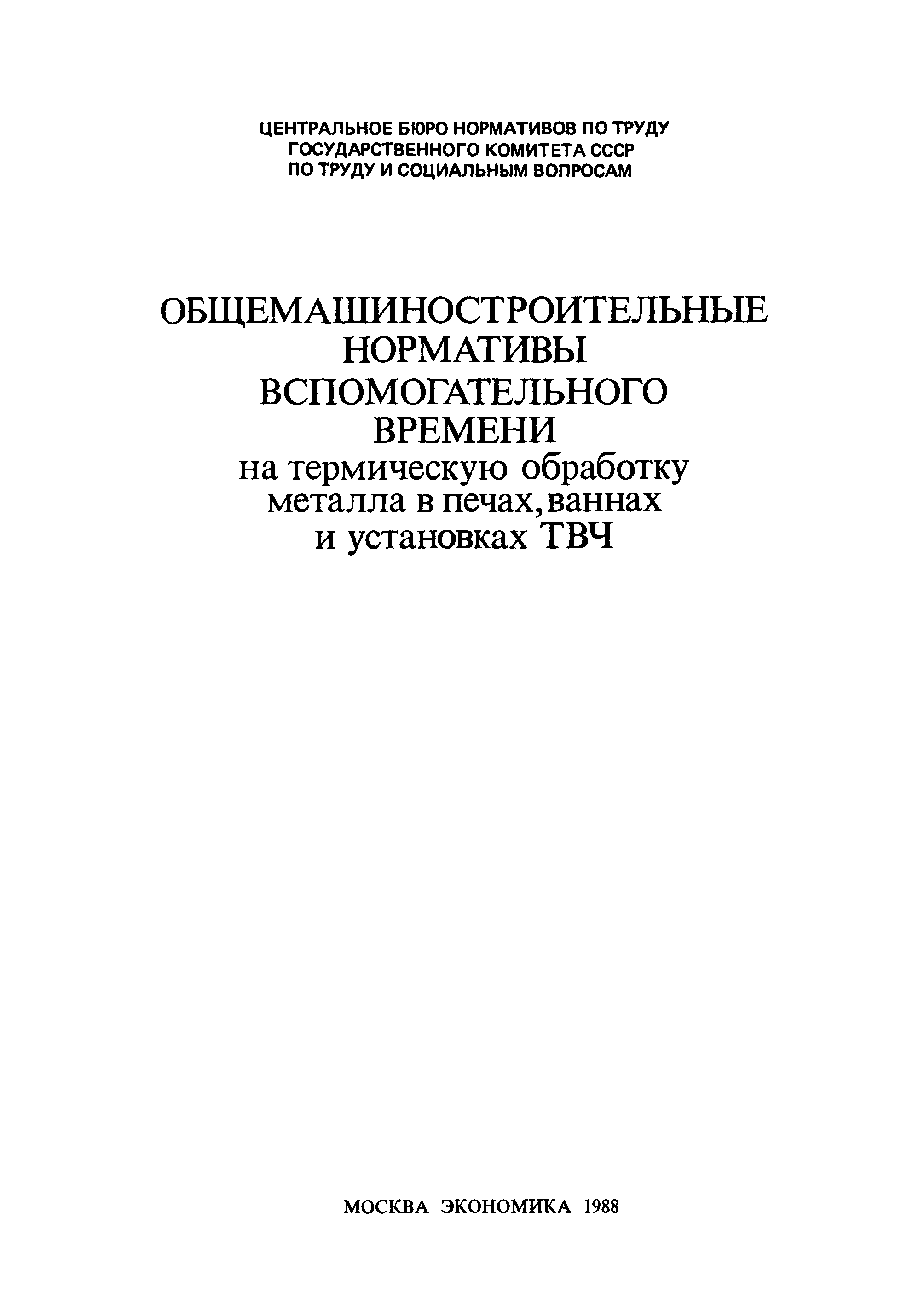 | | Заменяет собой: | - «Общемашиностроительные нормативы вспомогательного времени на термическую обработку металла в печах, ваннах и установках ТВЧ» (1975 год)