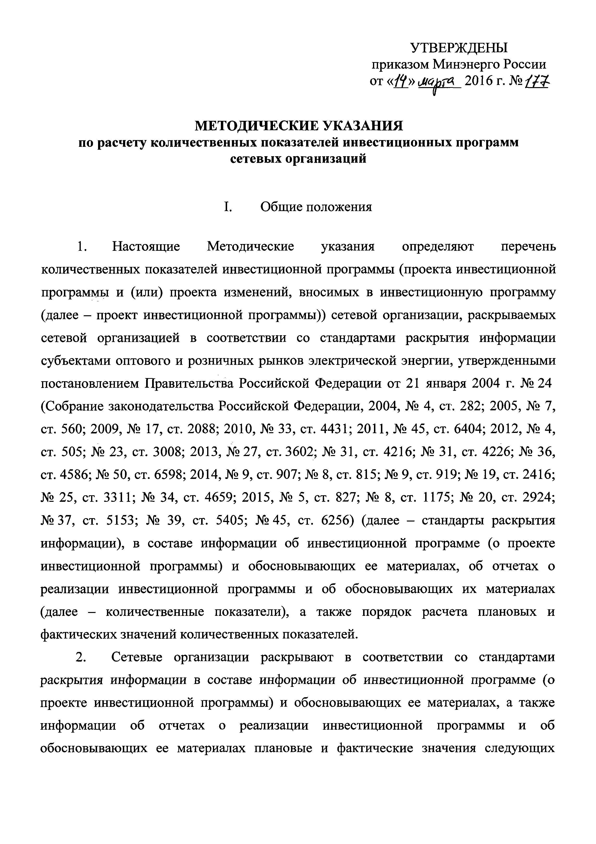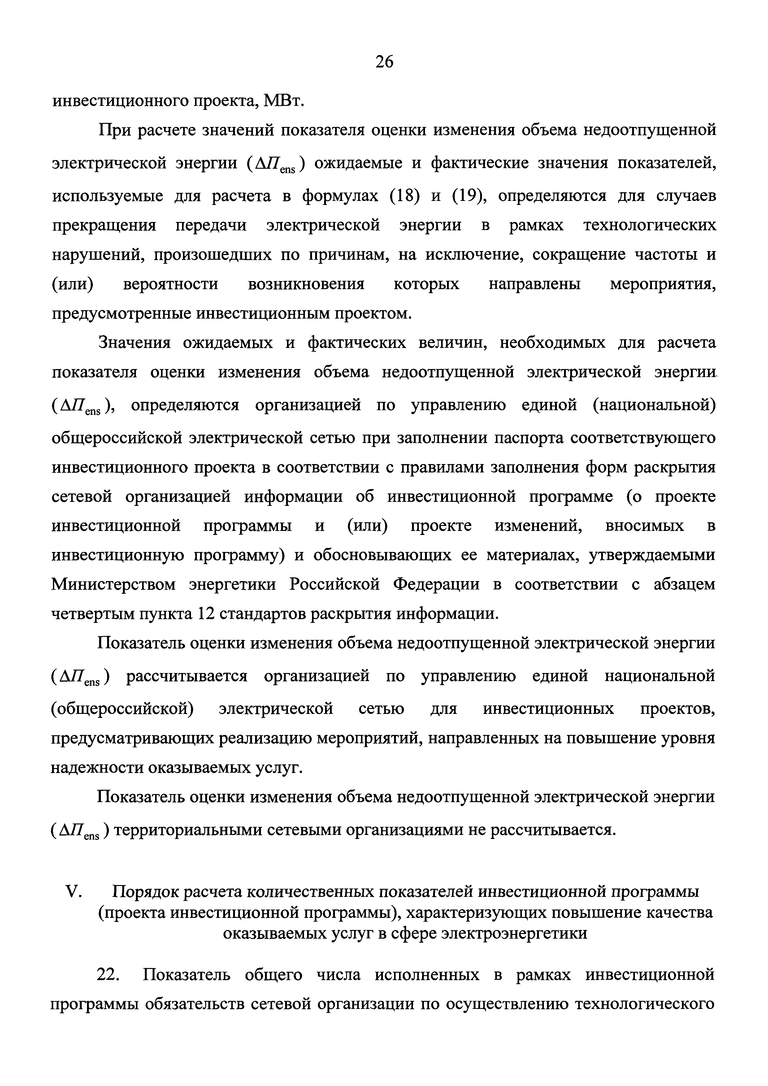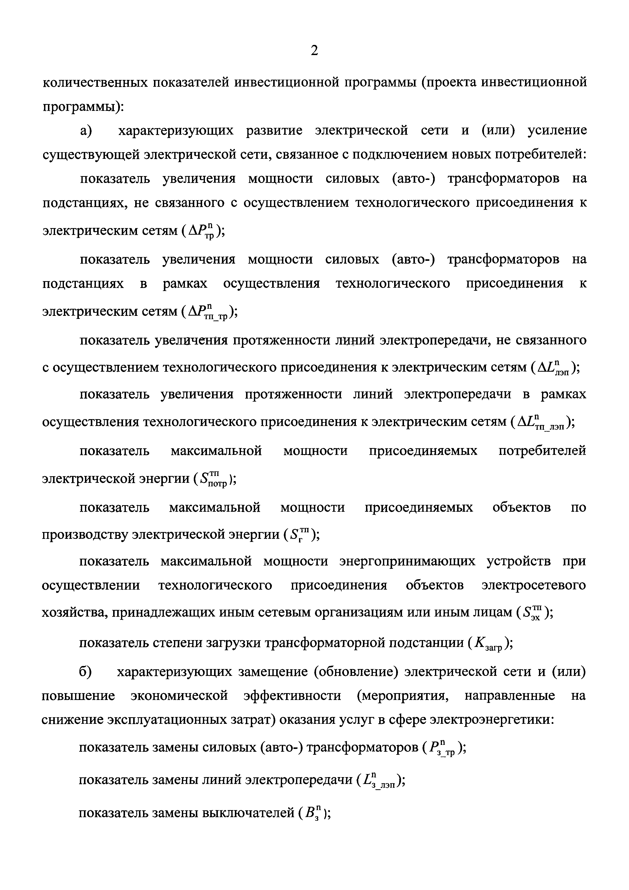 Методические указания по расчету количественных показателей инвестиционных программ сетевых организаций| Статус: | действует | | Название рус.: | Методические указания по расчету количественных показателей инвестиционных программ сетевых организаций | | Дата добавления в базу: | 01.02.2017 | | Дата актуализации: | 01.01.2021 | | Дата введения: | 26.06.2016 | | Оглавление: | I. Общие положения II. Порядок расчета количественных показателей инвестиционной программы (проекта инвестиционной программы), характеризующих развитие электрической сети и (или) усиление существующей электрической сети, связанное с подключением новых потребителей III. Порядок расчета количественных показателей инвестиционной программы (проекта инвестиционной программы), характеризующих замещение (обновление) электрической сети и (или) повышение экономической эффективности (мероприятия направленные на снижение эксплуатационных затрат) оказания услуг в сфере электроэнергетики IV. Порядок расчета количественных показателей инвестиционной программы (проекта инвестиционной программы), характеризующих повышение надежности оказываемых услуг в сфере электроэнергетики V. Порядок расчета количественных показателей инвестиционной программы (проекта инвестиционной программы), характеризующих повышение качества оказываемых услуг в сфере электроэнергетики VI. Порядок расчета количественных показателей инвестиционной программы (проекта инвестиционной программы), характеризующих выполнение требований законодательства Российской Федерации, предписаний органов исполнительной власти, регламентов рынков электрической энергии VII. Порядок расчета количественных показателей инвестиционной программы (проекта инвестиционной программы), характеризующих обеспечение текущей деятельности в сфере электроэнергетики, в том числе развитие информационной инфраструктуры, хозяйственное обеспечение деятельности VIII. Порядок расчета количественных показателей инвестиционной программы (проекта инвестиционной программы), характеризующих инвестиции, связанные с деятельностью, не относящейся к сфере электроэнергетики | | Утверждён: | 14.03.2016 Министерство энергетики РФ (Russian Federation Ministry of Energy 177)