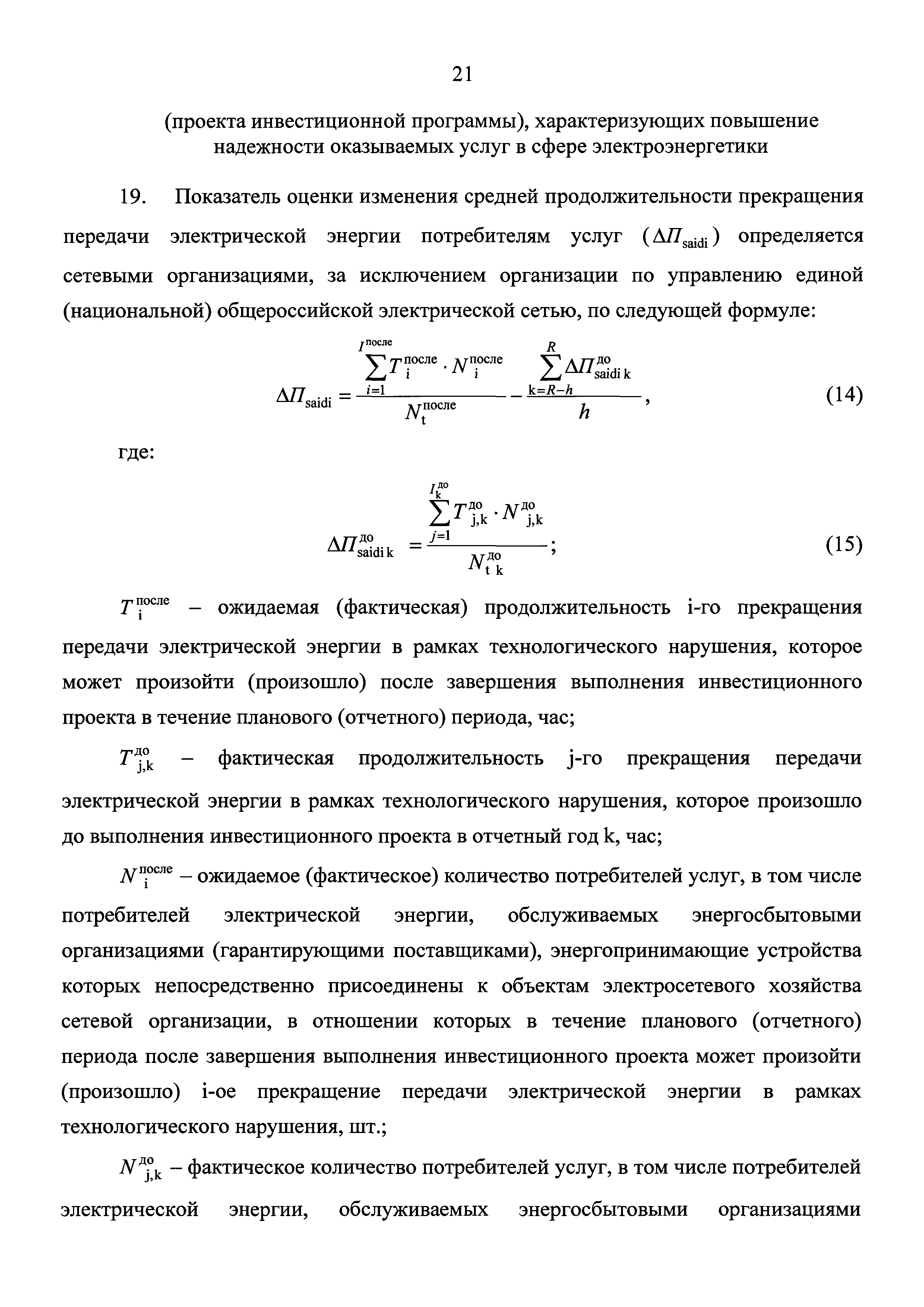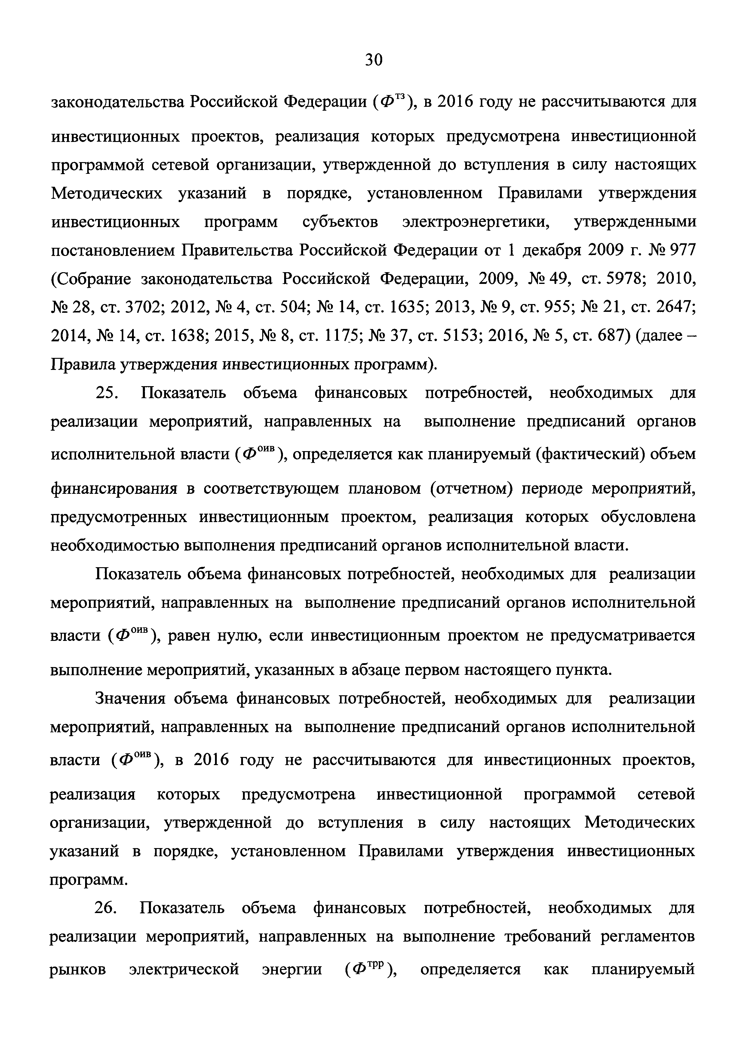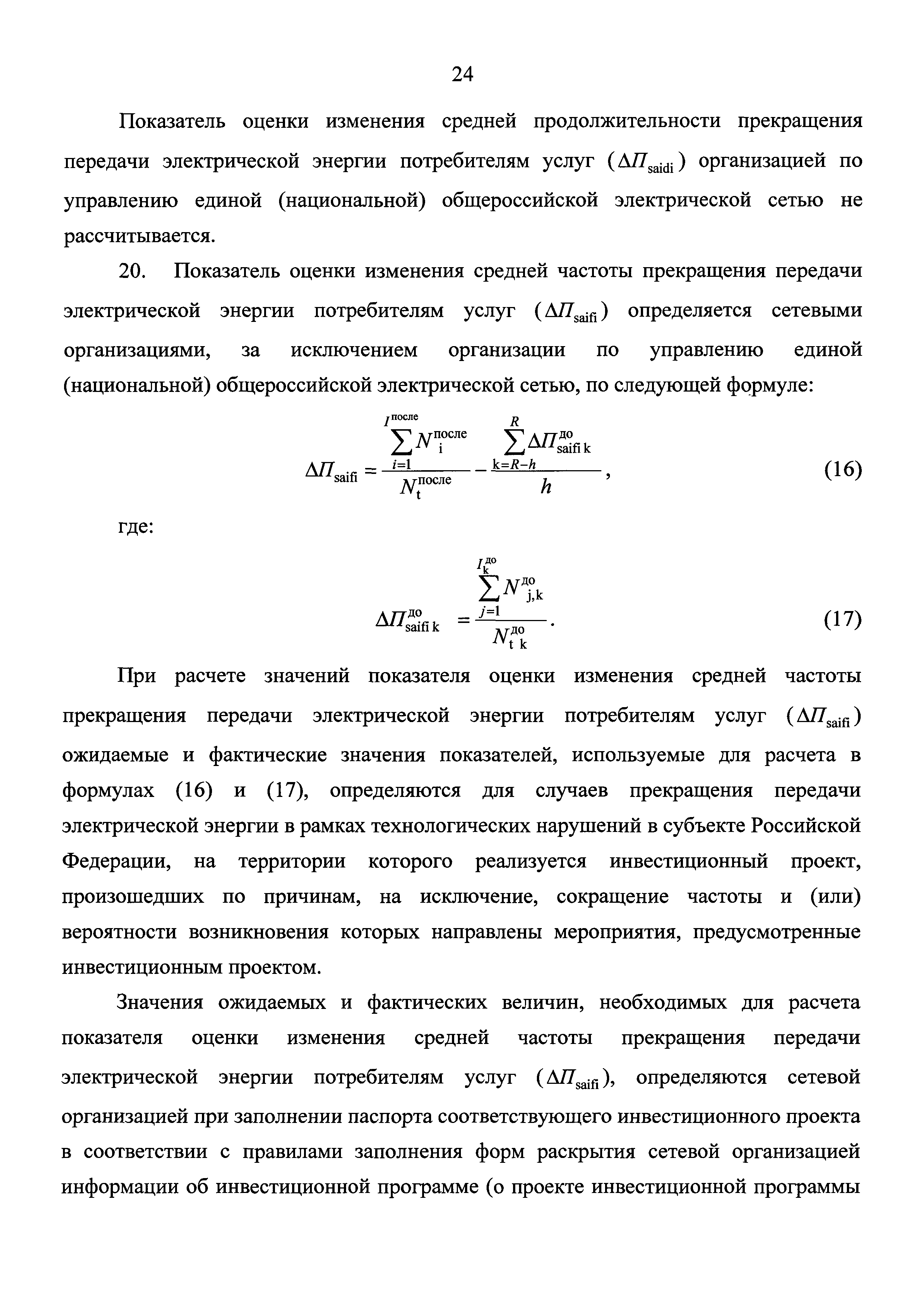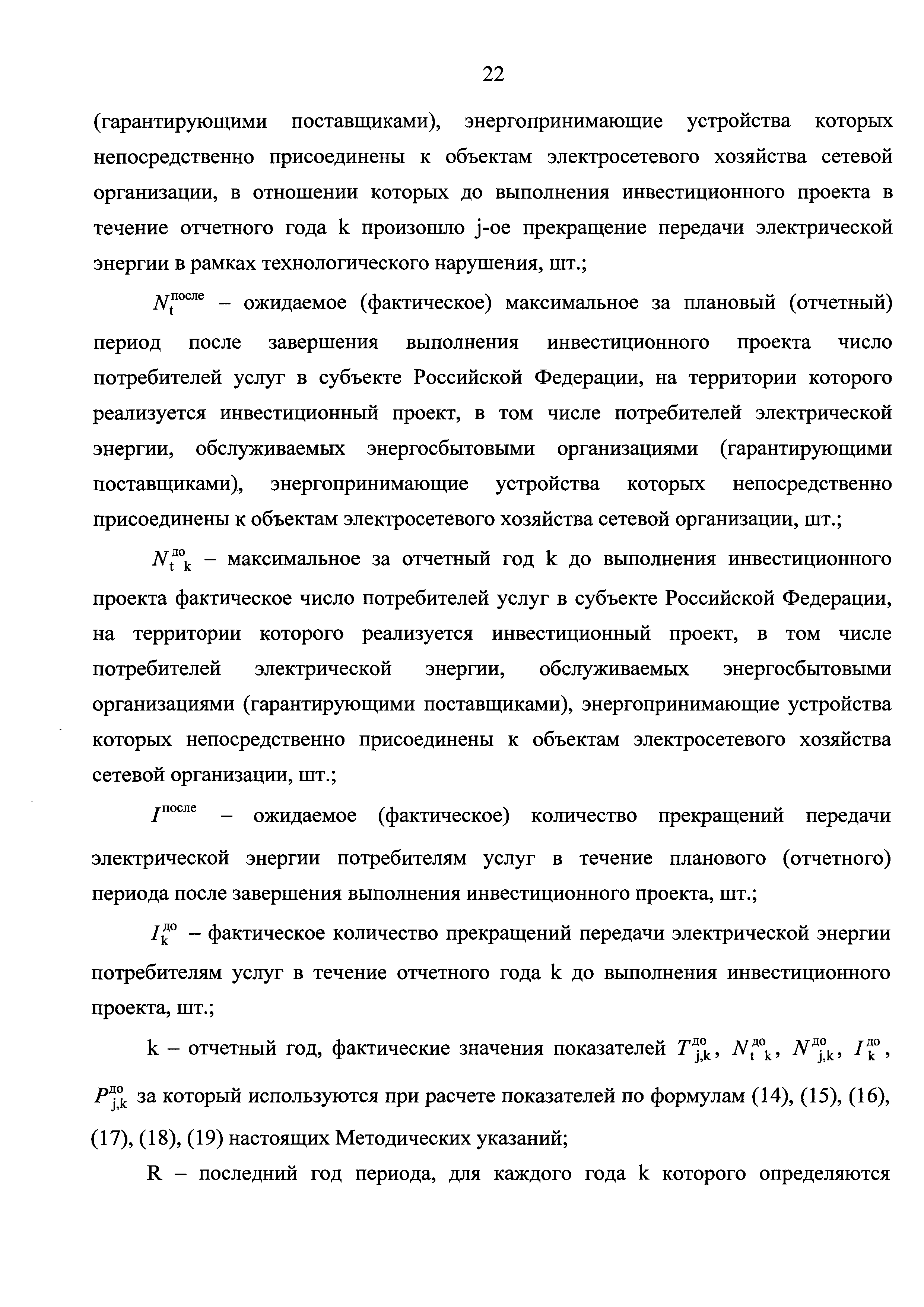 Методические указания по расчету количественных показателей инвестиционных программ сетевых организаций| Статус: | действует | | Название рус.: | Методические указания по расчету количественных показателей инвестиционных программ сетевых организаций | | Дата добавления в базу: | 01.02.2017 | | Дата актуализации: | 01.01.2021 | | Дата введения: | 26.06.2016 | | Оглавление: | I. Общие положения II. Порядок расчета количественных показателей инвестиционной программы (проекта инвестиционной программы), характеризующих развитие электрической сети и (или) усиление существующей электрической сети, связанное с подключением новых потребителей III. Порядок расчета количественных показателей инвестиционной программы (проекта инвестиционной программы), характеризующих замещение (обновление) электрической сети и (или) повышение экономической эффективности (мероприятия направленные на снижение эксплуатационных затрат) оказания услуг в сфере электроэнергетики IV. Порядок расчета количественных показателей инвестиционной программы (проекта инвестиционной программы), характеризующих повышение надежности оказываемых услуг в сфере электроэнергетики V. Порядок расчета количественных показателей инвестиционной программы (проекта инвестиционной программы), характеризующих повышение качества оказываемых услуг в сфере электроэнергетики VI. Порядок расчета количественных показателей инвестиционной программы (проекта инвестиционной программы), характеризующих выполнение требований законодательства Российской Федерации, предписаний органов исполнительной власти, регламентов рынков электрической энергии VII. Порядок расчета количественных показателей инвестиционной программы (проекта инвестиционной программы), характеризующих обеспечение текущей деятельности в сфере электроэнергетики, в том числе развитие информационной инфраструктуры, хозяйственное обеспечение деятельности VIII. Порядок расчета количественных показателей инвестиционной программы (проекта инвестиционной программы), характеризующих инвестиции, связанные с деятельностью, не относящейся к сфере электроэнергетики | | Утверждён: | 14.03.2016 Министерство энергетики РФ (Russian Federation Ministry of Energy 177)