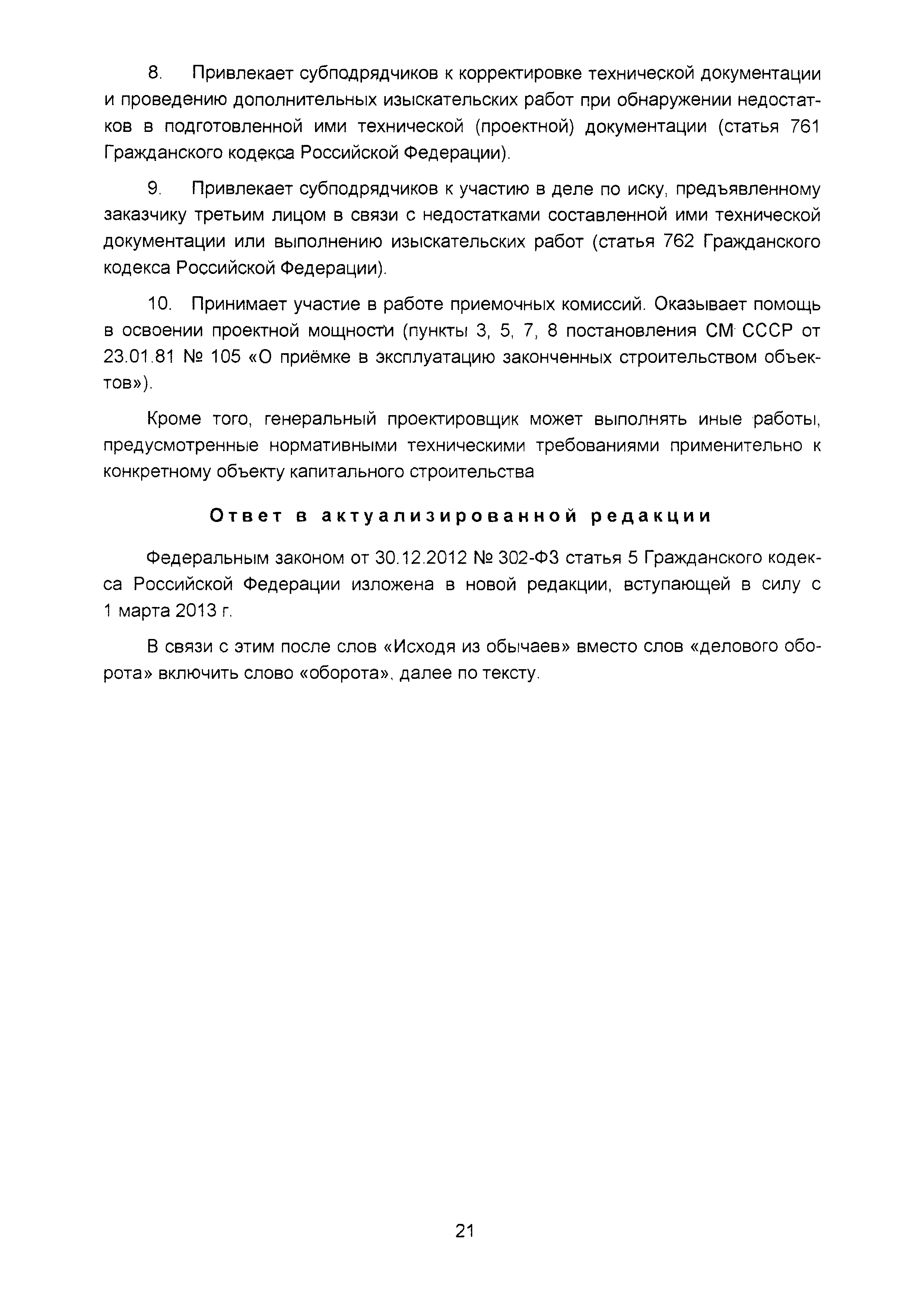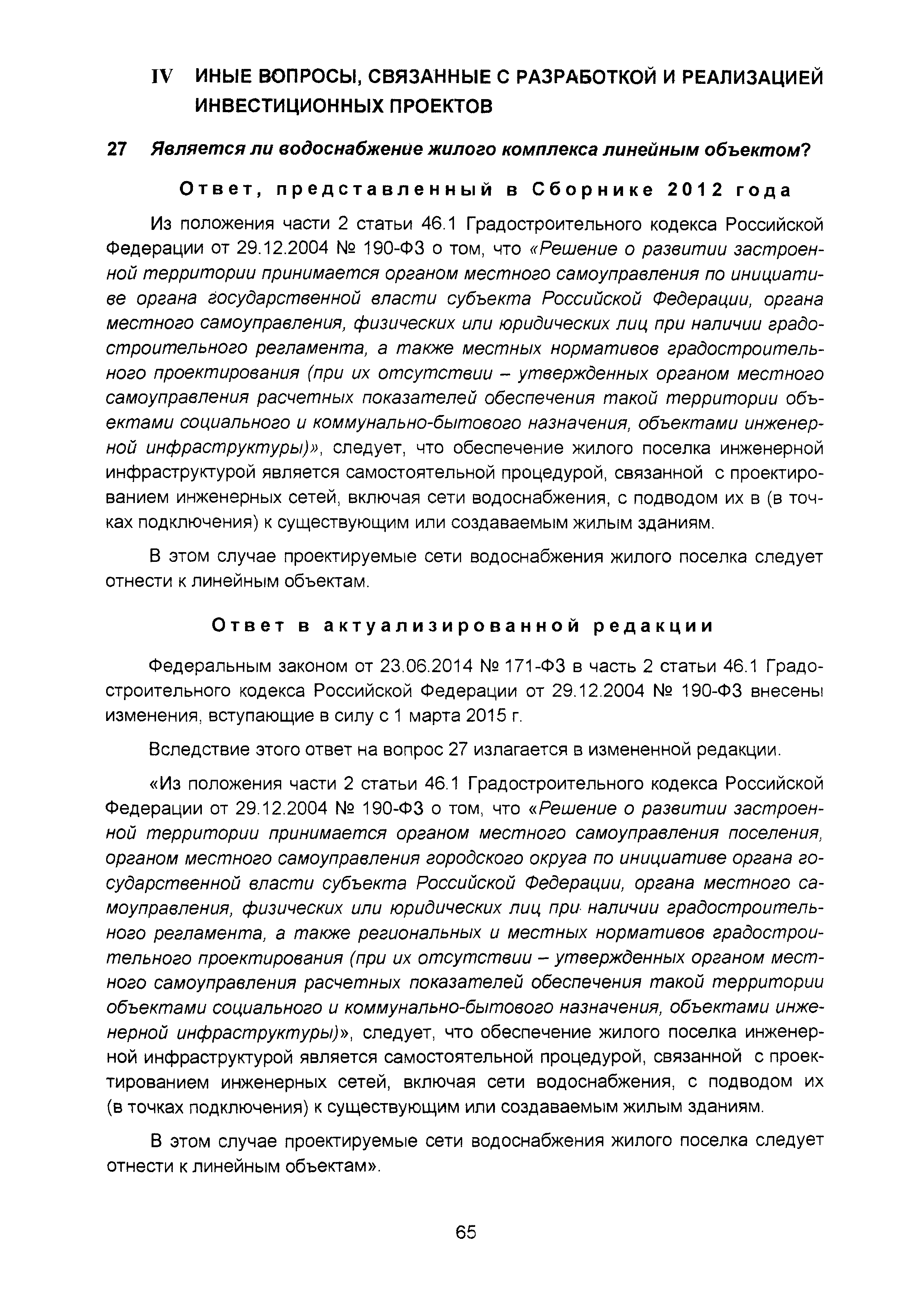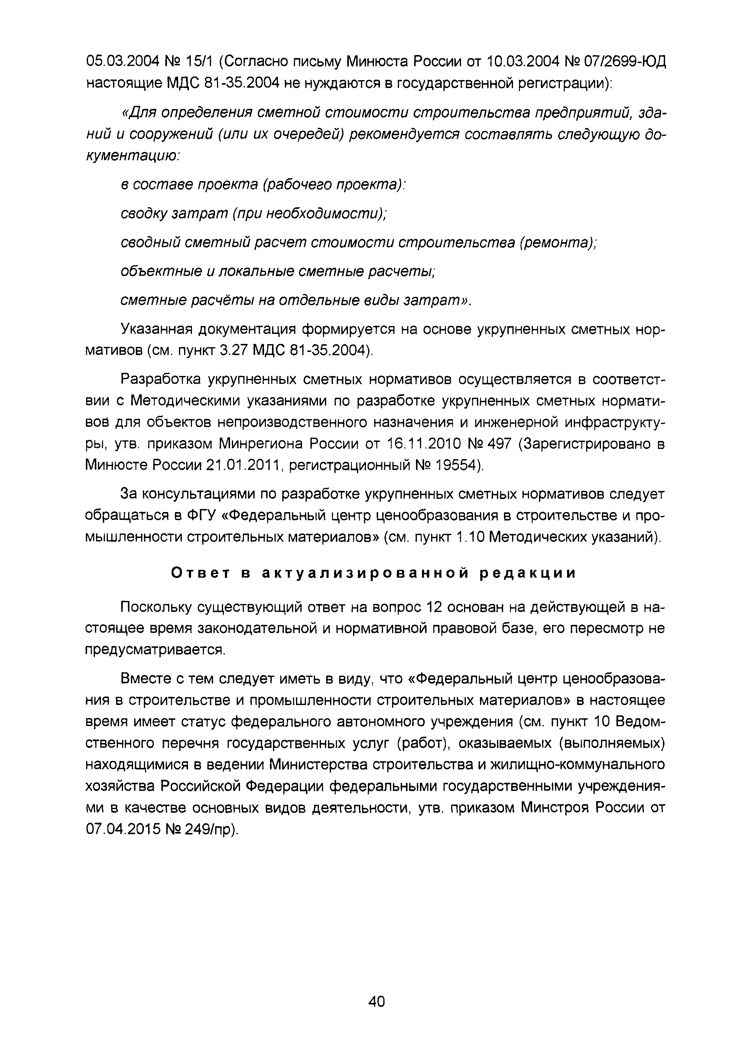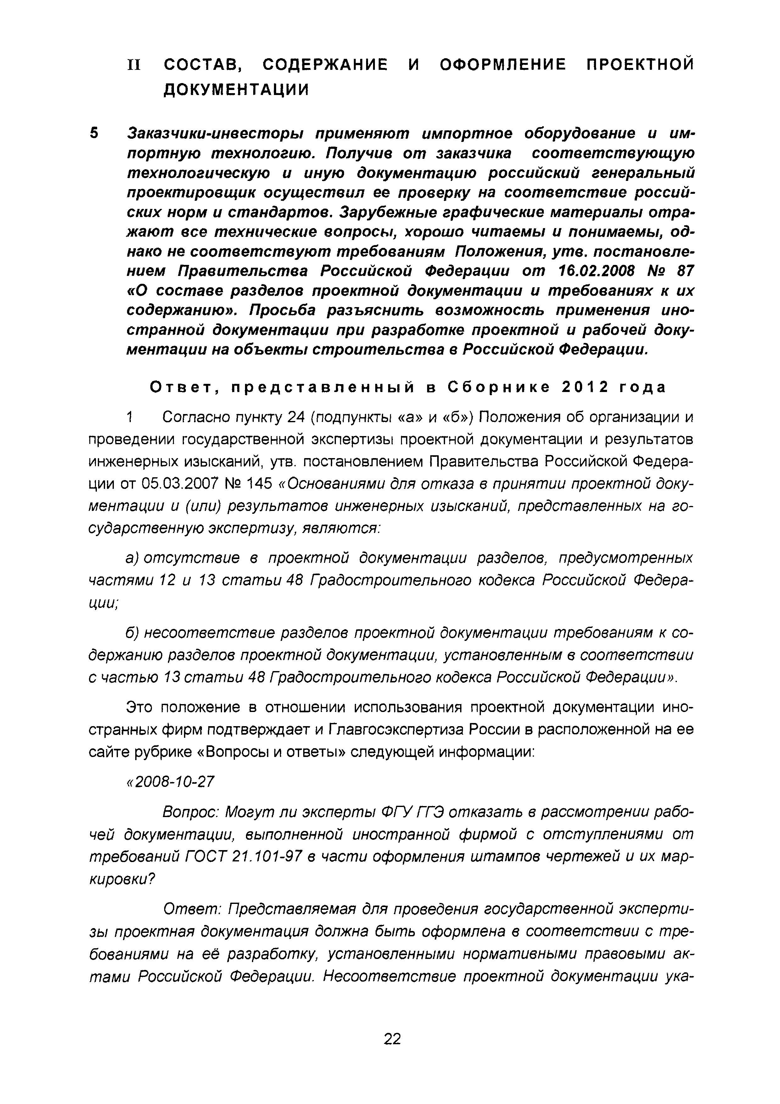 | Оглавление: | Введение I Организация разработки инвестиционных проектов и подготовки предпроектных материалов II Состав, содержание и оформление проектной документации III Состав и содержание материалов, представляемых на государственную экспертизу проектной документации IV Иные вопросы, связанные с разработкой и реализацией инвестиционных проектов Приложение. Перечень законодательных и нормативных правовых актов, нормативно-правовых и нормативно-технических документов и других источников информации, использованных при разработке актуализированной редакции Сборника (по состоянию на 01.04.2016) |