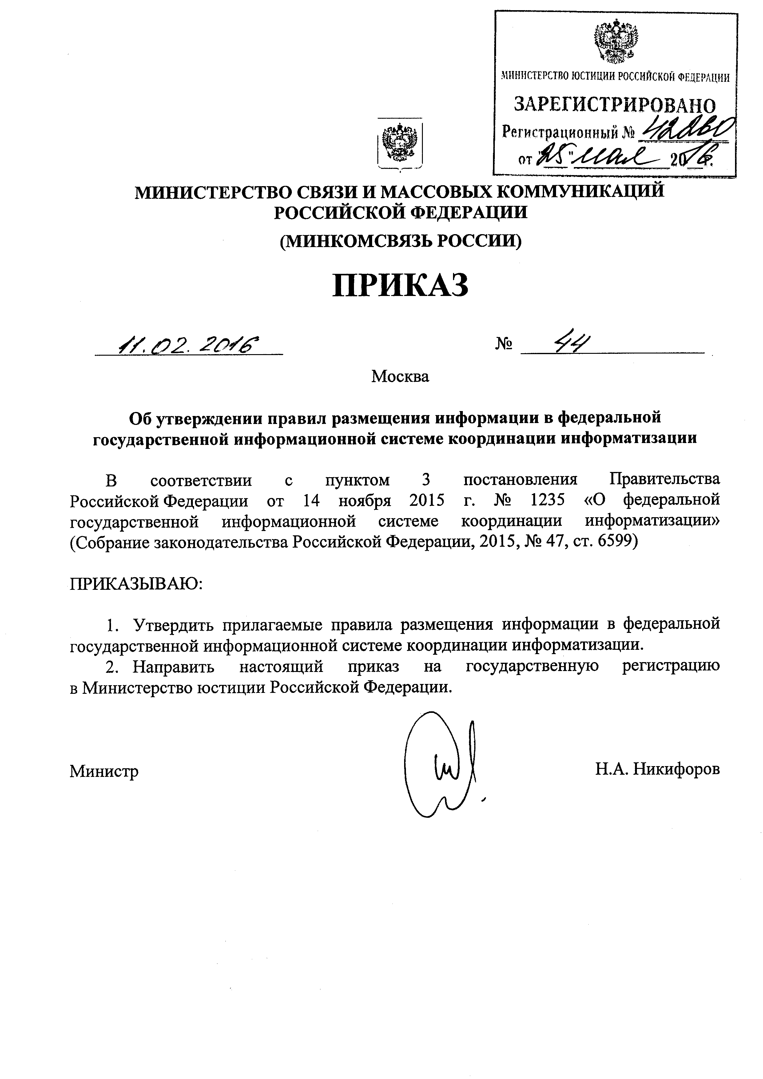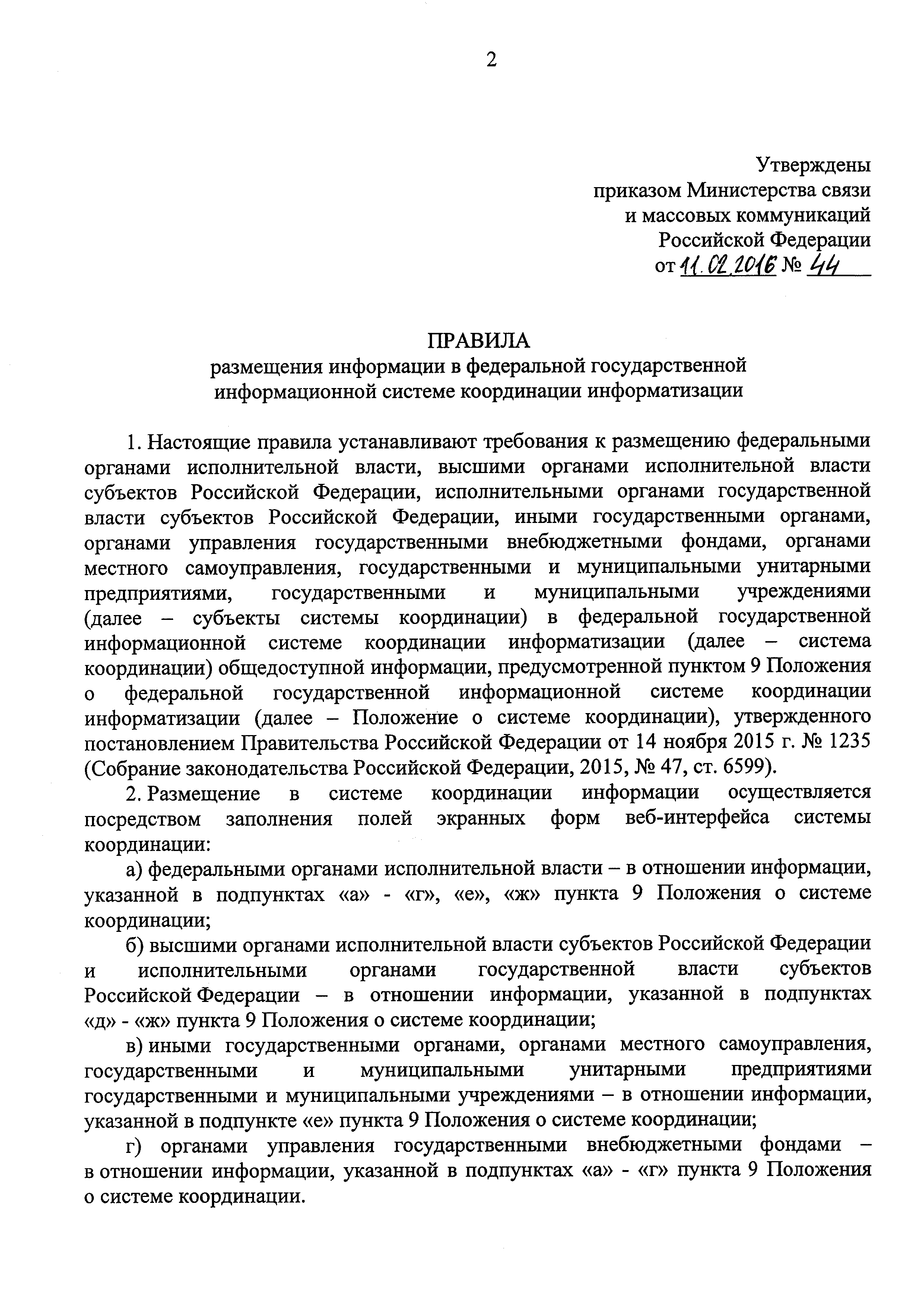 | Утверждён: | 11.02.2016 Министерство связи и массовых коммуникаций РФ (44)