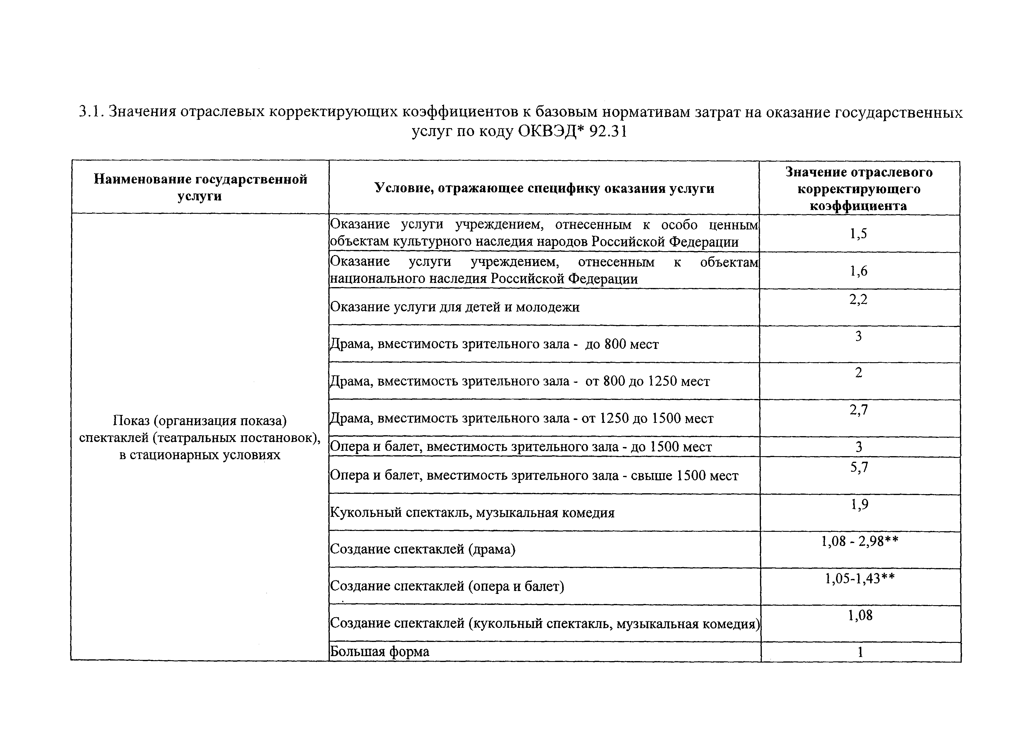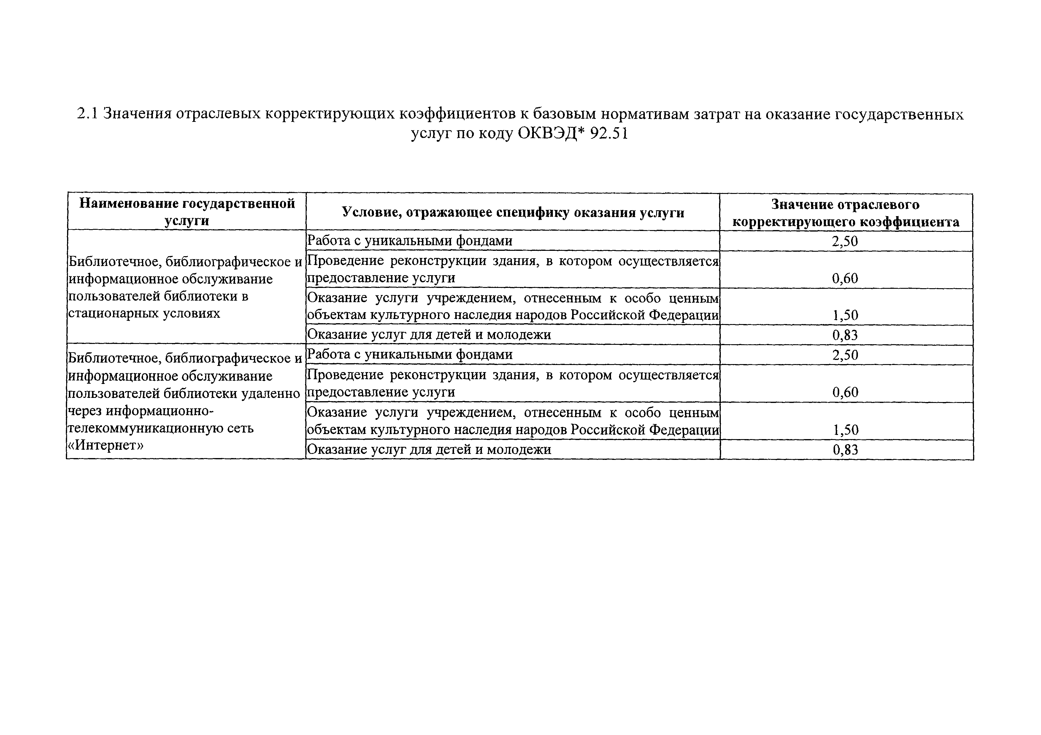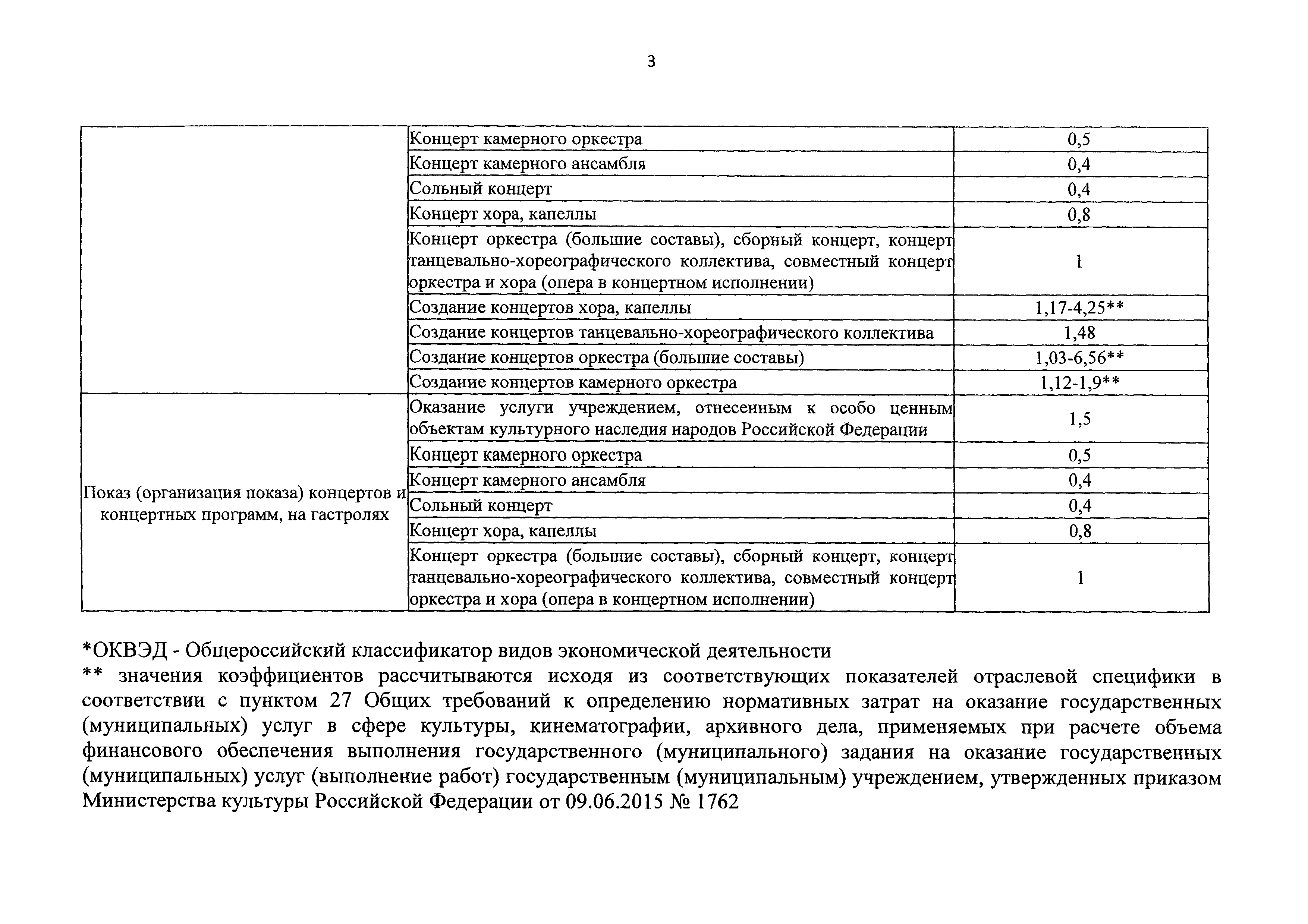Значения базовых нормативов затрат на оказание государственных услуг в сфере культуры, кинематографии, архивного дела, туризма и отраслевые корректирующие коэффициенты| Статус: | действует | | Название рус.: | Значения базовых нормативов затрат на оказание государственных услуг в сфере культуры, кинематографии, архивного дела, туризма и отраслевые корректирующие коэффициенты | | Дата добавления в базу: | 01.02.2017 | | Дата актуализации: | 01.01.2021 | | Дата введения: | 16.04.2016 | | Оглавление: | 1. Значения базовых нормативов затрат на оказание государственных услуг по коду ОКВЭД 92.52 2. Значение базовых нормативов затрат на оказание государтсвенный услуг по коду ОКВЭД 92.51 3. 2. Значение базовых нормативов затрат на оказание государтсвенный услуг по коду ОКВЭД 92.31 | | Утверждён: | 30.12.2015 Министерство культуры Российской Федерации (Russian Federation Ministry of Culture 3450)