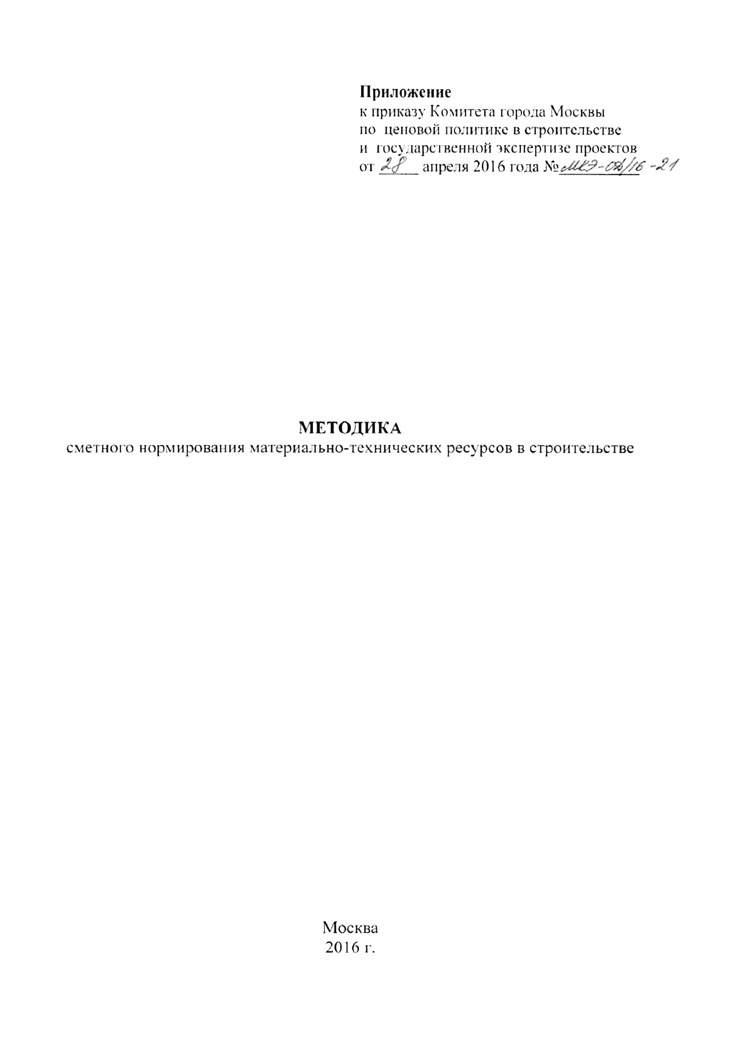 | Утверждён: | 28.04.2016 Комитет города Москвы по ценовой политике в строительстве и государственной экспертизе проектов (МКЭ-ОД/16-21) |