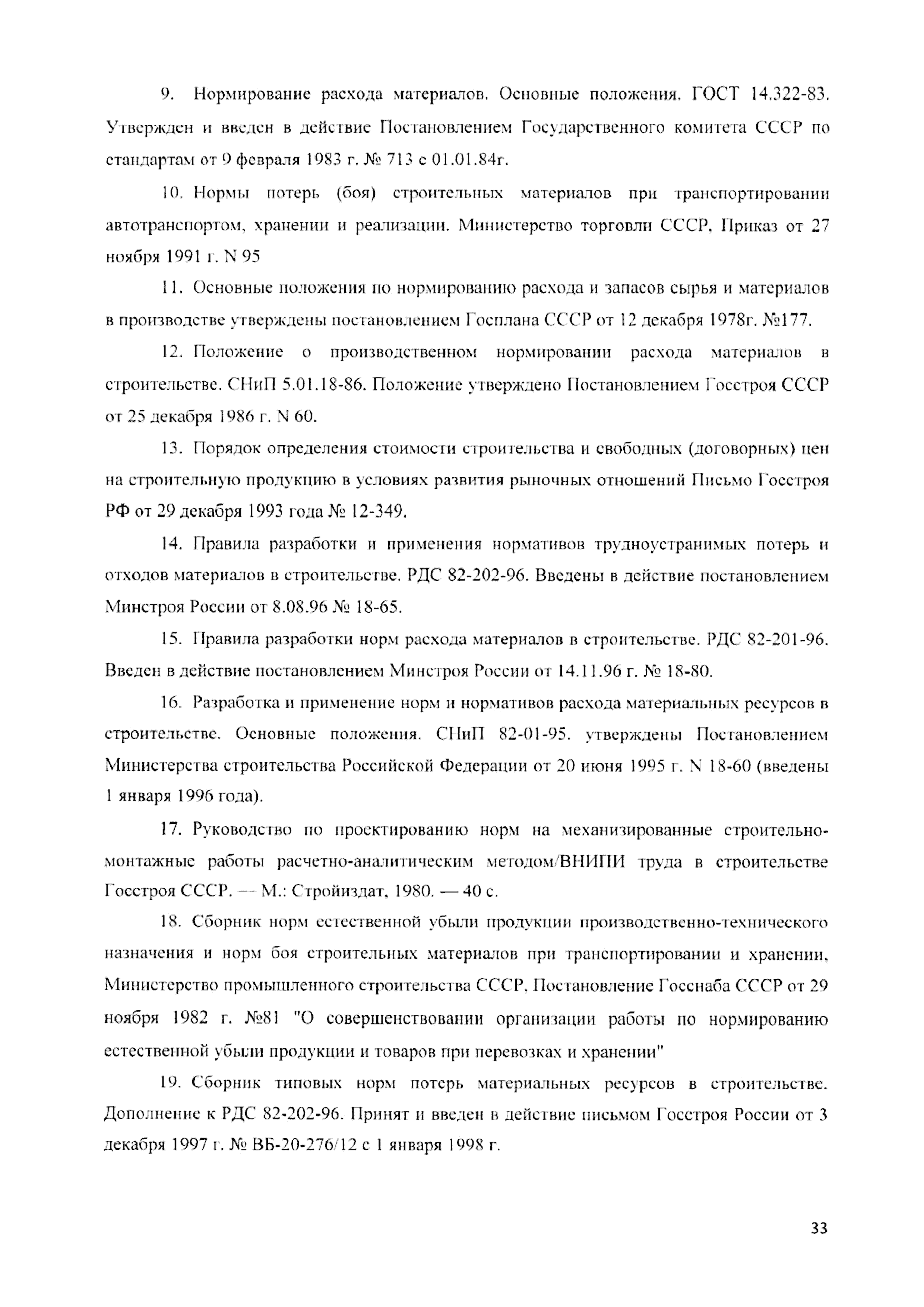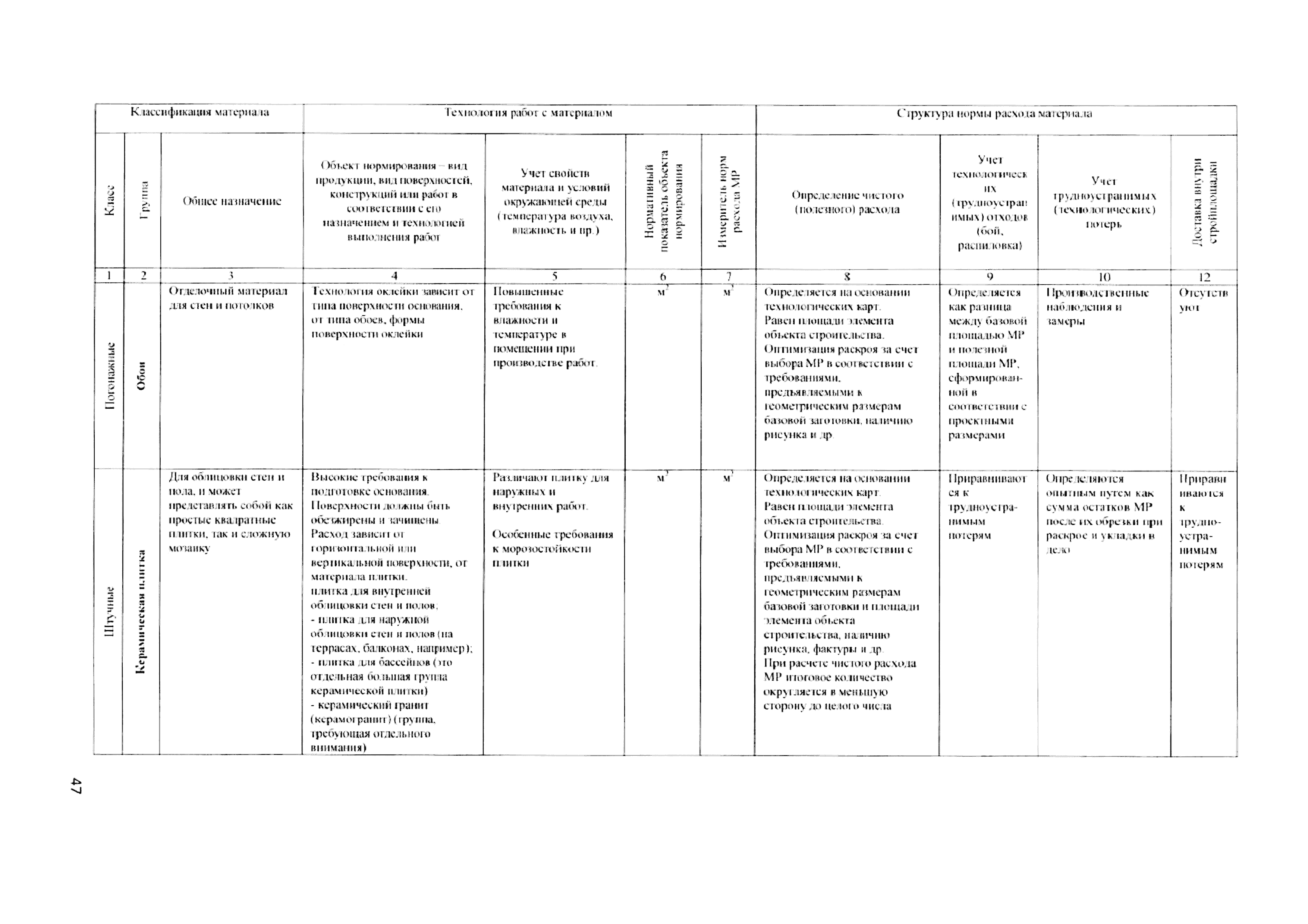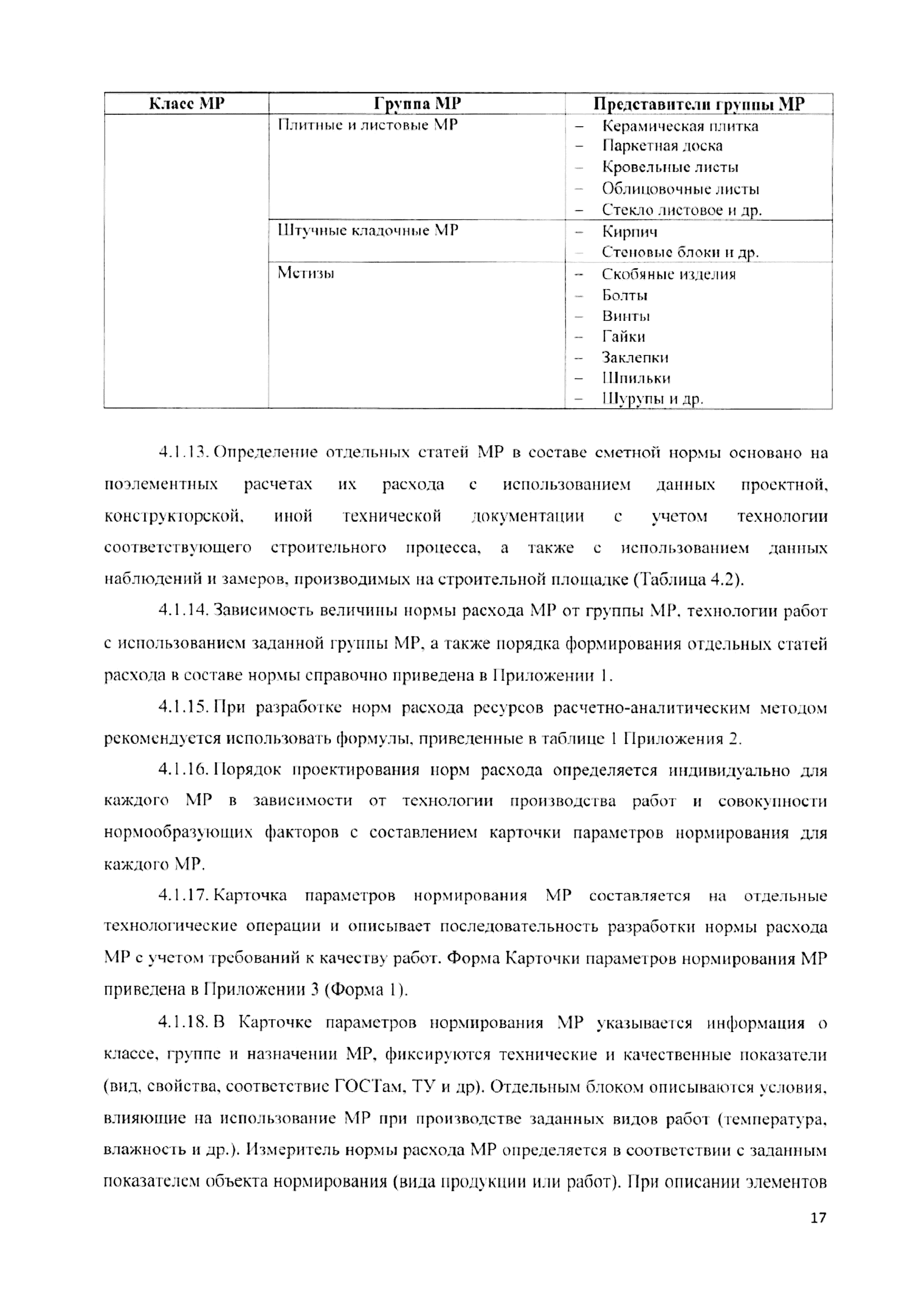 | Оглавление: | 1 Общие положения 2 Термины и определения 3 Методы разработки сметных норм расхода материально-технических ресурсов 4 Сметное нормирование расхода материально-технических ресурсов при разработке/актуализации расценок на выполнение различных видов работ 4.1 Нормирование расхода материальных ресурсов 4.2 Нормирование времени использования строительных машин и механизмов 5 Организация работы по нормированию расхода материально-технических ресурсов в строительстве и оформление полученных результатов Список литературы Приложение 1. Зависимость величины нормы расхода МР от группы МР, технологии работ с использованием заданной группы МР и порядка формирования отдельных элементов структуры расхода Приложение 2. Формулы расчета норм расхода материальных ресурсов Приложение 3. Форма 1. Карточка определения параметров нормирования расхода материального ресурса Форма 2. Карточка определения параметров нормирования времени использования строительных машин и механизмов Форма 3. Результаты замеров расхода материальных ресурсов для объекта нормирования Форма 4. Результаты замеров времени использования строительных машин и механизмов для объекта нормирования Форма 5. Перечень технологических операций и объемы работ к калькуляции для объекта нормирования Приложение 4. Зависимость класса материальных ресурсов от требуемой точности норм (величины допустимой погрешности) и коэффициента разбросанности ряда |