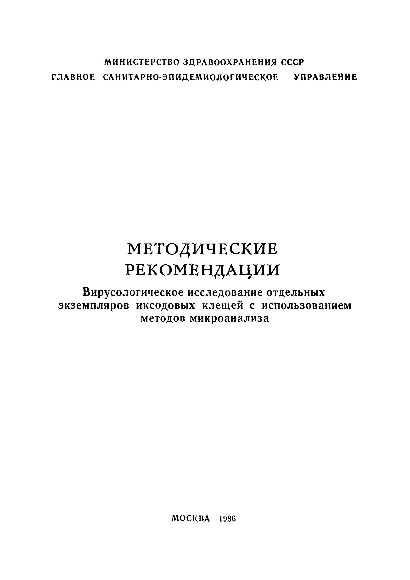 | Название рус.: | Методические рекомендации. Вирусологическое исследование отдельных экземпляров иксодовых клещей с использованием методов микроанализа |