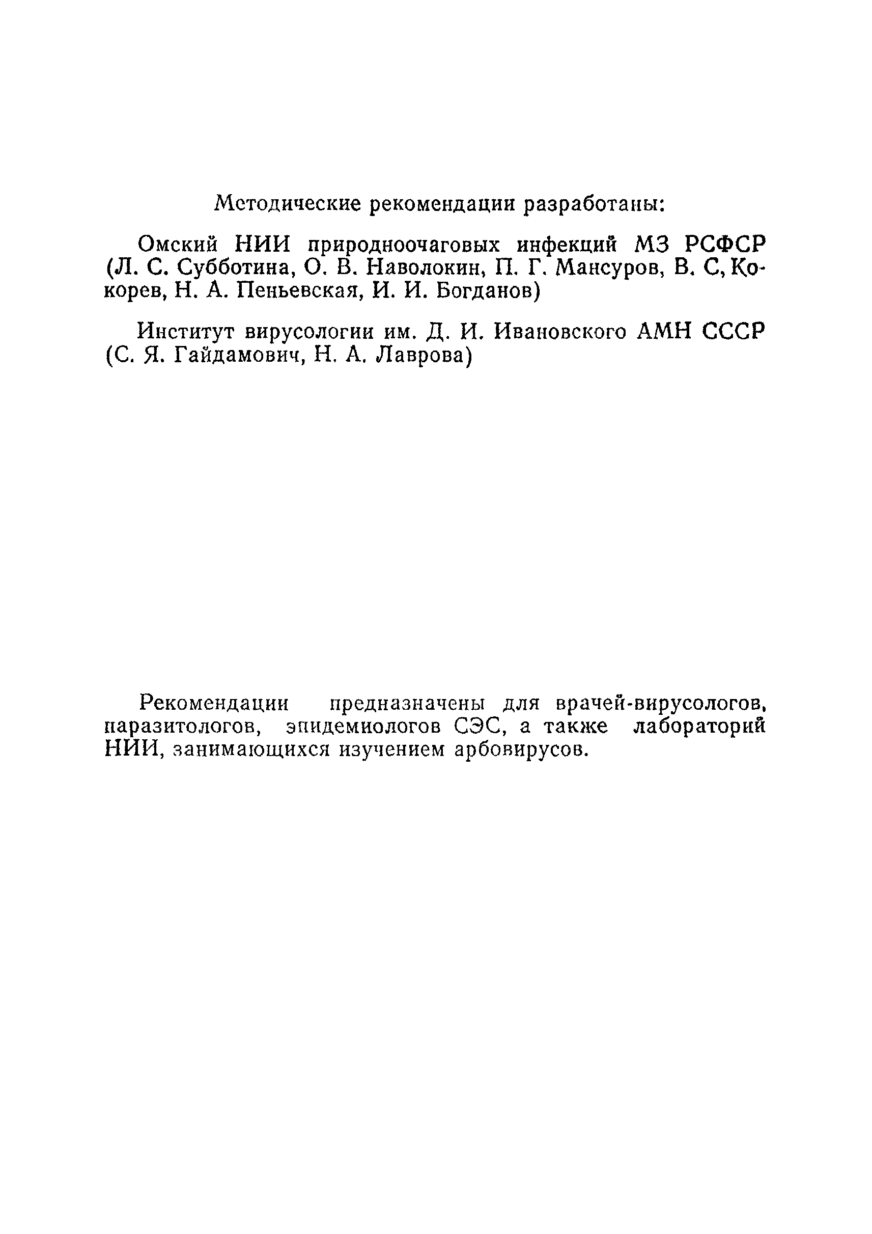 | Область применения: | Рекомендации предназначены для врачей-вирусологов, паразитологов, эпидемиологов СЭС, а также лабораторий НИИ, занимающихся изучением арбовирусов. |