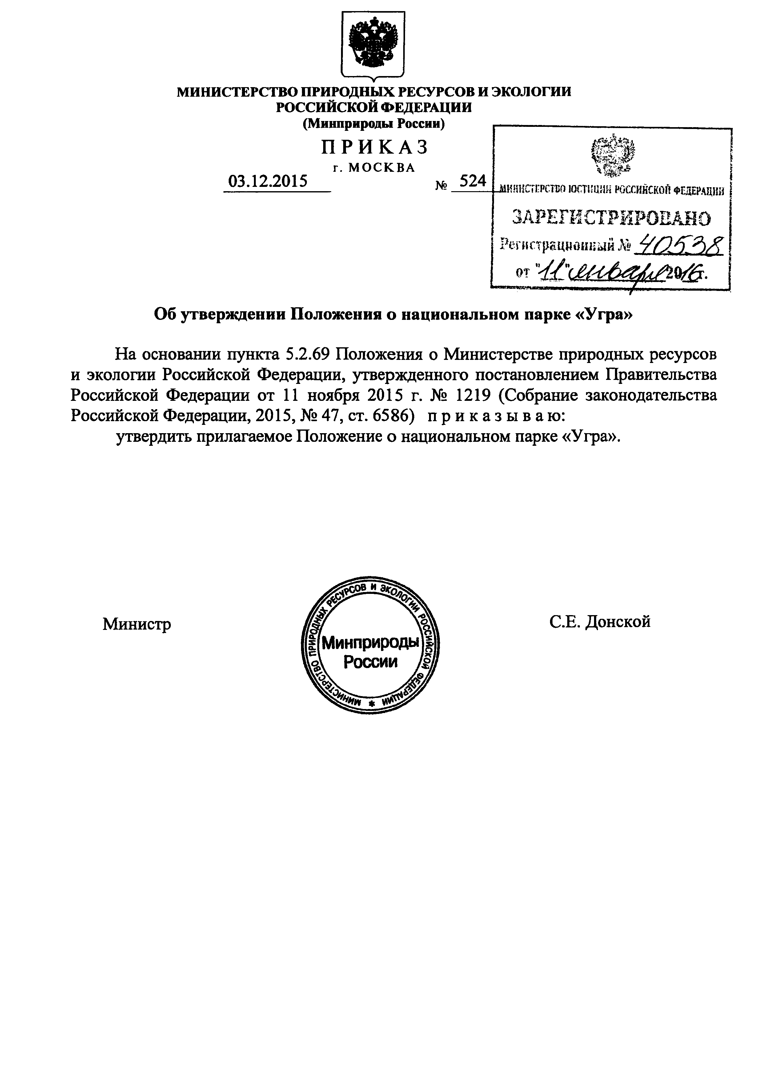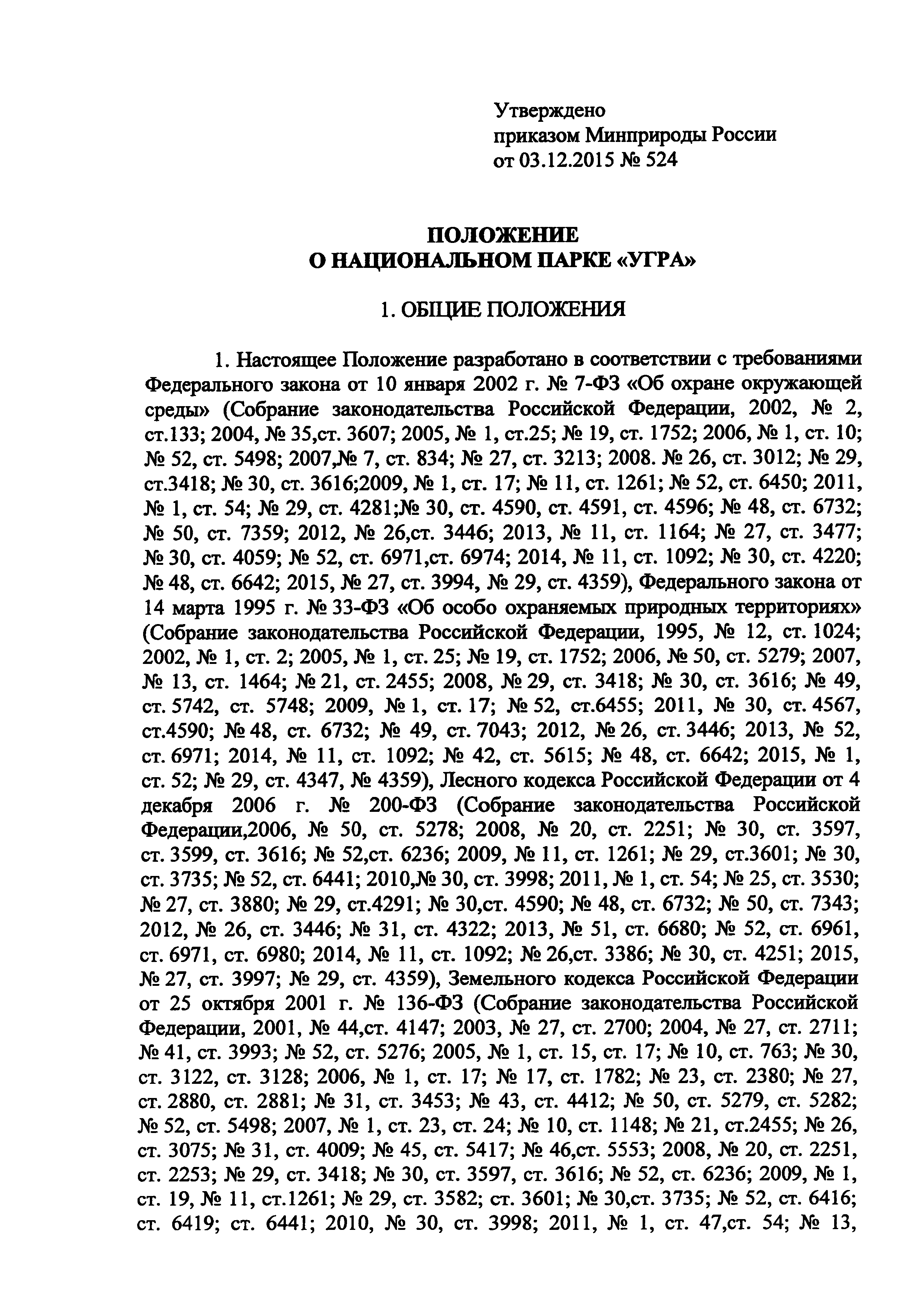| Утверждён: | 03.12.2015 Министерство природных ресурсов и экологии Российской Федерации (524) |
