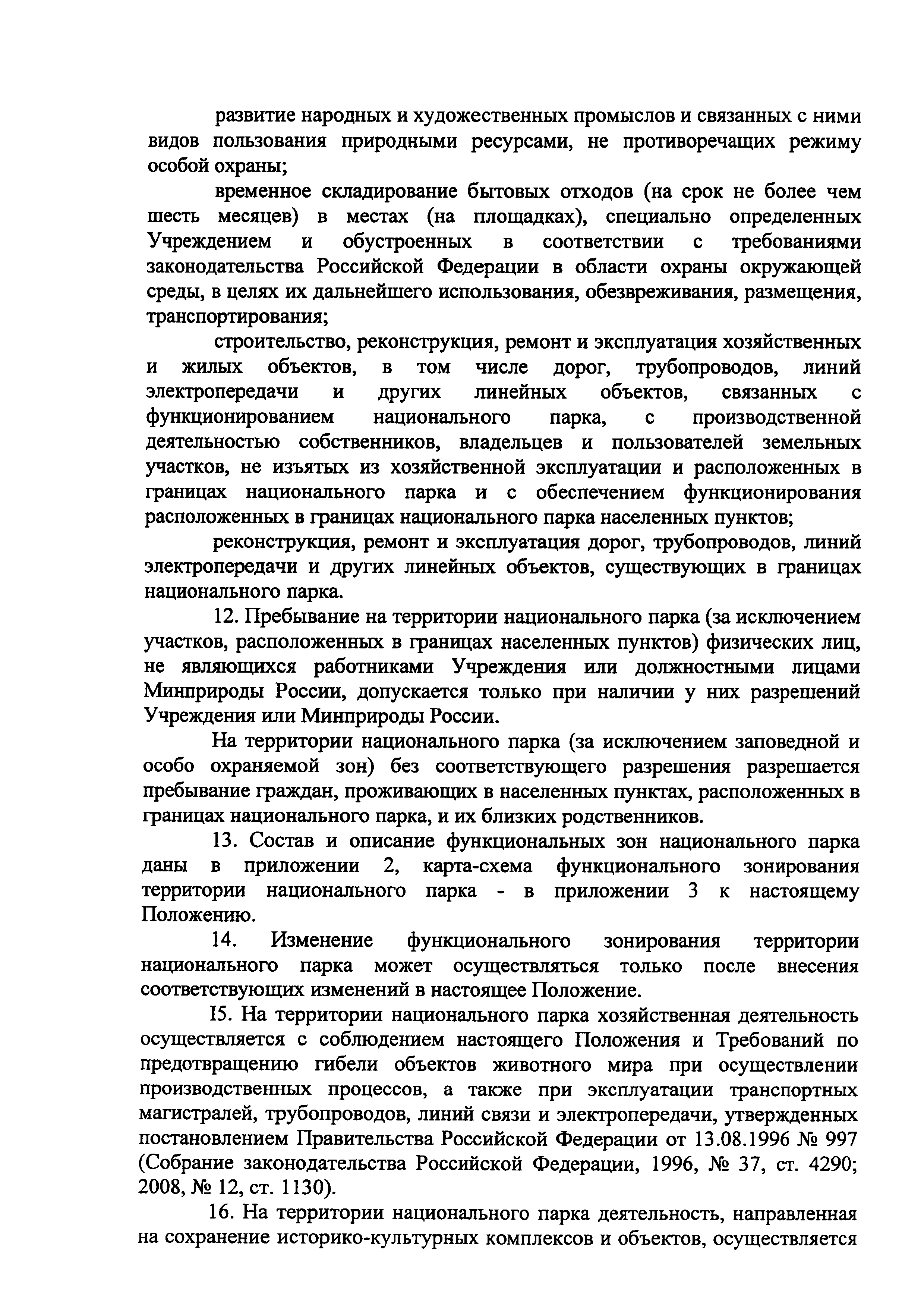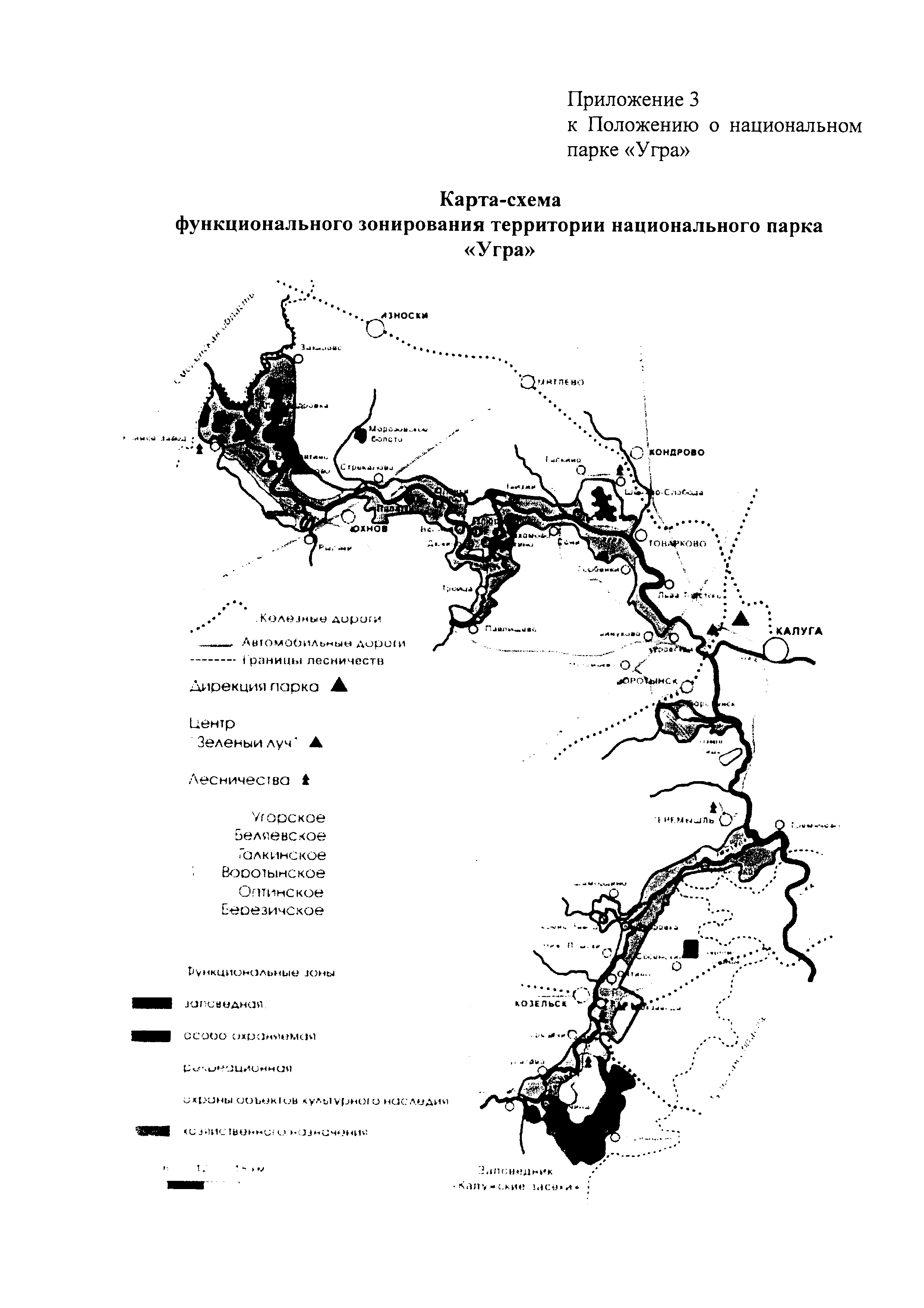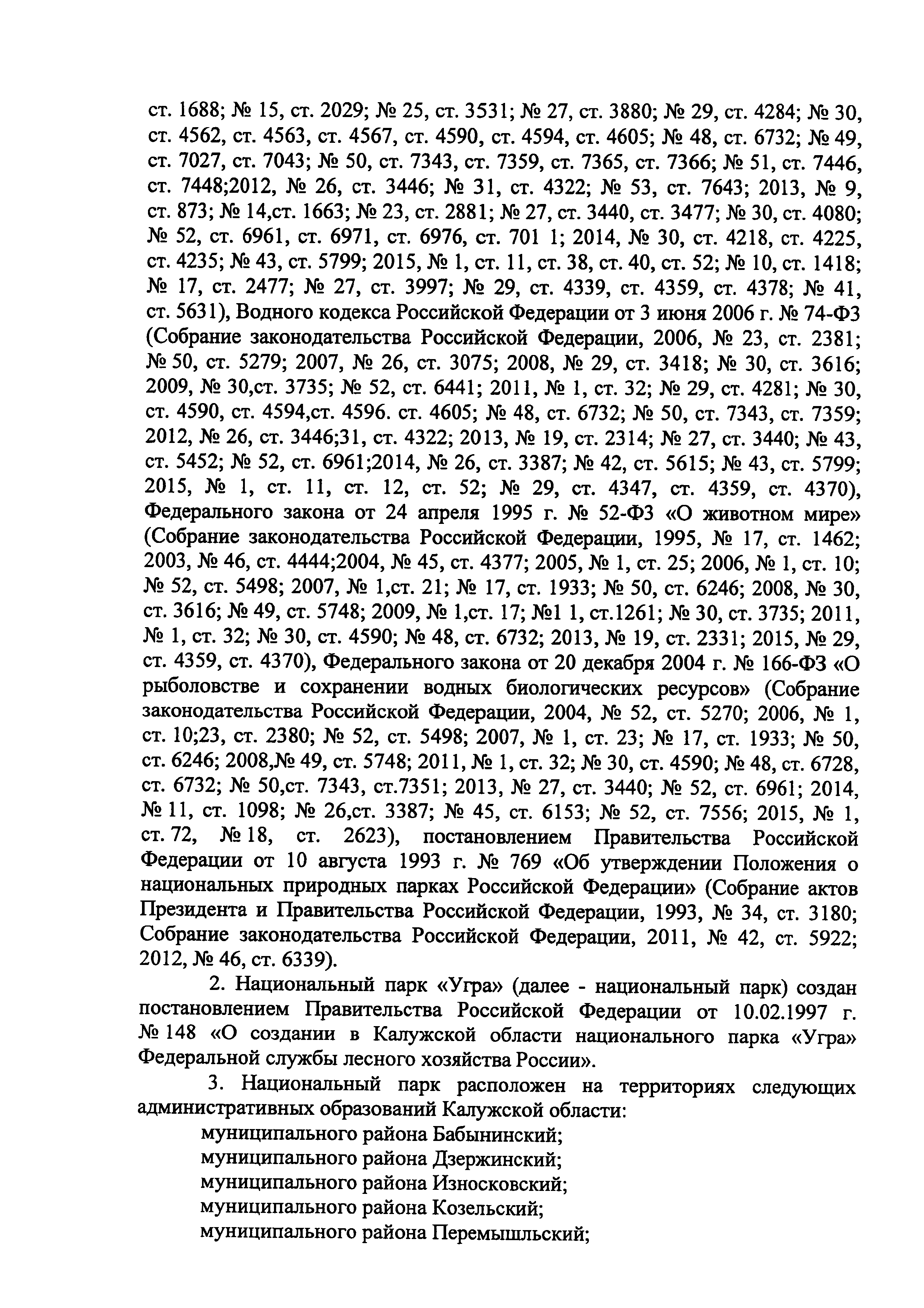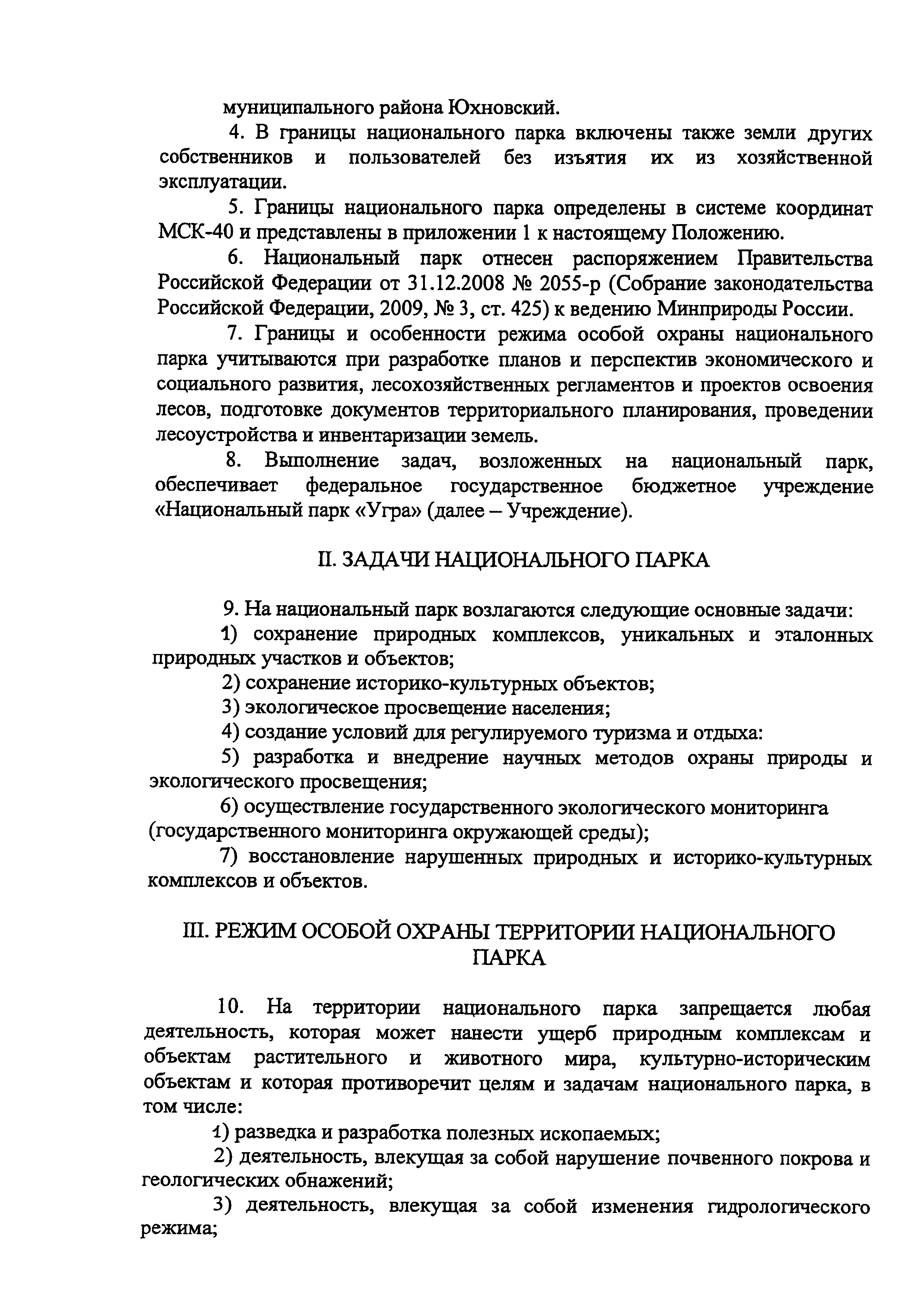 | Оглавление: | 1. Общие положения II. Задачи национального парка III. Режим особой охраны территории национального парка IV. Государственный надзор в области охраны и использования территории национального парка Приложение 1. Координаты поворотных точек границы национального парка "Угра" Приложение 2. Состав и описание границ функциональных зон национального парка "Угра" 1. Заповедная зона 2. Особо охраняемая зона 3. Рекреационная зона 4. Зона охраны объектов культурного наследия (памятников истории и культуры) народов Российской Федерации 5. Зона хозяйственного назначения Приложение 3. Карта-схема функционального зонирования территории национального парка "Угра" |