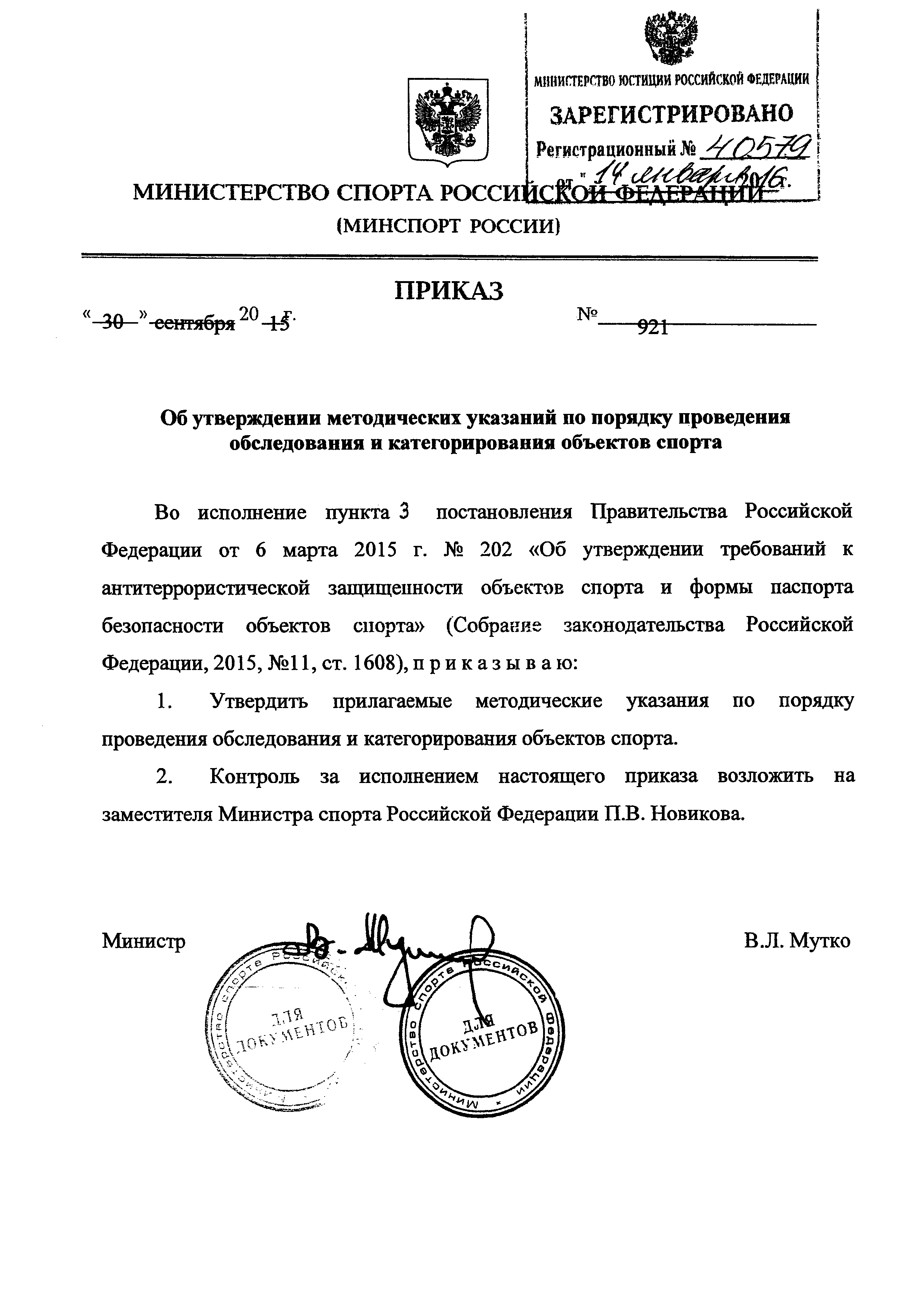 | Утверждён: | 30.09.2015 Министерство спорта РФ (921)