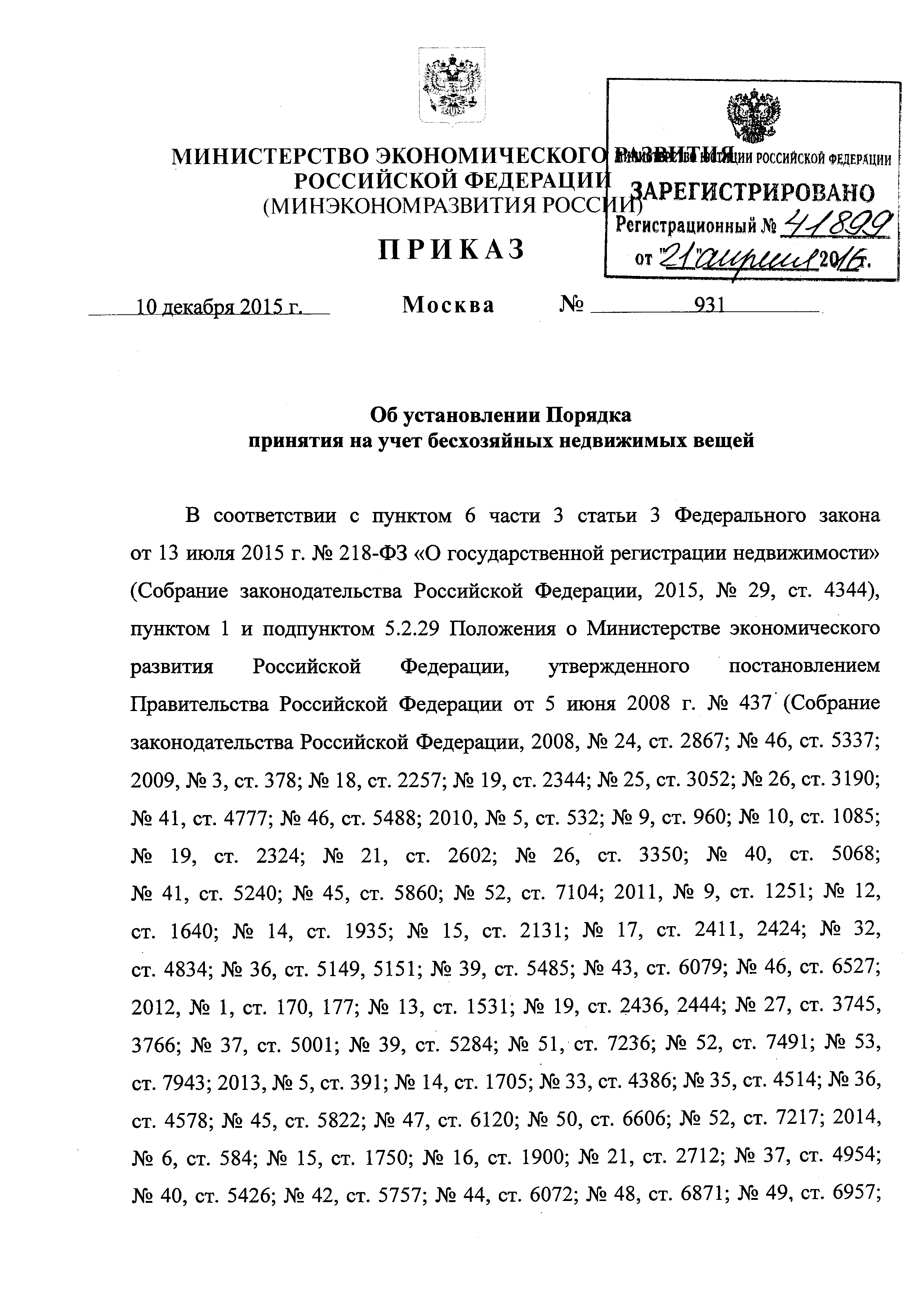 | Название рус.: | Порядок принятия на учет бесхозяйных недвижимых вещей |