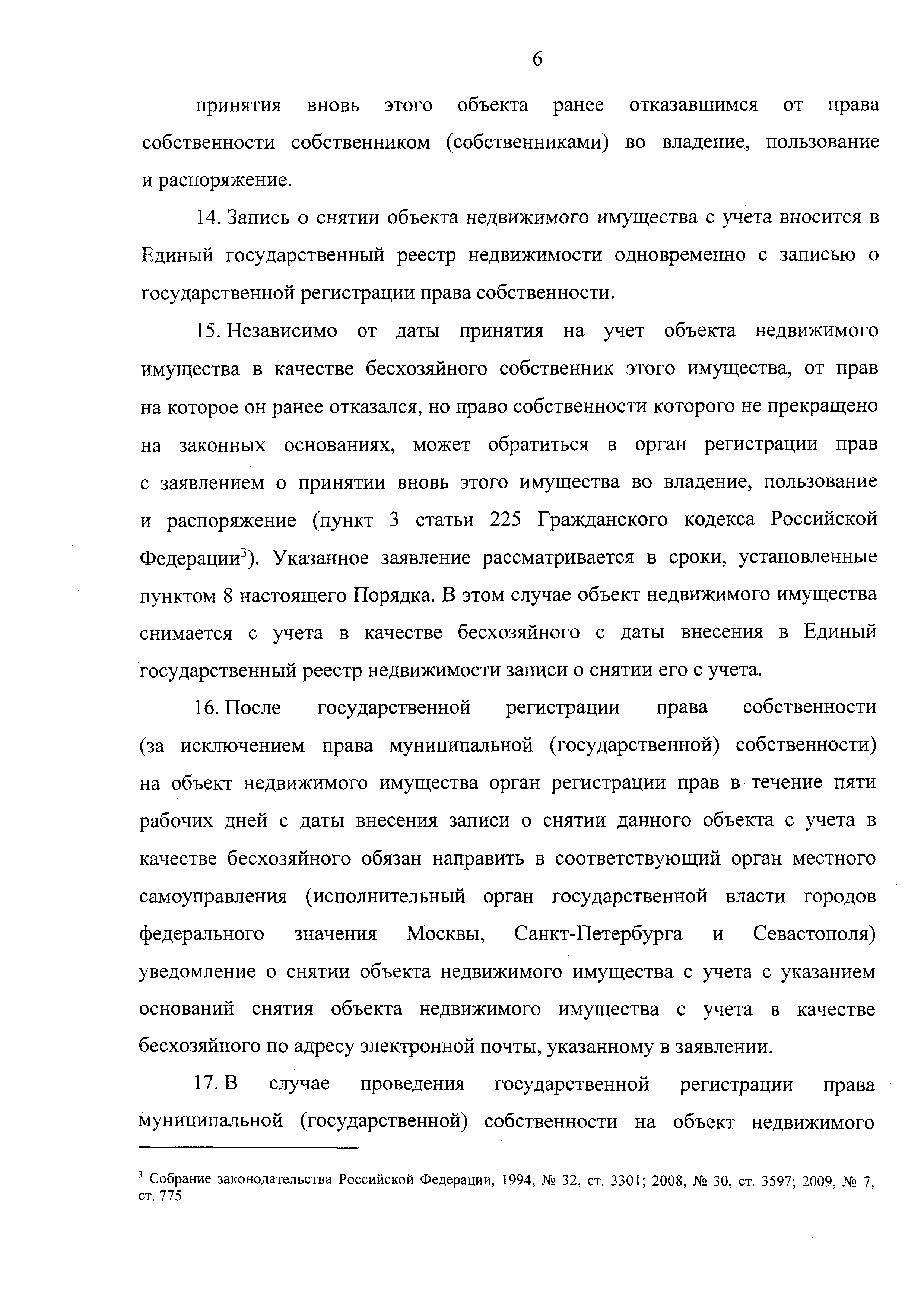 | Область применения: | Порядок устанавливает единый для Российской Федерации порядок принятия на учет бесхозяйных недвижимых вещей |