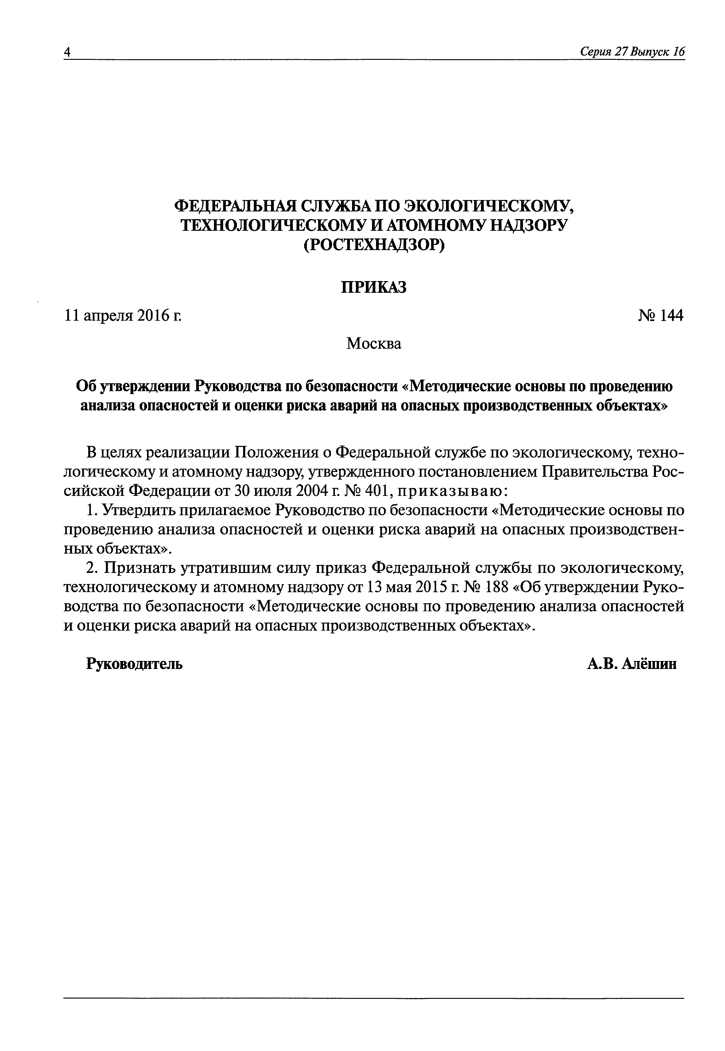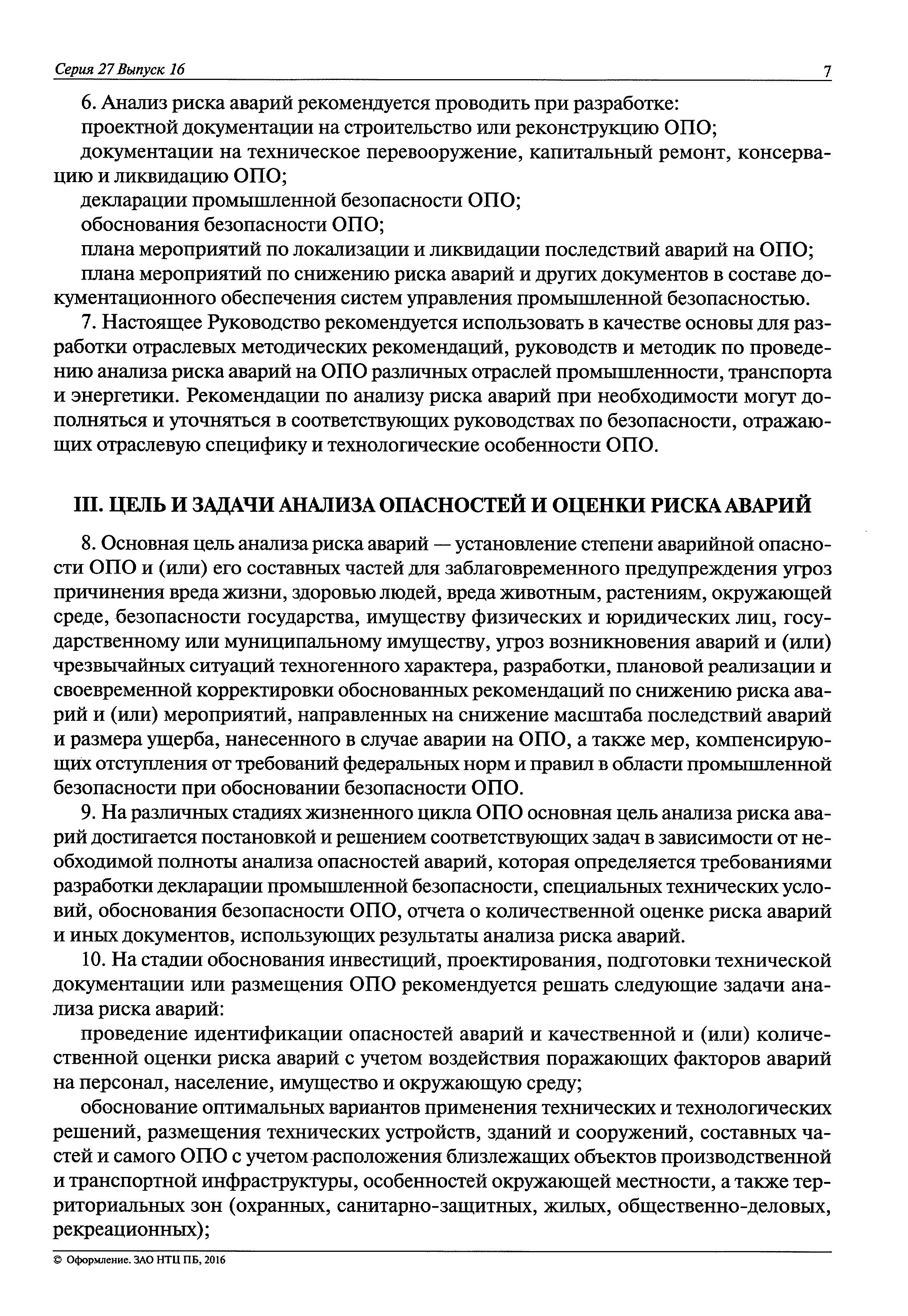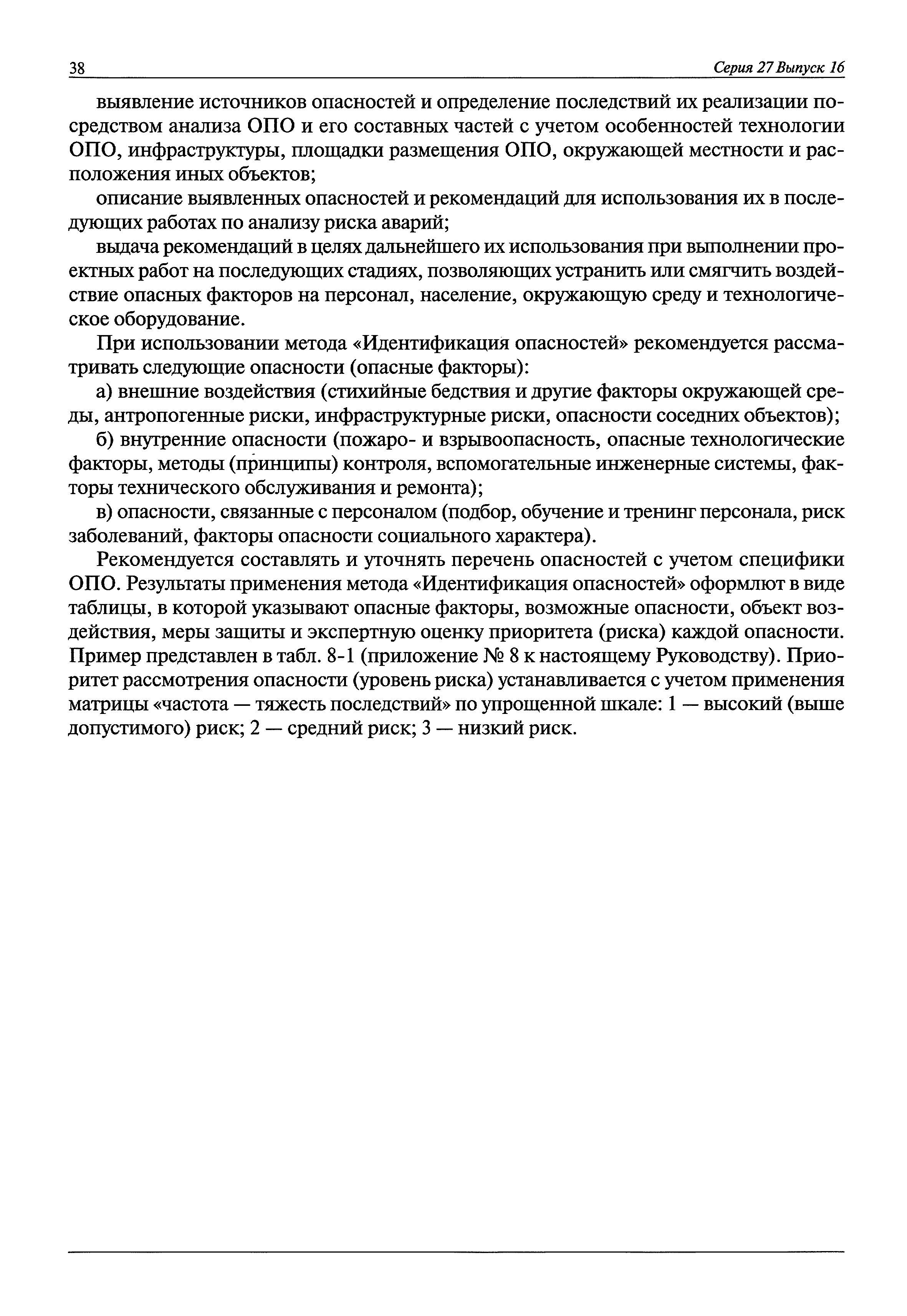 | Область применения: | Руководство содержит рекомендации по проведению анализа опасностей и оценки риска аварий для обеспечения требований промышленной безопасности при проектировании, строительстве, капитальном ремонте, реконструкции, техническом перевооружении, эксплуатации, консервации и ликвидации опасных производственных объектов и не является нормативным правовым актом. |