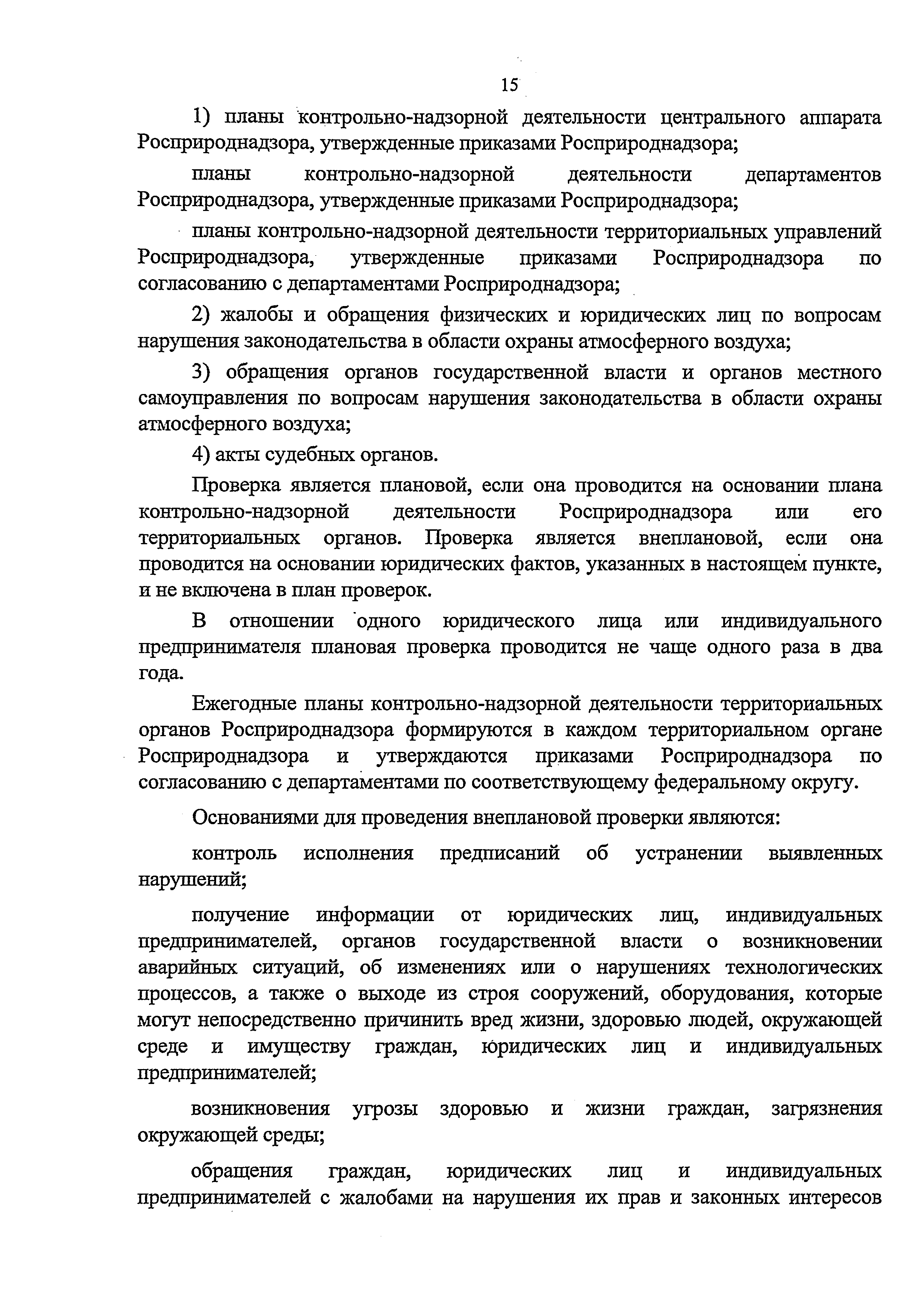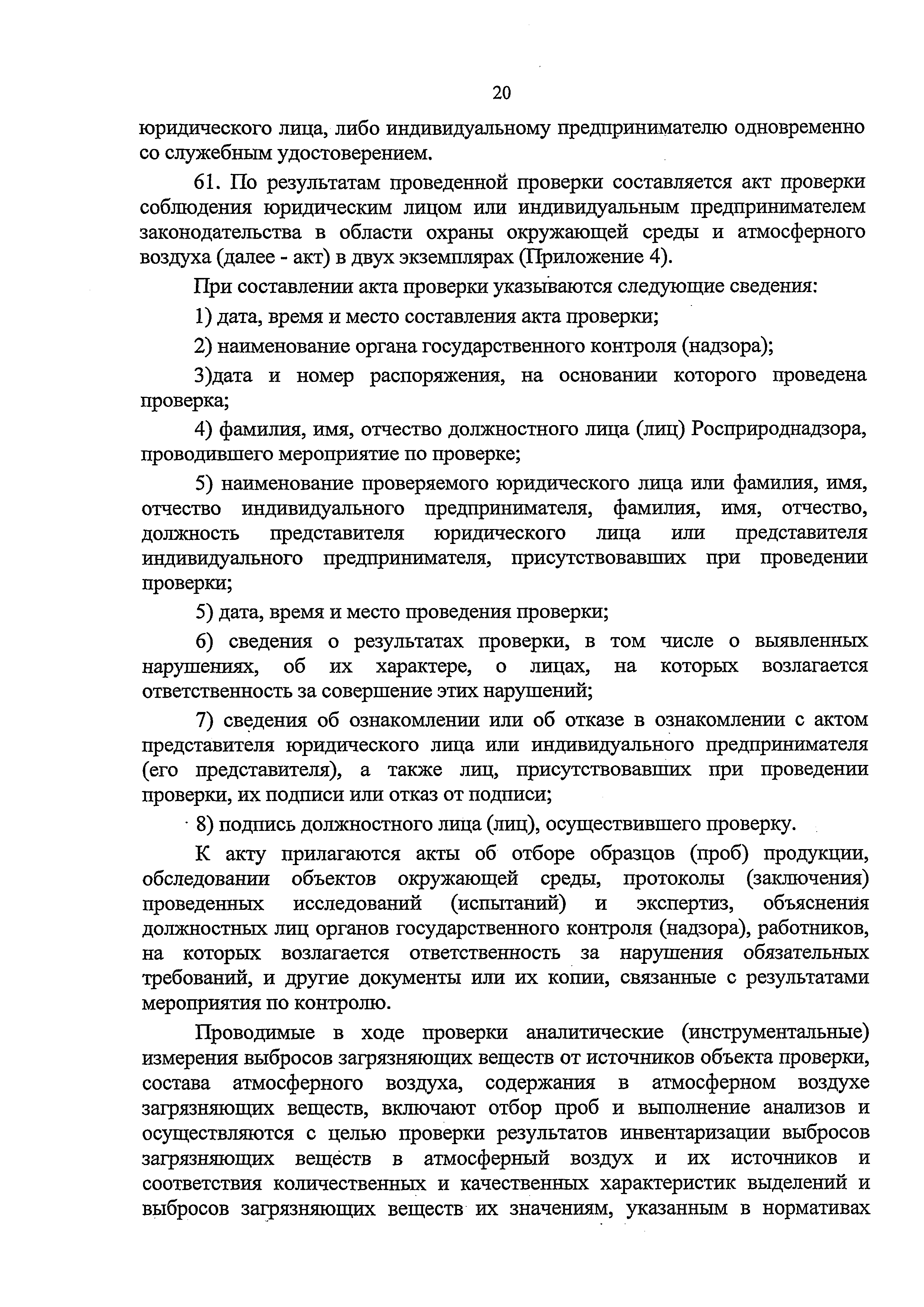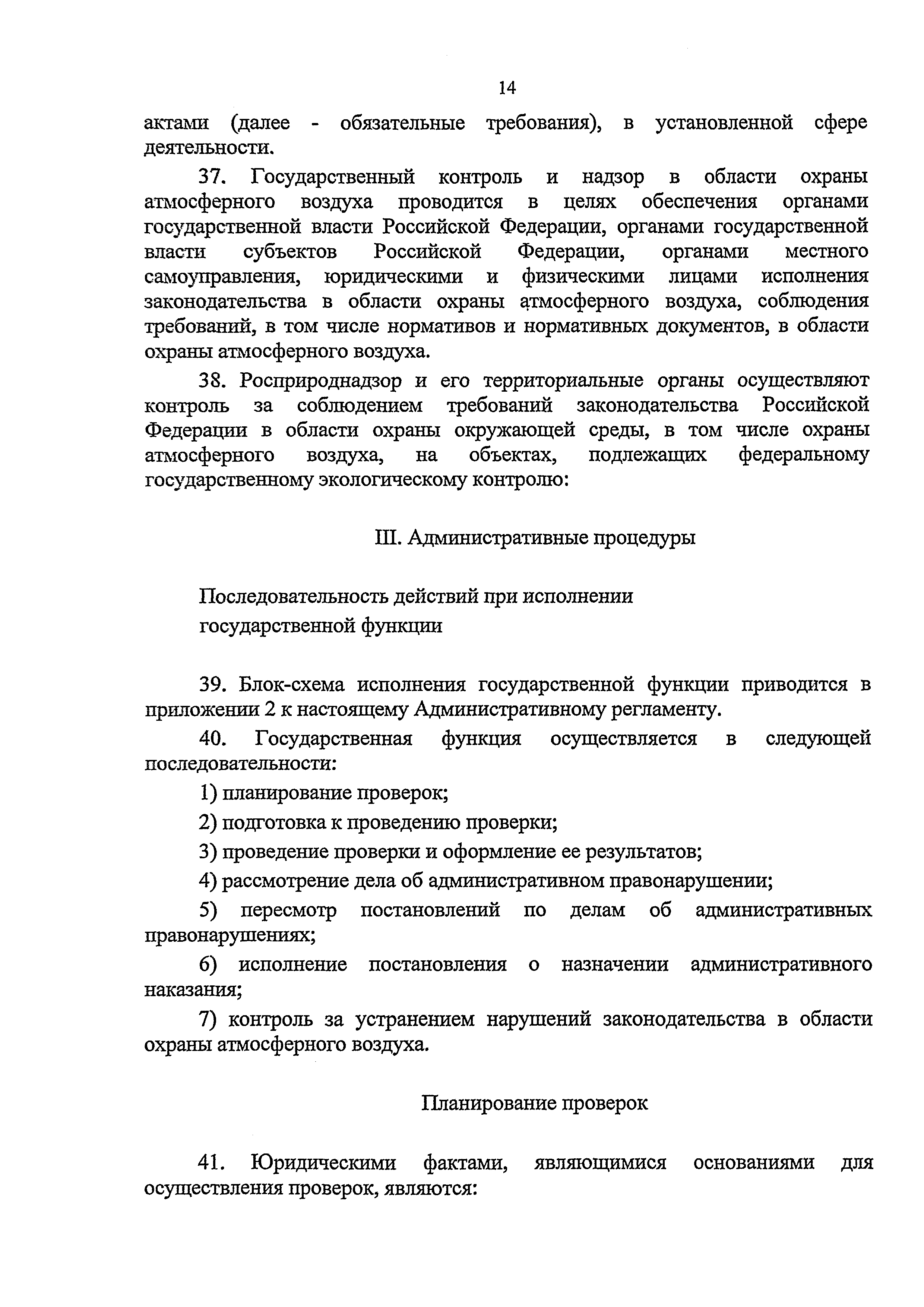| Область применения: | Административный регламент Федеральной службы по надзору в сфере природопользования по исполнению государственной функции по контролю и надзору за соблюдением в пределах своей компетенции требований законодательства Российской Федерации в области охраны атмосферного воздуха разработан в целях повышения качества и эффективности проверок, проводимых государственными инспекторами по охране природы, защиты прав юридических лиц и индивидуальных предпринимателей при проведении государственного контроля и надзора за соблюдением требований законодательства Российской Федерации в области охраны атмосферного воздуха, и определяет сроки и последовательность действий (административных процедур) при осуществлении полномочий по государственному контролю за соблюдением требований законодательства Российской Федерации в области охраны атмосферного воздуха |