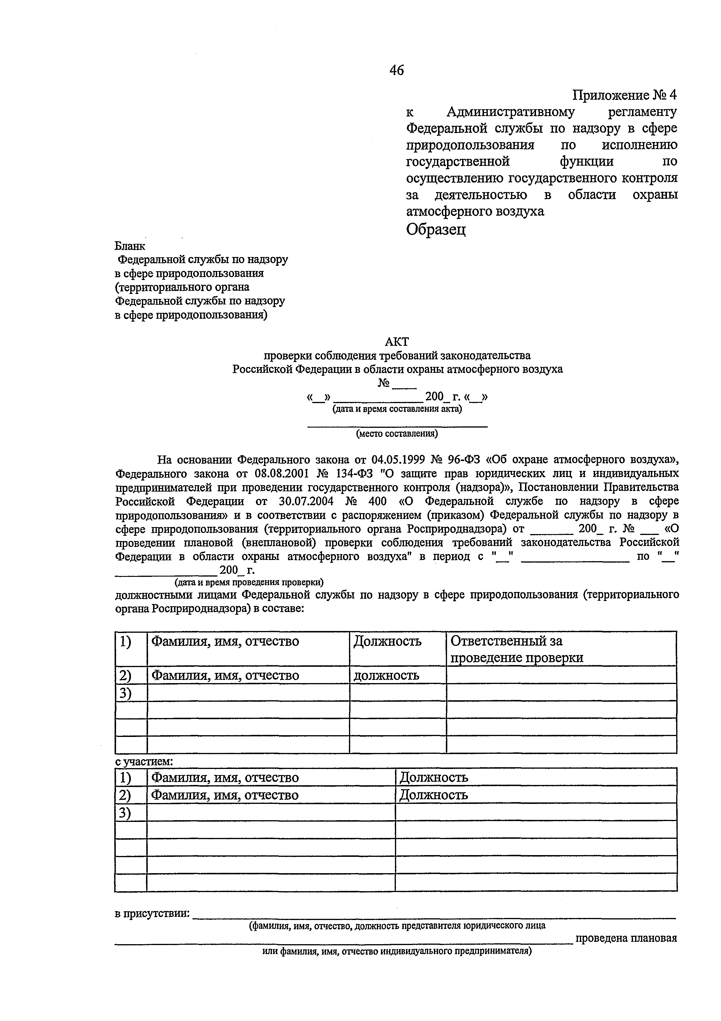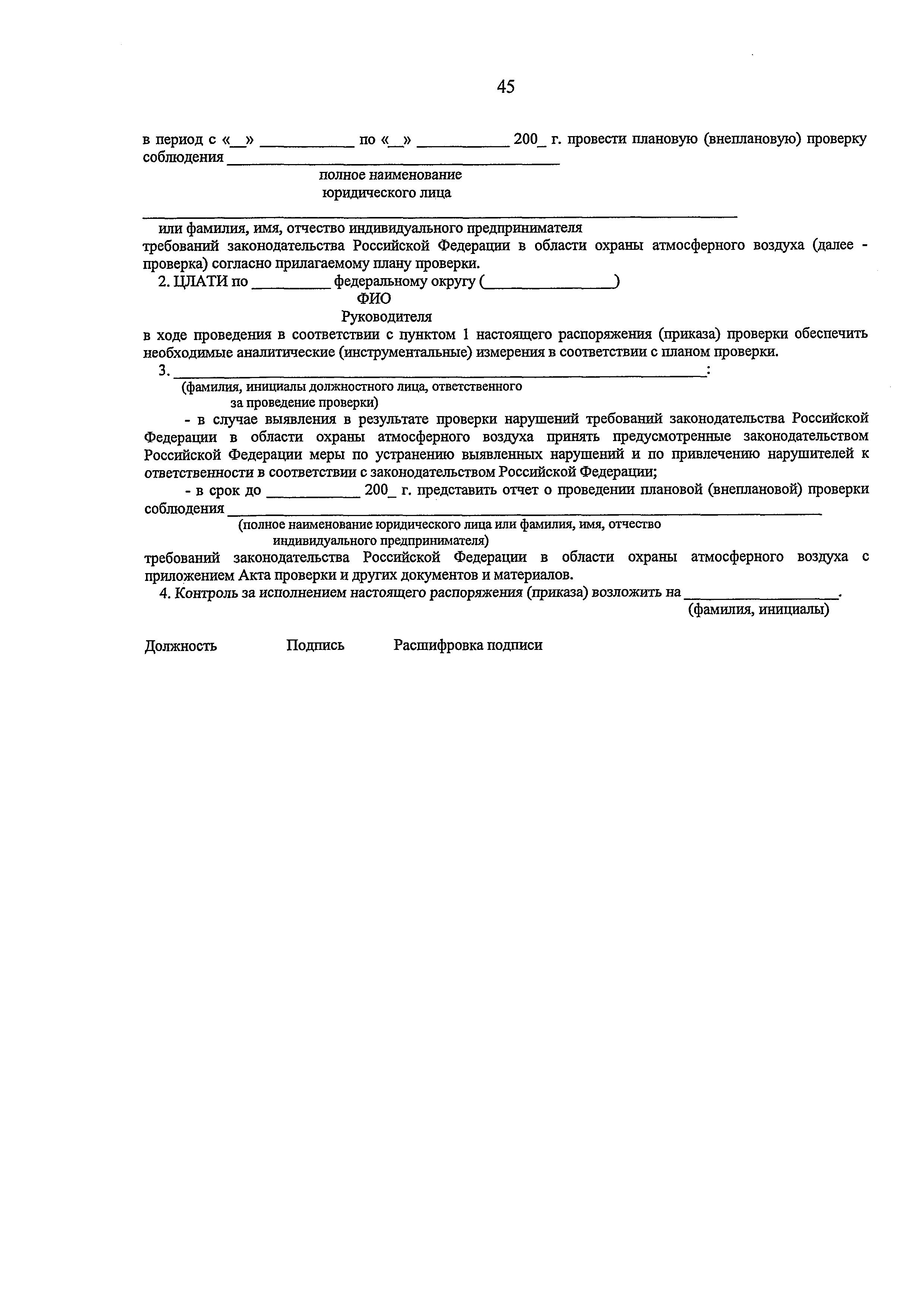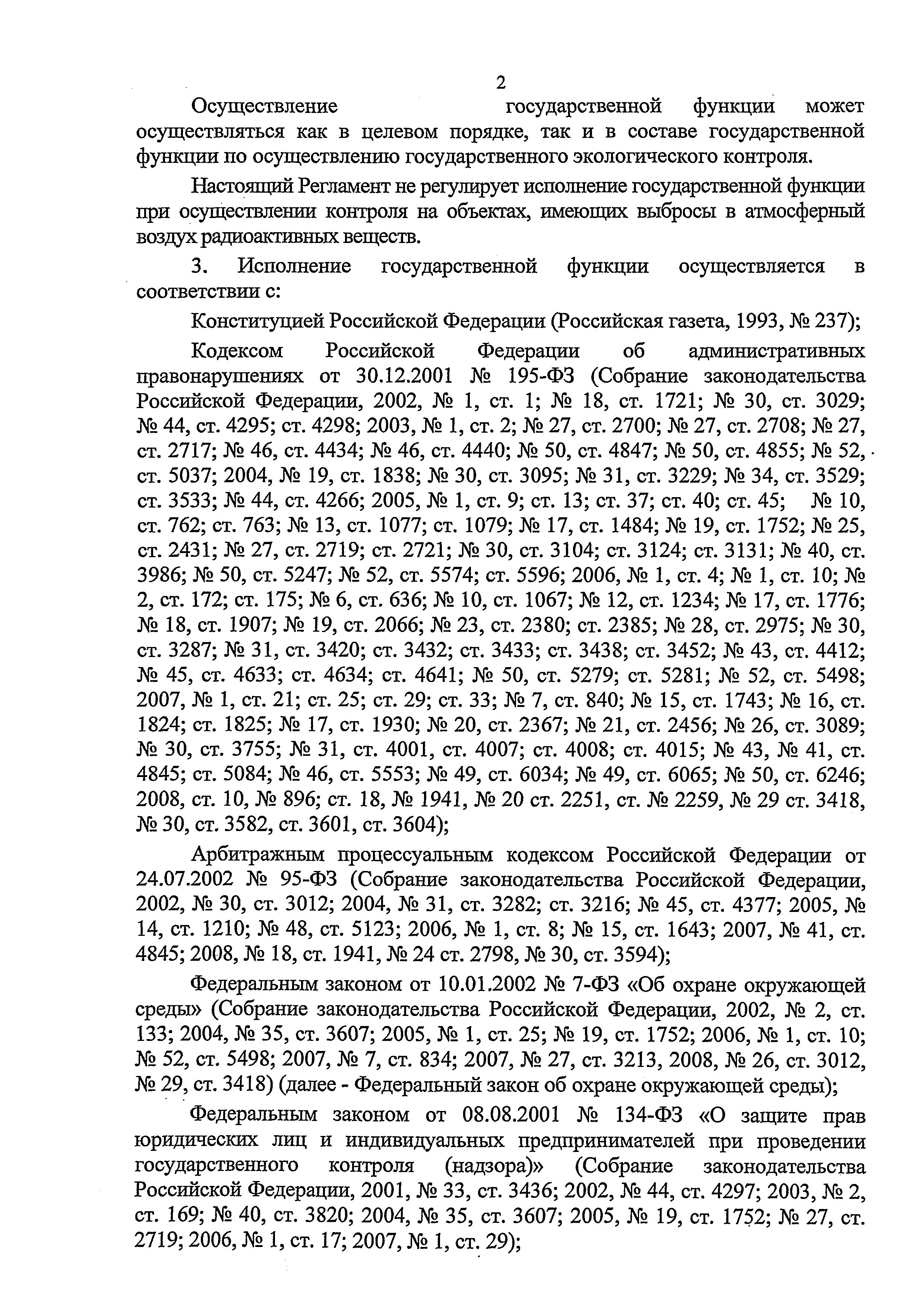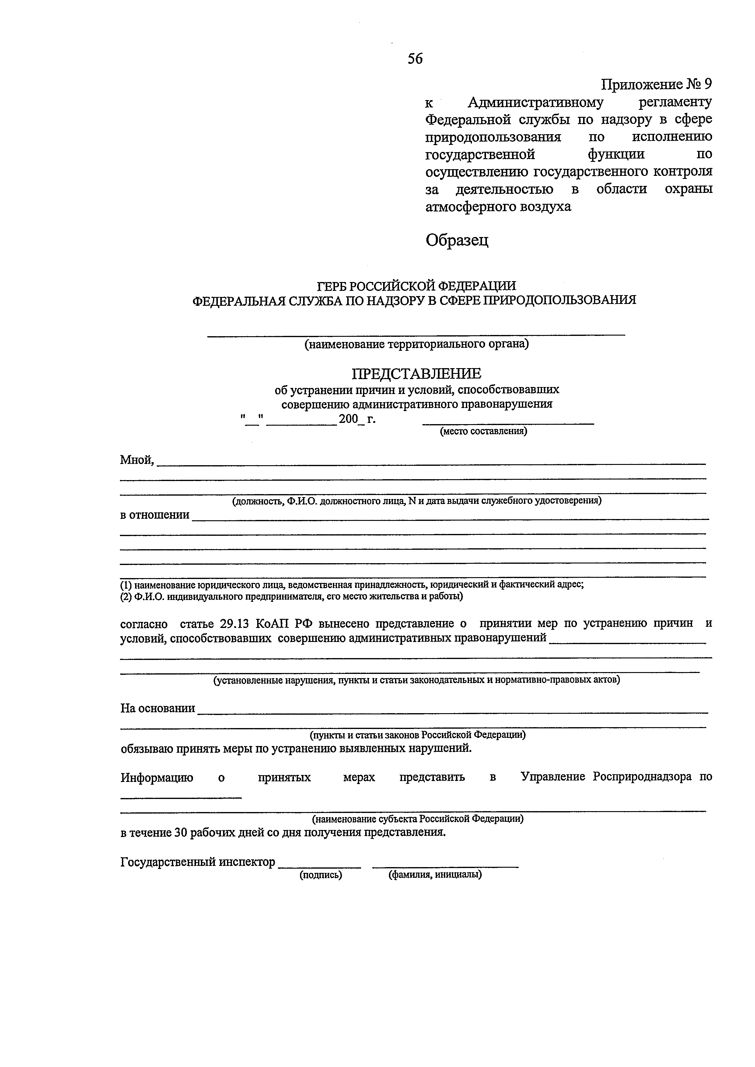 | Область применения: | Административный регламент Федеральной службы по надзору в сфере природопользования по исполнению государственной функции по контролю и надзору за соблюдением в пределах своей компетенции требований законодательства Российской Федерации в области охраны атмосферного воздуха разработан в целях повышения качества и эффективности проверок, проводимых государственными инспекторами по охране природы, защиты прав юридических лиц и индивидуальных предпринимателей при проведении государственного контроля и надзора за соблюдением требований законодательства Российской Федерации в области охраны атмосферного воздуха, и определяет сроки и последовательность действий (административных процедур) при осуществлении полномочий по государственному контролю за соблюдением требований законодательства Российской Федерации в области охраны атмосферного воздуха |