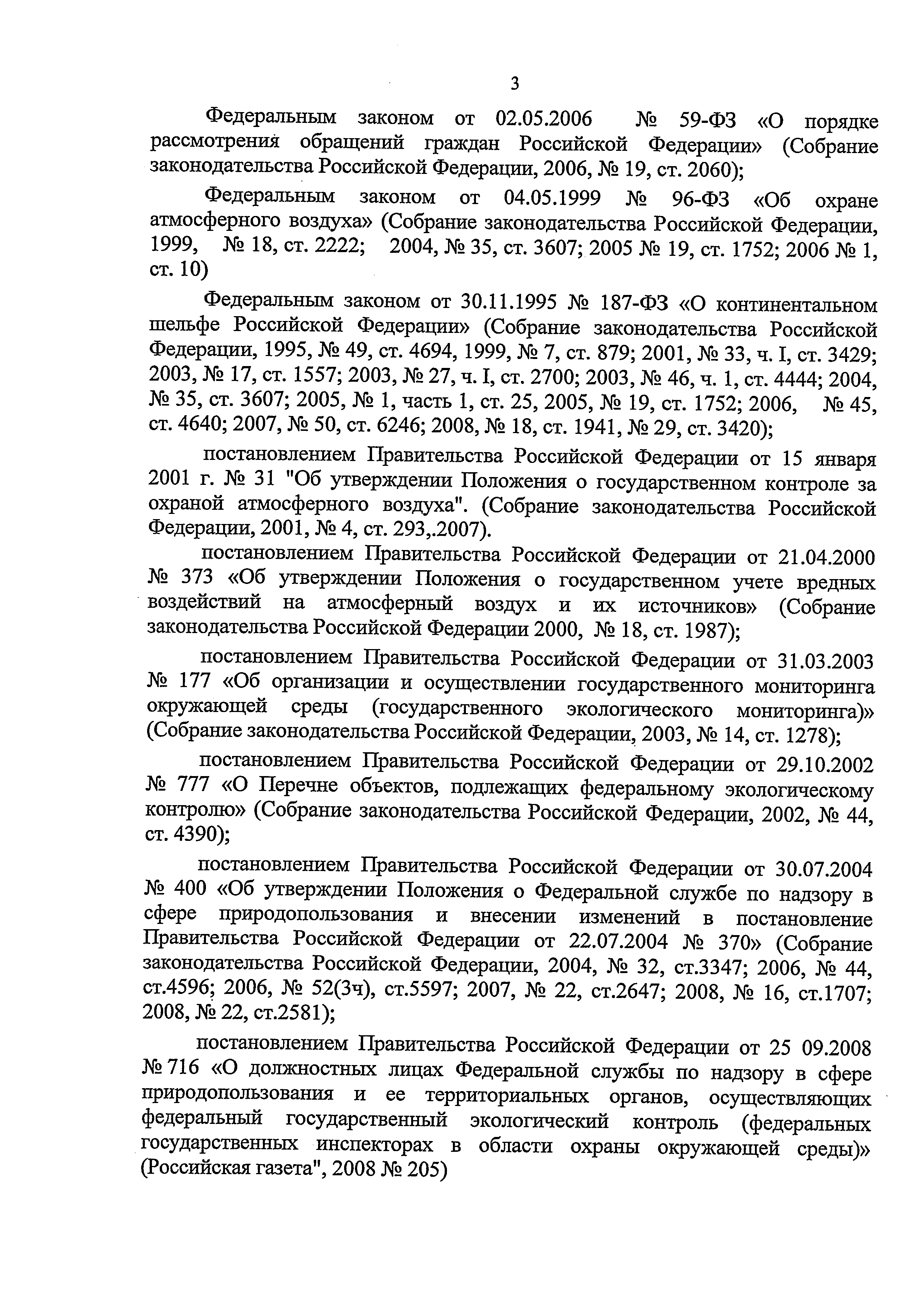 | Название рус.: | Административный регламент Федеральной службы по надзору в сфере природопользования по исполнению государственной функции по контролю и надзору за соблюдением в пределах своей компетенции требований законодательства Российской Федерации в области охраны атмосферного воздуха |