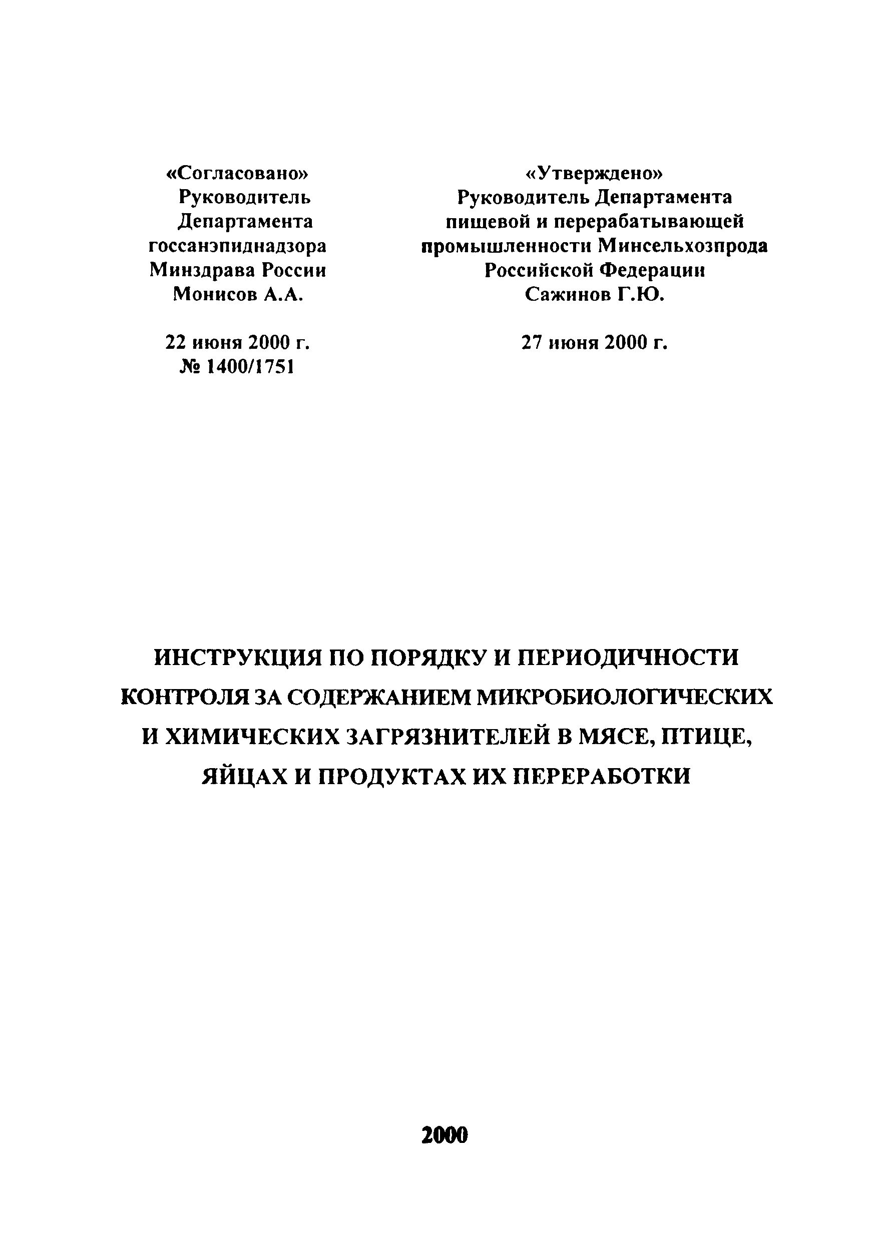 | | Утверждён: | 27.06.2000 Департамент пищевой и перерабатывающей промышленности Минсельхозпрода РФ