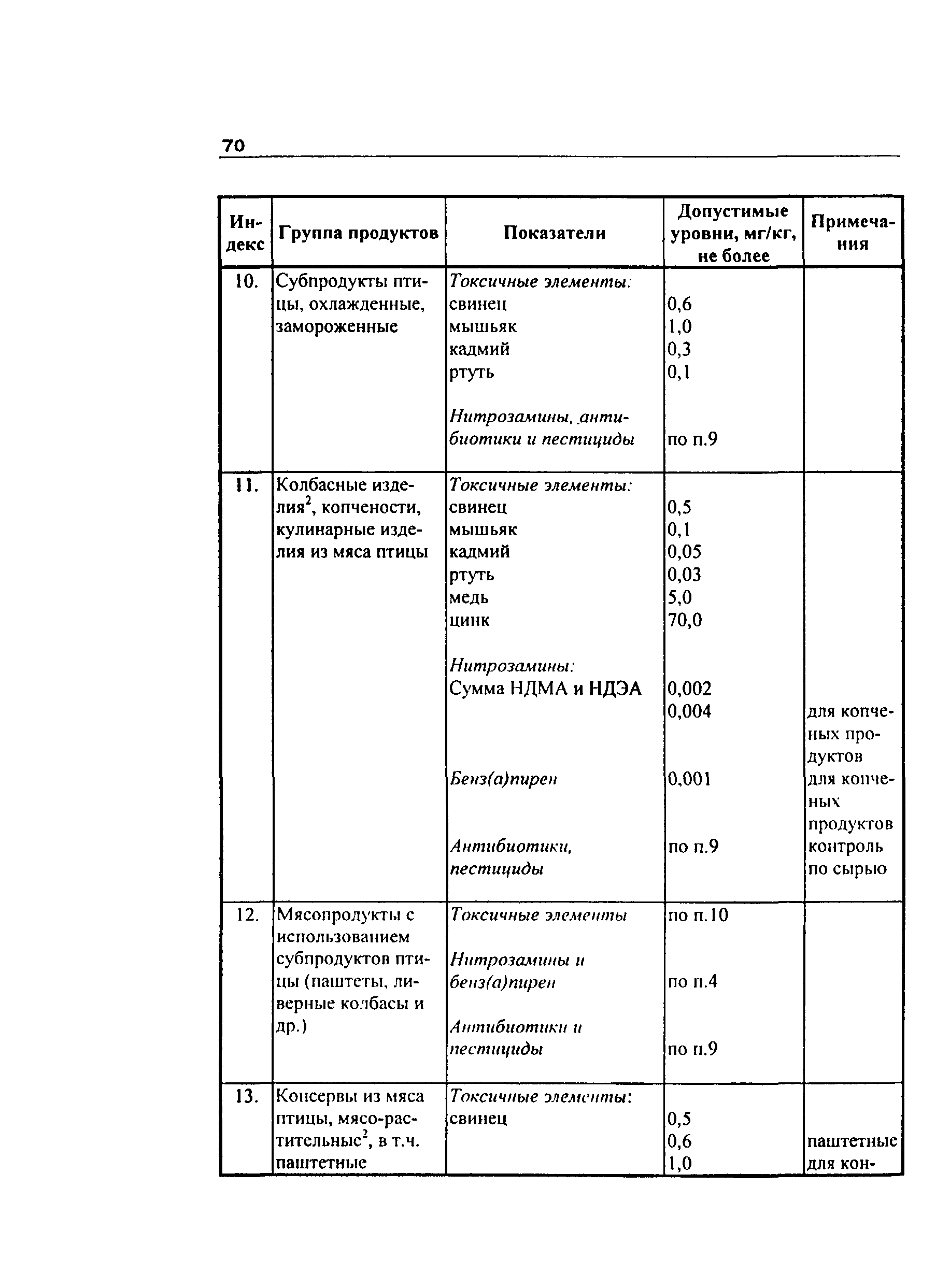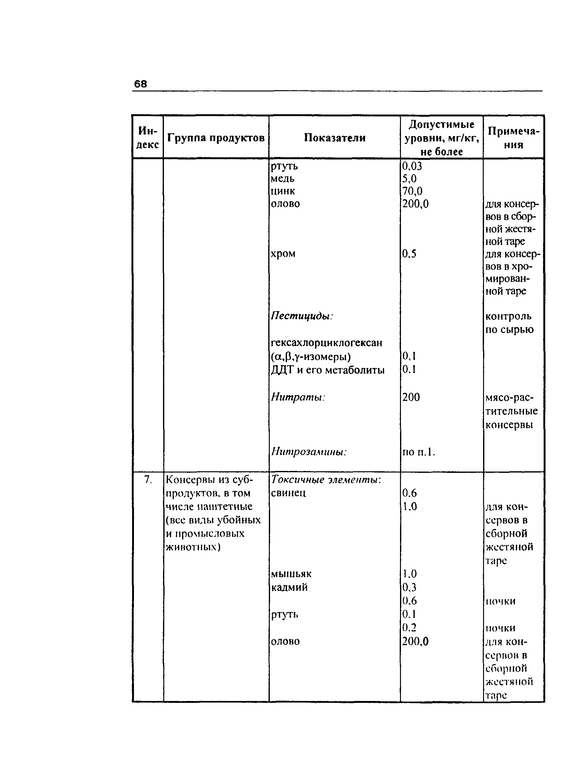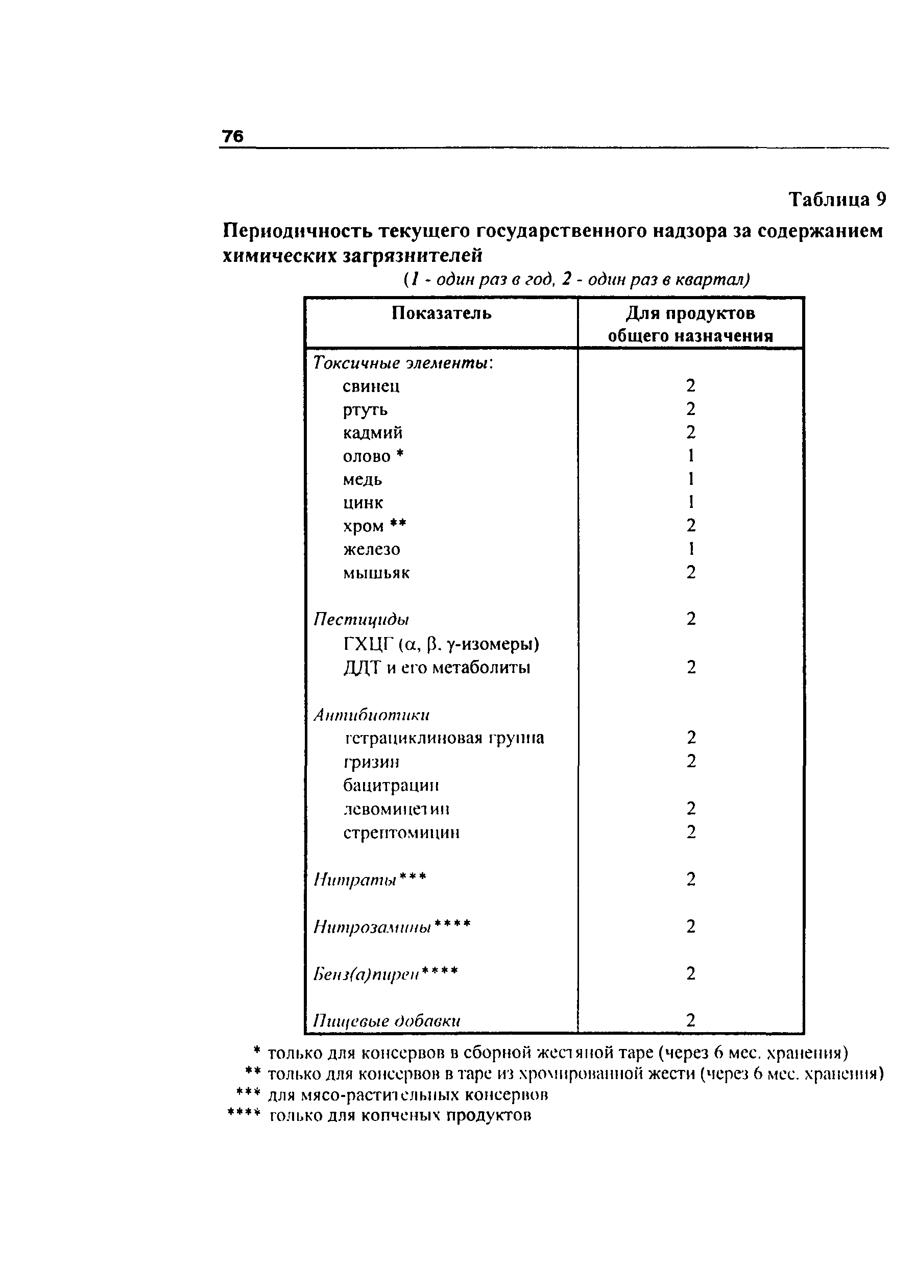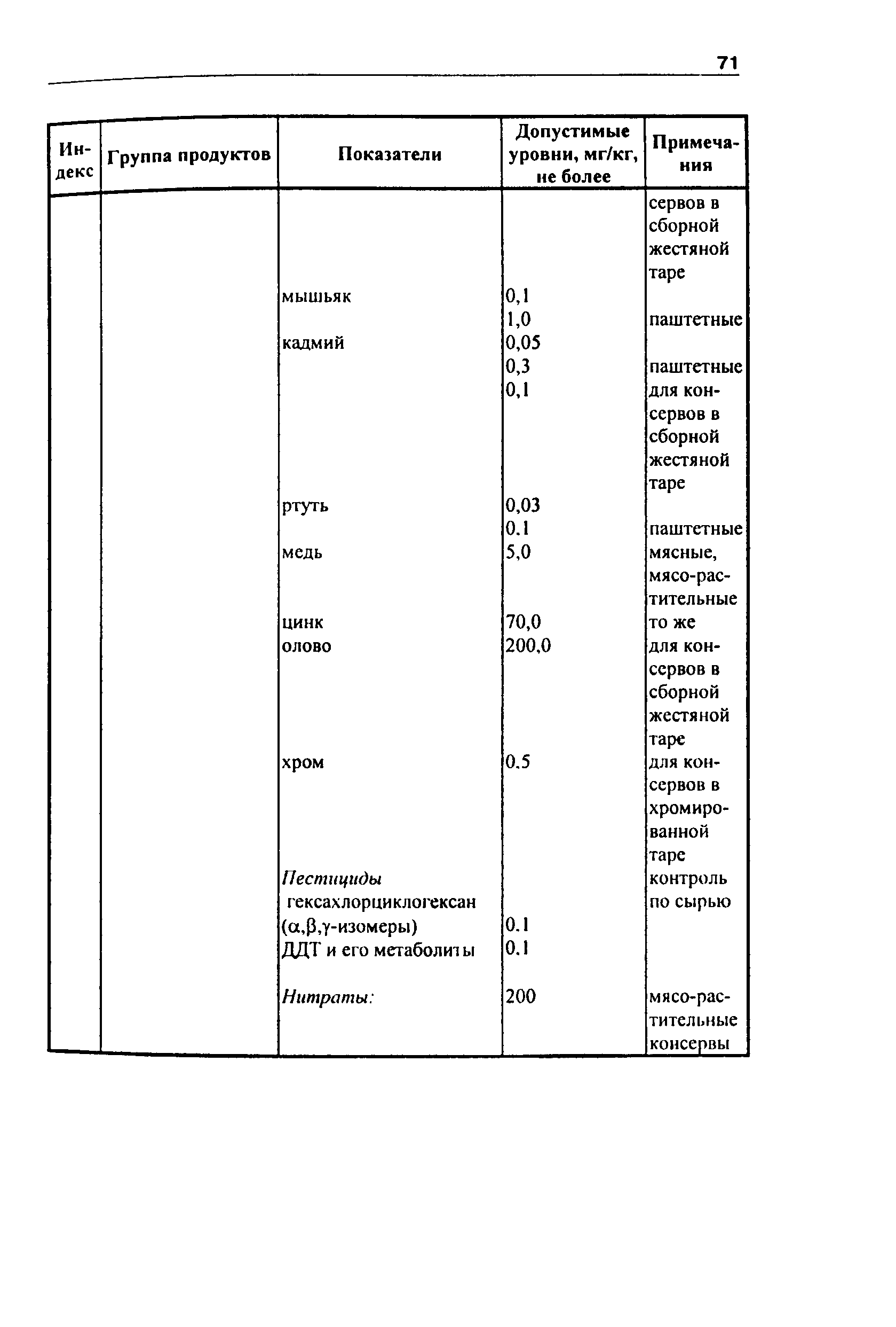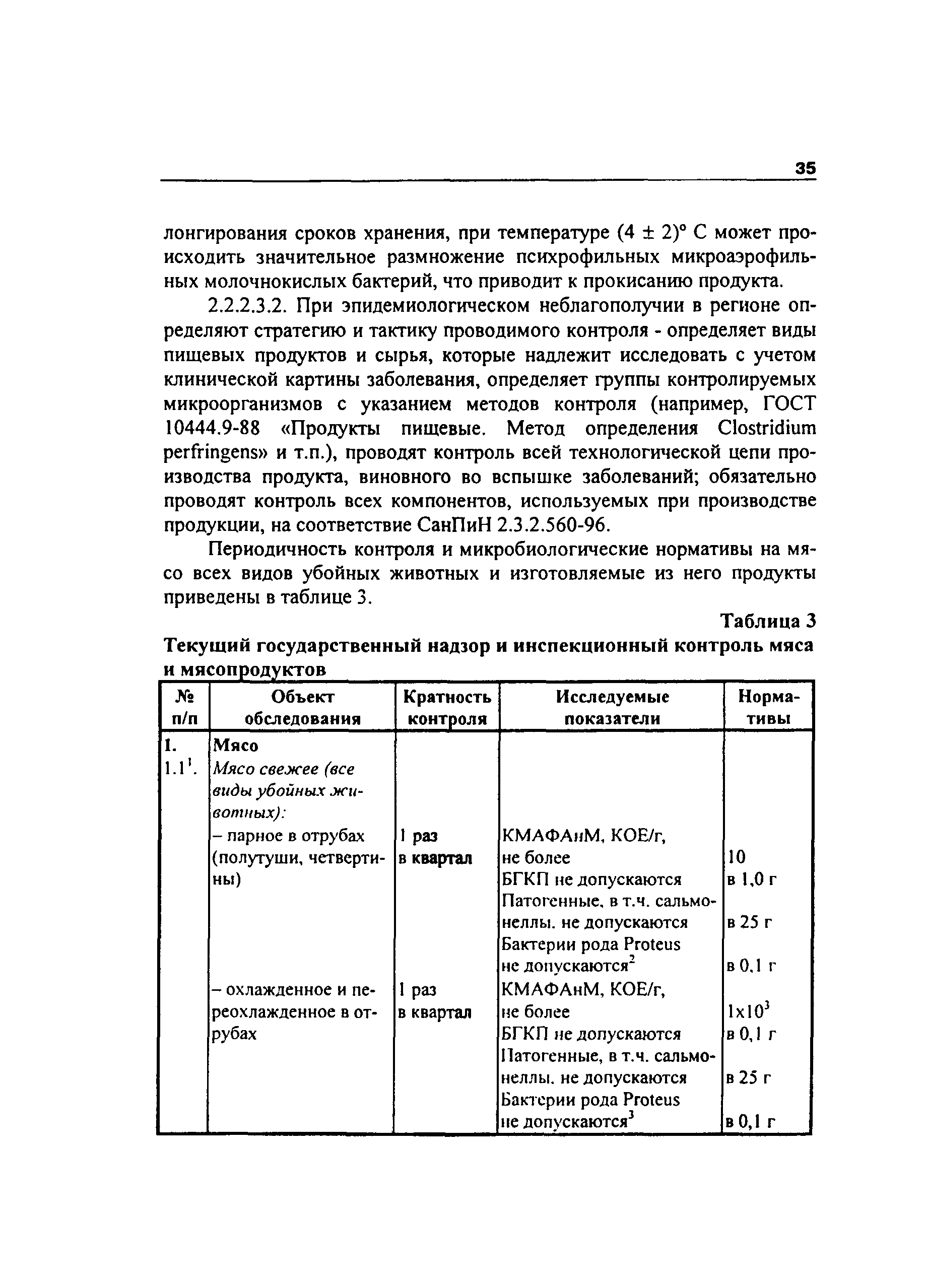 | | Нормативные ссылки: |  СанПиН 2.1.4.559-96 «Питьевая вода. Гигиенические требования к качеству воды централизованных систем питьевого водоснабжения. Контроль качества» ГОСТ 10444.12-88 «Продукты пищевые. Метод определения дрожжей и плесневых грибов»  ГОСТ 10444.15-94 «Продукты пищевые. Методы определения количества мезофильных аэробных и факультативно-анаэробных микроорганизмов» ГОСТ 10444.2-94 «Продукты пищевые. Методы выявления и определения количества Staphylococcus aureus» ГОСТ 10444.8-88 «Продукты пищевые. Метод определения Bacillus cereus»  ГОСТ 10444.9-88 «Продукты пищевые. Метод определения Сlostridium perfringens» ГОСТ 21237-75 «Мясо. Методы бактериологического анализа» ГОСТ 26668-85 «Продукты пищевые и вкусовые. Методы отбора проб для микробиологических анализов»  ГОСТ 26669-85 «Продукты пищевые и вкусовые. Подготовка проб для микробиологических анализов»  ГОСТ 26670-91 «Продукты пищевые. Методы культивирования микроорганизмов»  ГОСТ 26927-86 «Сырье и продукты пищевые. Методы определения ртути»  ГОСТ 26928-86 «Продукты пищевые. Метод определения железа»  ГОСТ 26930-86 «Сырье и продукты пищевые. Метод определения мышьяка»  ГОСТ 26931-86 «Сырье и продукты пищевые. Методы определения меди»  ГОСТ 26932-86 «Сырье и продукты пищевые. Методы определения свинца»  ГОСТ 26933-86 «Сырье и продукты пищевые. Методы определения кадмия»  ГОСТ 26934-86 «Сырье и продукты пищевые. Метод определения цинка» ГОСТ 26935-86 «Продукты пищевые консервированные. Метод определения олова»  ГОСТ 28560-90 «Продукты пищевые. Метод выявления бактерий родов Рrоtеus, Morganella, Providencia»  ГОСТ 28566-90 «Продукты пищевые. Метод выявления и определения количества энтерококков» ГОСТ 2858-82 «Порошок яичный. Технические условия» ГОСТ 29185-91 «Продукты пищевые. Методы выявления и определения количества сульфитредуцирующих клостридий»  ГОСТ 30178-96 «Сырье и продукты пищевые. Атомно-абсорбционный метод определения токсичных элементов» ГОСТ 4288-76 «Изделия кулинарные и полуфабрикаты из рубленого мяса. Правила приемки и методы испытаний» ГОСТ 7702.2.0-95 «Мясо птицы, субпродукты и полуфабрикаты птичьи. Методы отбора проб и подготовка к микробиологическим исследованиям» ГОСТ 7702.2.3-93 «Мясо птицы, субпродукты и полуфабрикаты птичьи. Метод выявления сальмонелл» ГОСТ 7702.2.4-93 «Мясо птицы, субпродукты и полуфабрикаты птичьи. Методы выявления и определения количества Stарhуlососсus аurеus» ГОСТ 7702.2.5-93 «Мясо птицы, субпродукты и полуфабрикаты птичьи. Методы выявления и определения количества листерелл» ГОСТ 7702.2.6-93 «Мясо птицы, субпродукты и полуфабрикаты птичьи. Методы выявления и определения количества сульфитредуцирующих клостридий» ГОСТ 8756.0-70 «Продукты пищевые консервированные. Отбор проб и подготовка их к испытанию» ГОСТ 9792-73 «Колбасные изделия и продукты из свинины, баранины, говядины и мяса других видов убойных животных и птиц. Правила приемки и методы отбора проб» ГОСТ 9958-81 «Колбасные изделия и продукты из мяса. Методы бактериологического анализа» ГОСТ Р 50396.2-92 «Мясо птицы, субпродукты и полуфабрикаты птичьи. Методы выявления и определения количества бактерий группы кишечных палочек (колиформных бактерий родов Еsсhеriсhiа, Сitrоbасtеr, Еntеrоbасtеr, Кlеbsiеllа, Sеrrаtiа)»  ГН 1.1.546-96 «Гигиенические нормативы содержания пестицидов в объектах окружающей среды (перечень)»  МУ 5178-90 «Методические указания по обнаружению и определению содержания общей ртути в пищевых продуктах методом 