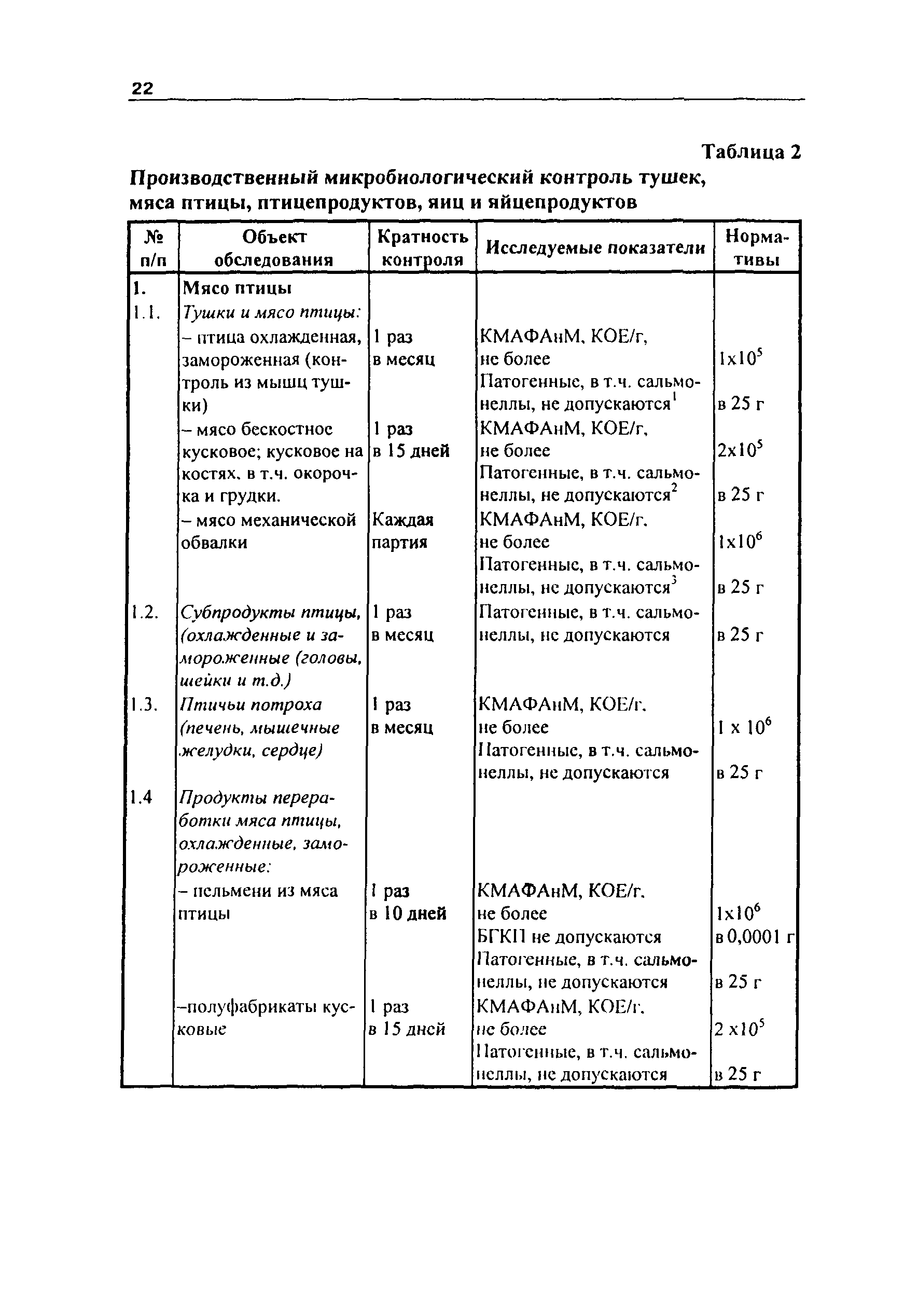 Скачать Инструкция по порядку и периодичности контроля за содержанием микробиологических и химических загрязнителей в мясе, птице, яйцах и продуктах их переработкиДата актуализации: 01.01.2021