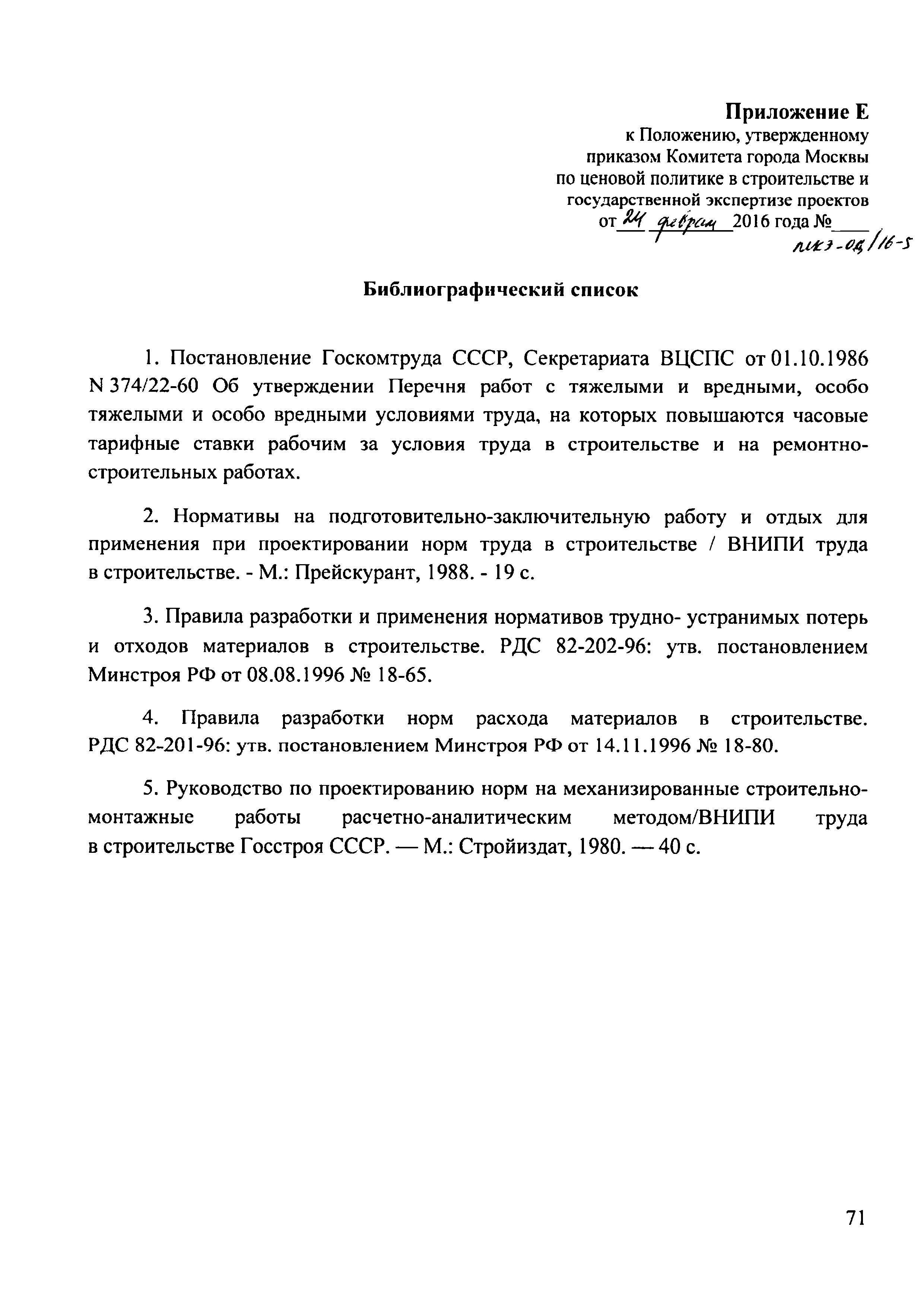 | Издан: | Официальный интернет-портал Комитета города Москвы по ценовой политике в строительстве и государственной экспертизе проектов (www.mke.mos.ru) (от 25.02.2016) |