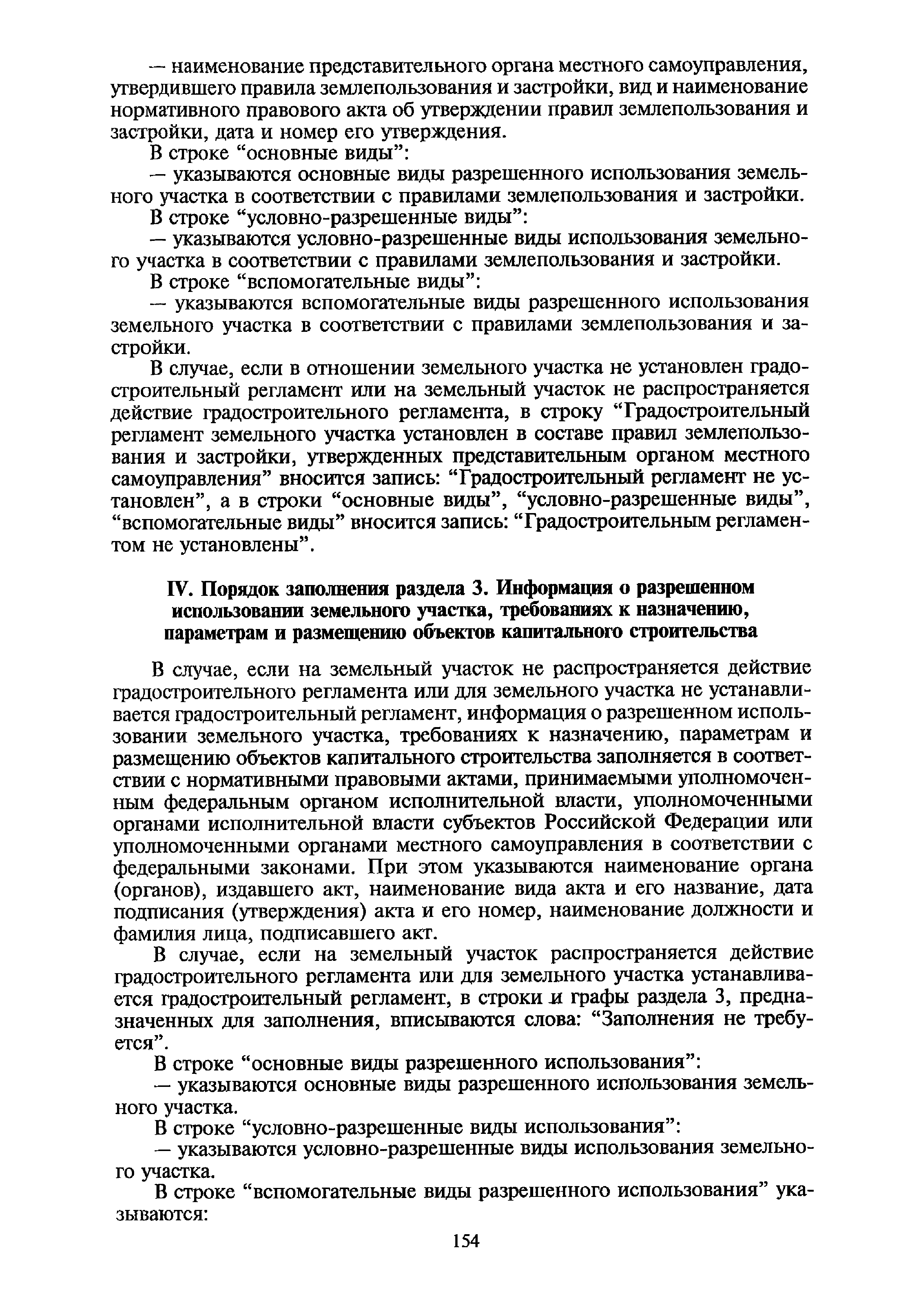 | Оглавление: | I. Порядок заполнения общих сведений градостроительного плана земельного участка II. Порядок заполнения раздела 1. Чертеж градостроительного плана земельного участка III. Порядок заполнения раздела 2. Информация о градостроительном регламенте земельного участка IV. Порядок заполнения раздела 3. Информация о разрешенном использовании земельного участка, требованиях к назначению, параметрам и размещению объектов капитального строительства V. Порядок заполнения раздела 4. Информация о расположенных в границах земельного участка объектах капитального строительства и объектах культурного наследия VI. Порядок заполнения раздела 5. Информация о технических условиях подключения объектов капитального строительства к сетям инженерно-технического обеспечения VII. Порядок заполнения раздела 6. Информация о возможности или невозможности разделения земельного участка |