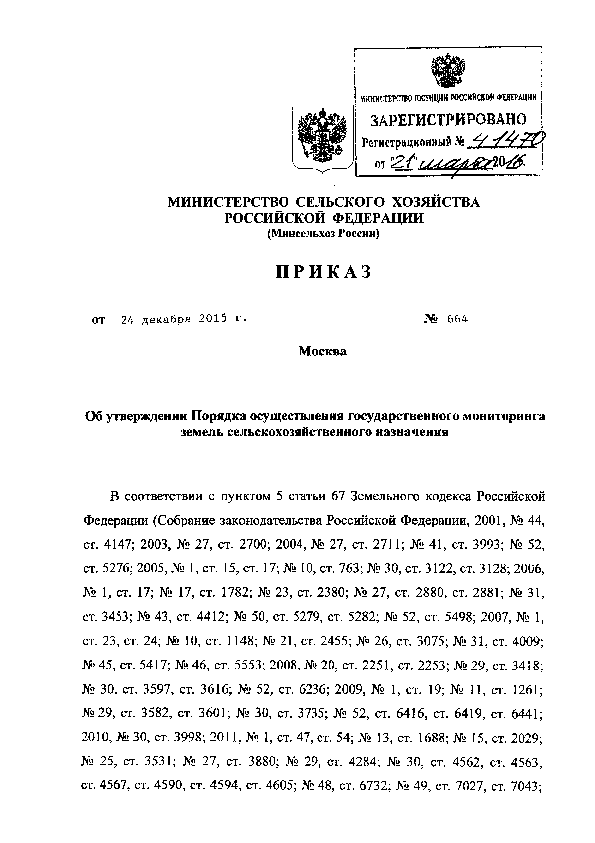 | Название рус.: | Порядок осуществления государственного мониторинга земель сельскохозяйственного назначения |