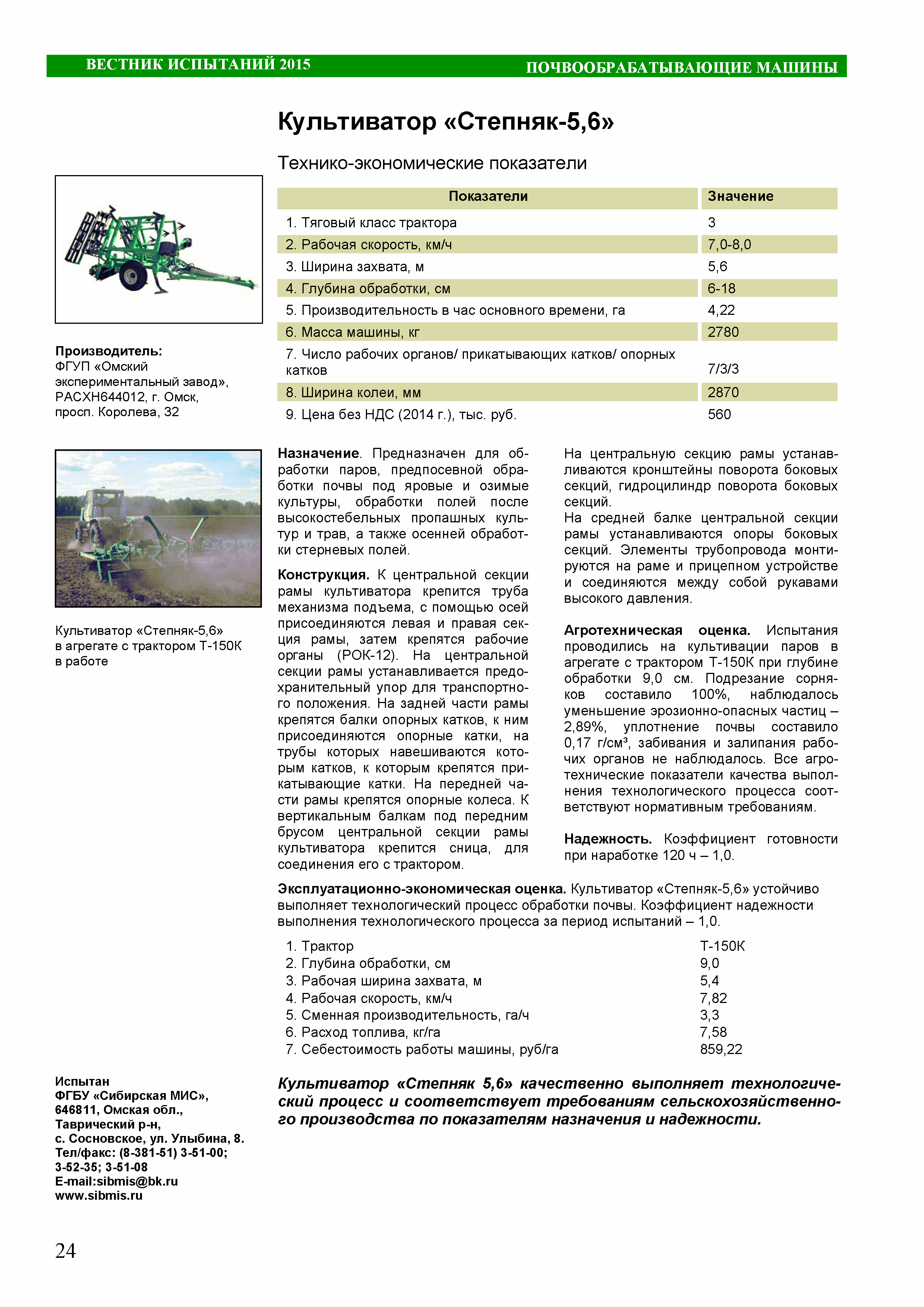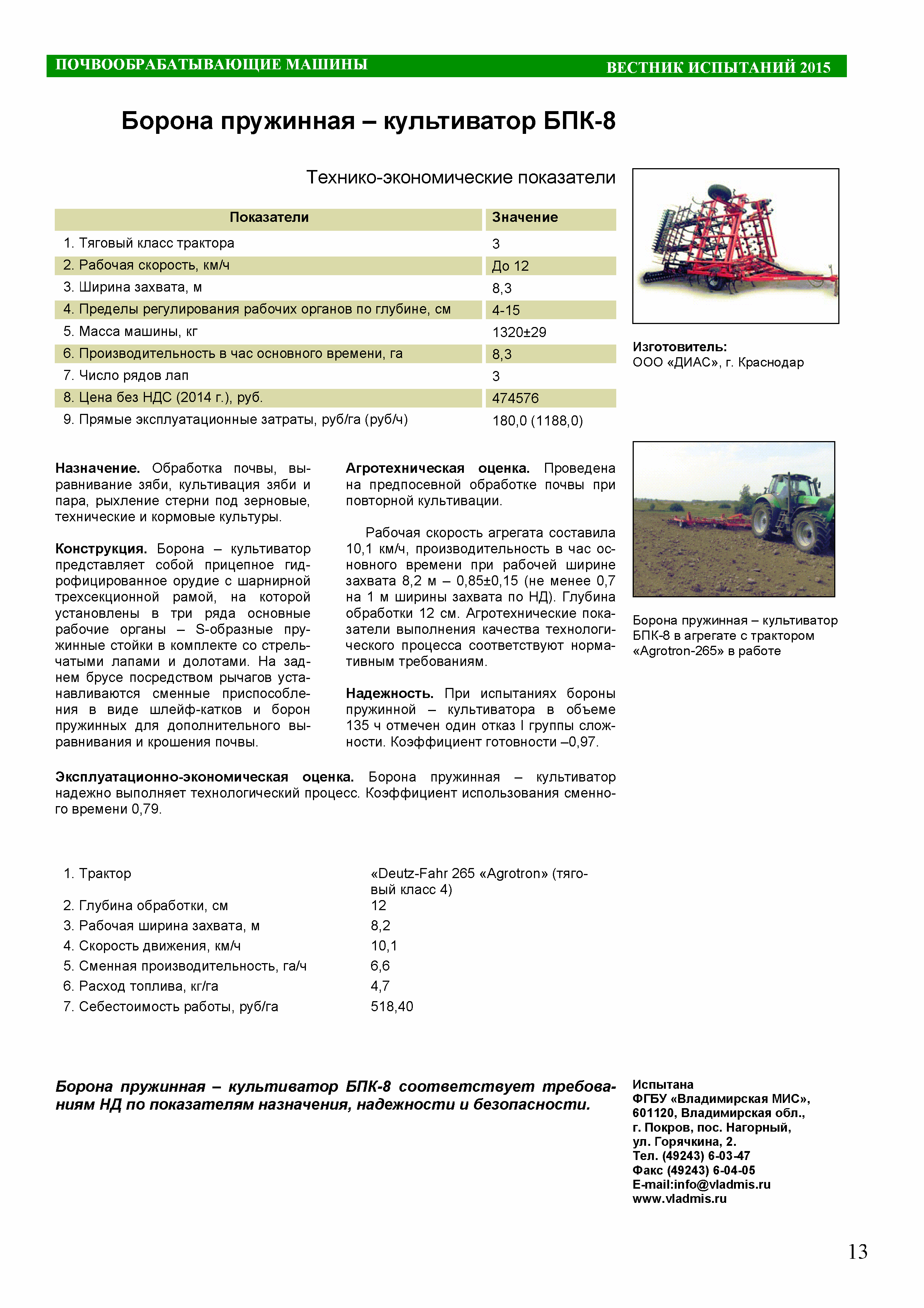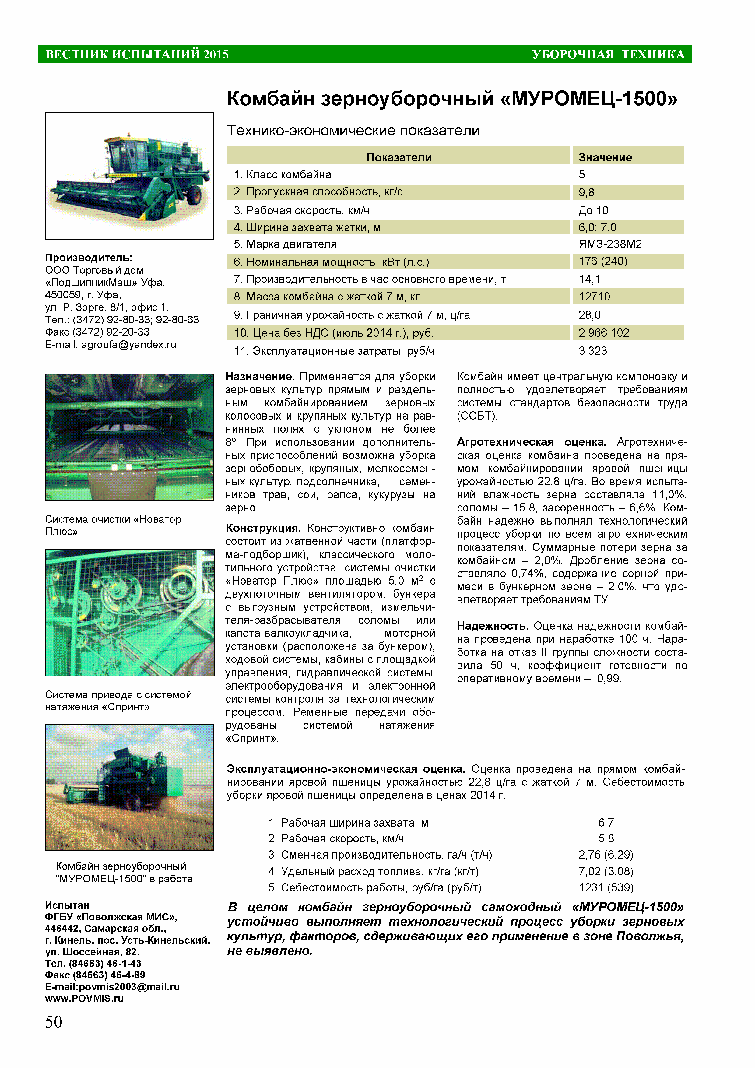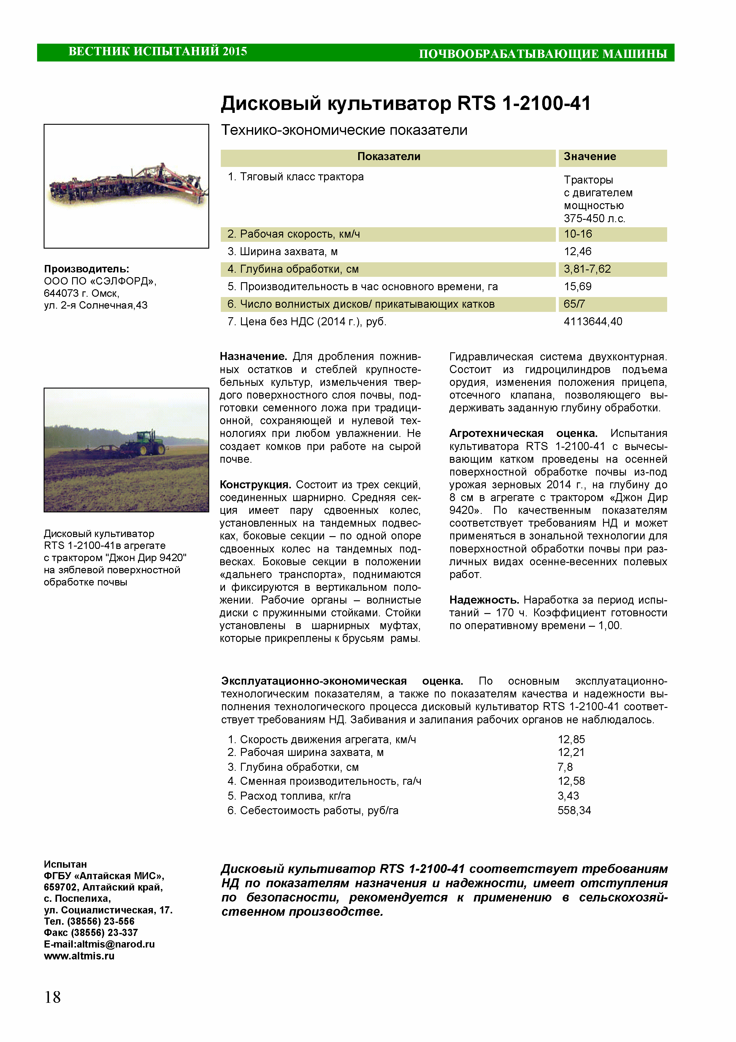 | Название рус.: | Вестник испытаний сельскохозяйственной техники 2015 |