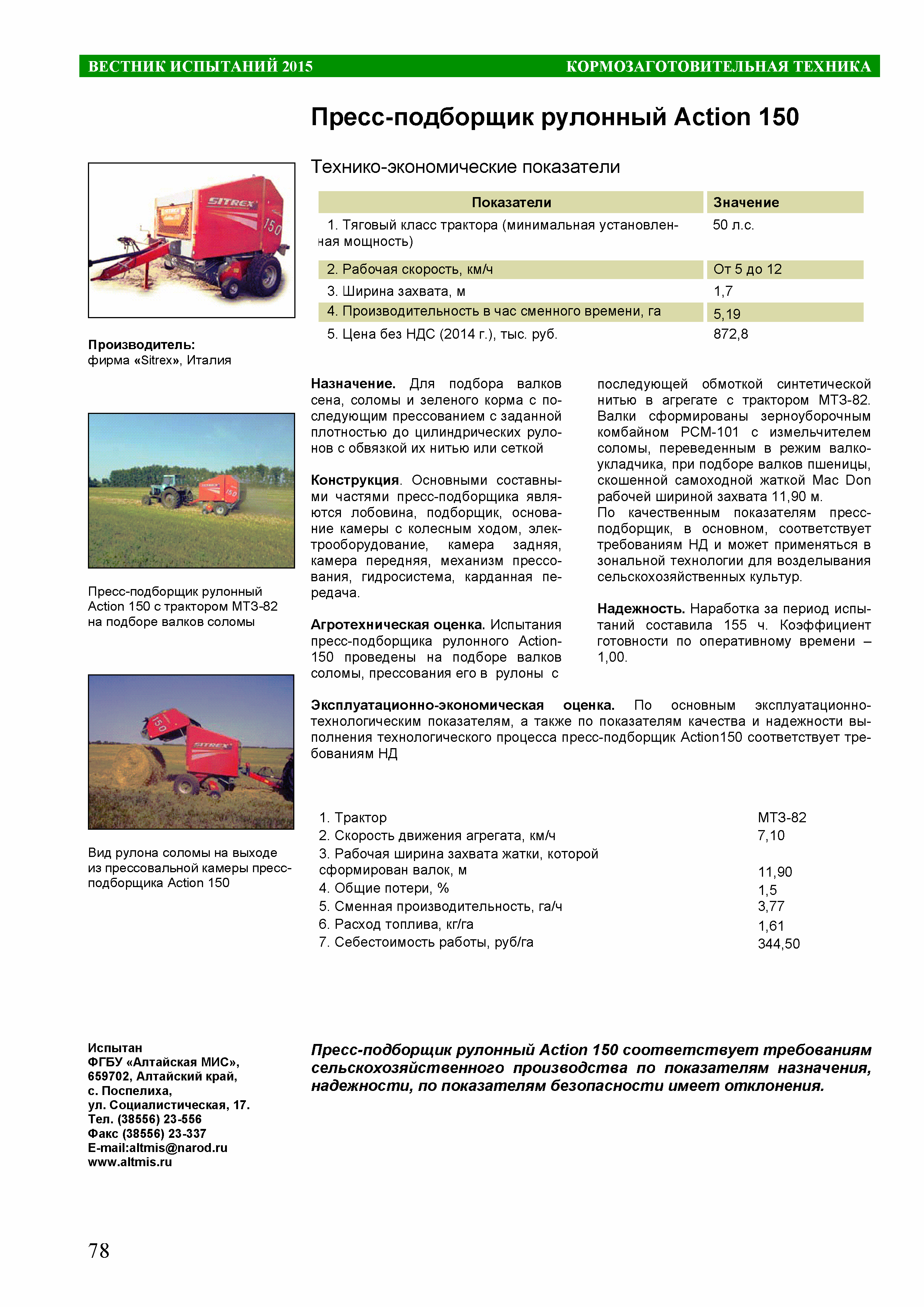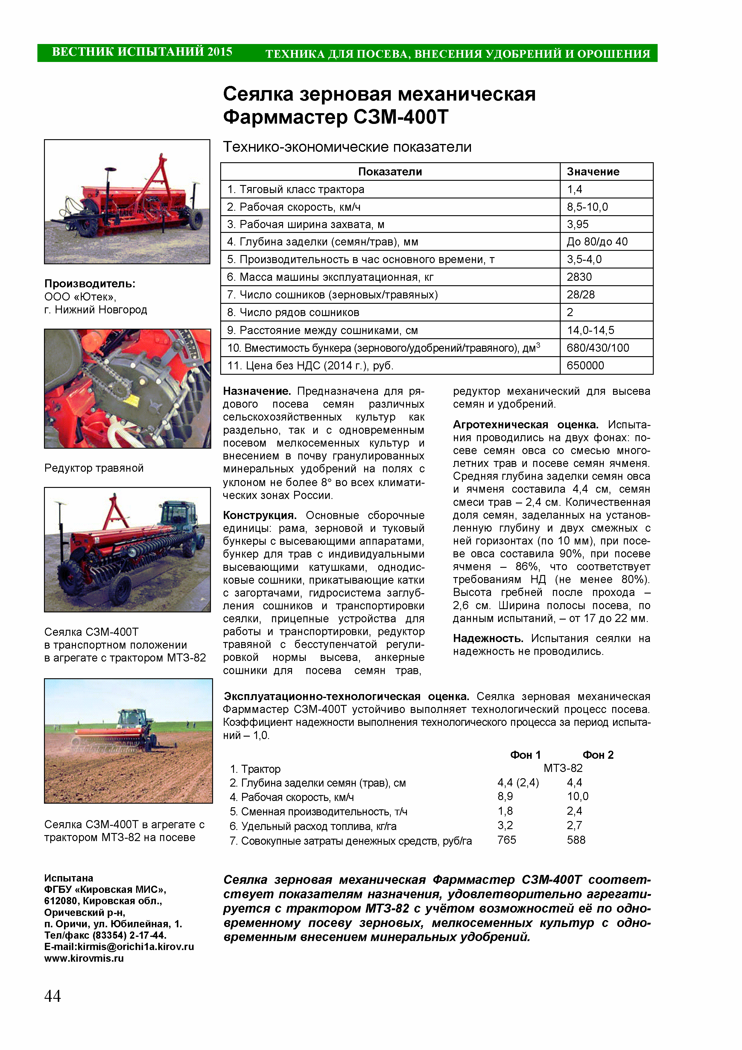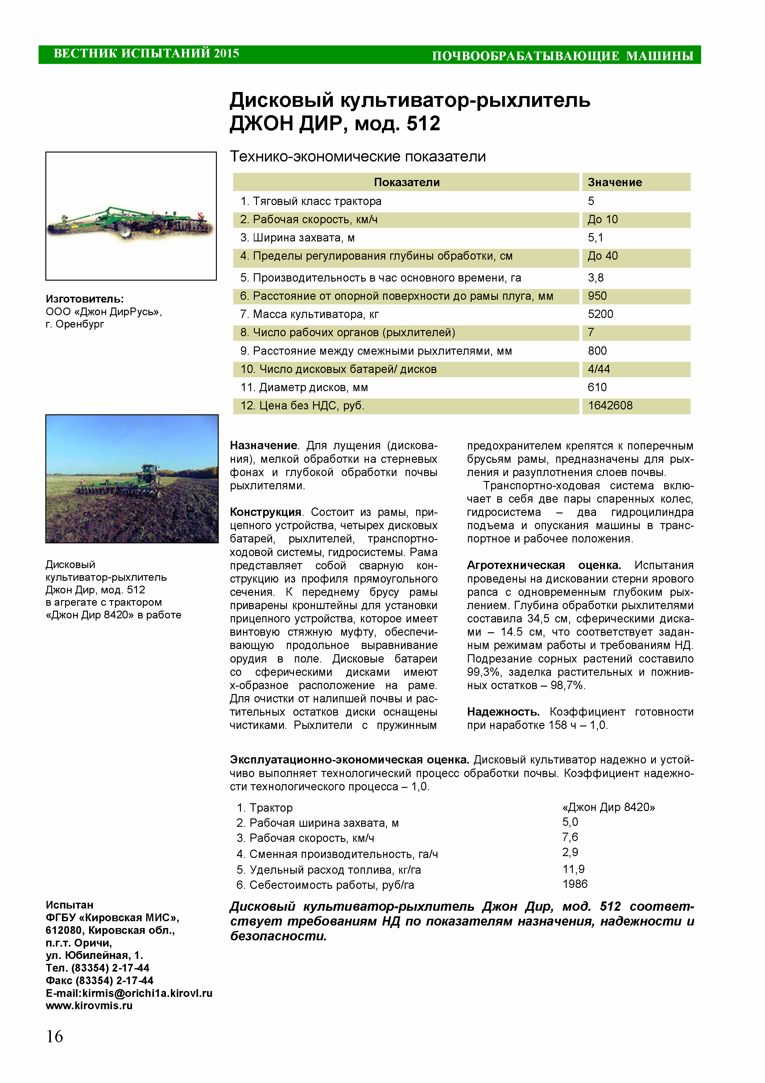 | Название рус.: | Вестник испытаний сельскохозяйственной техники 2015 |