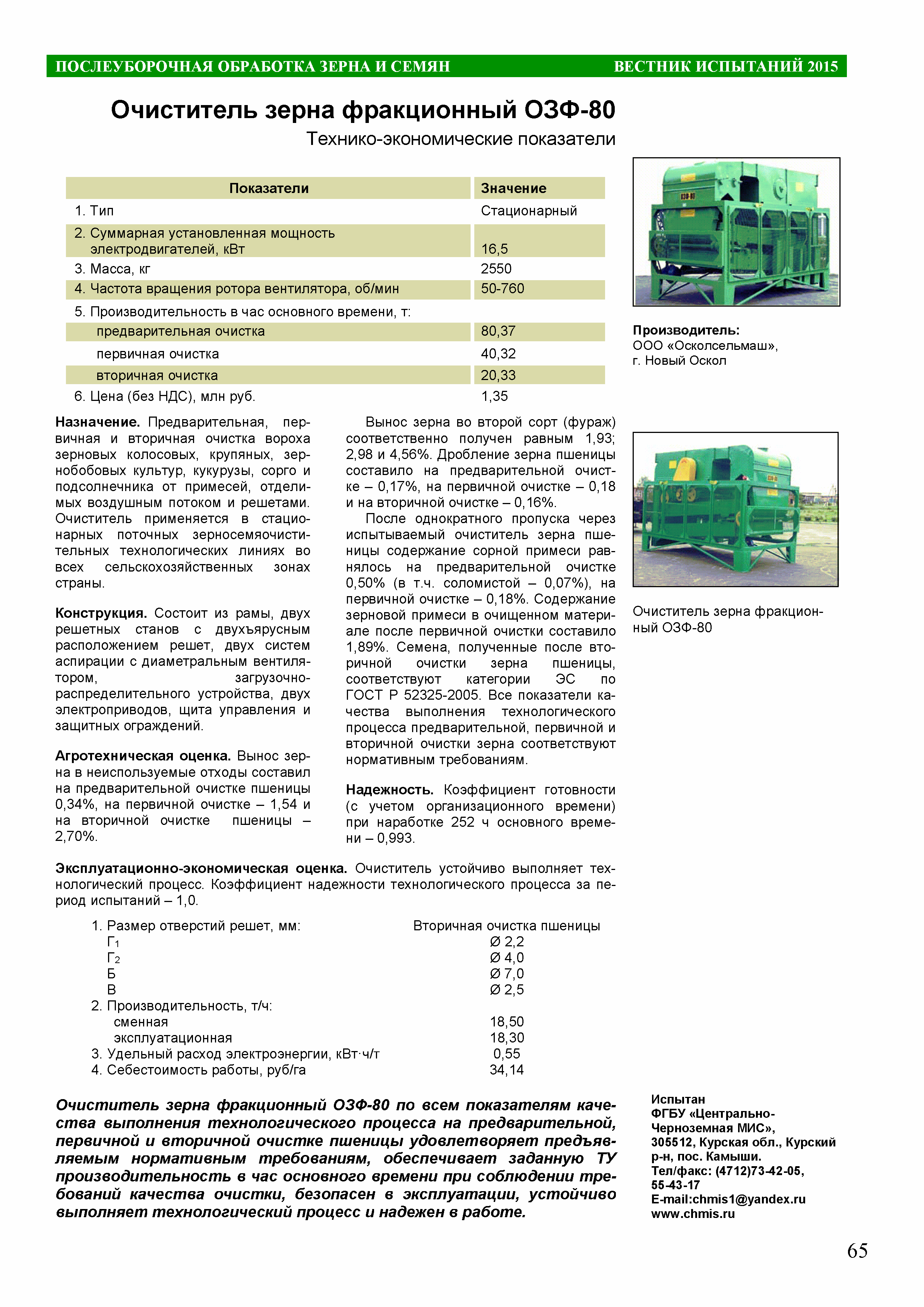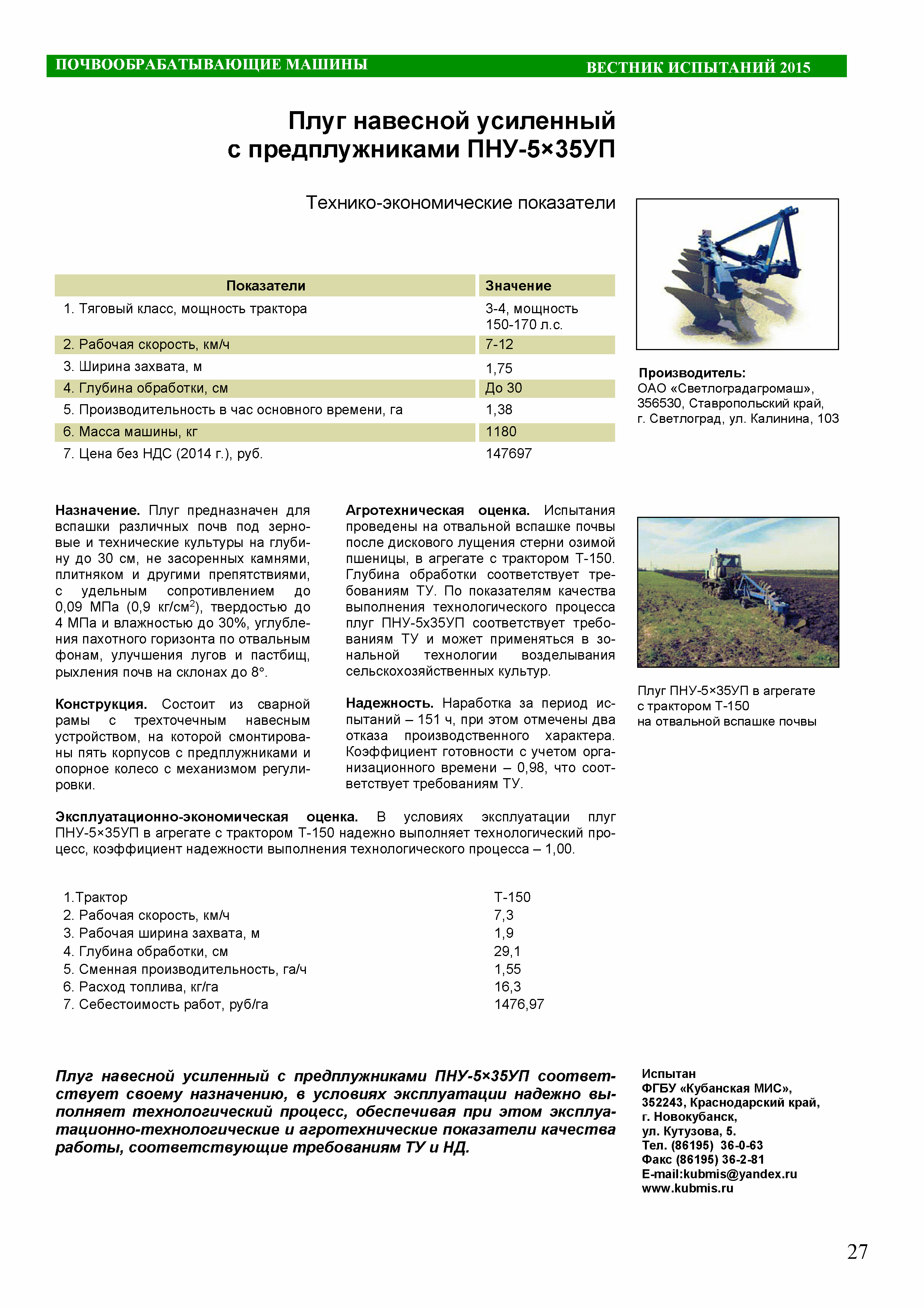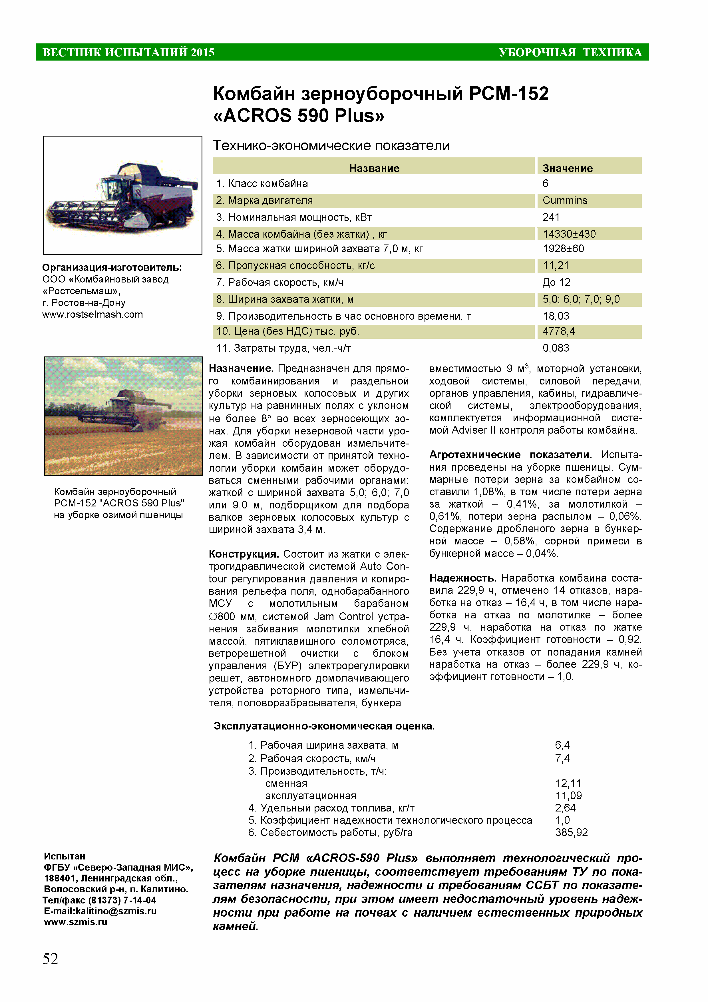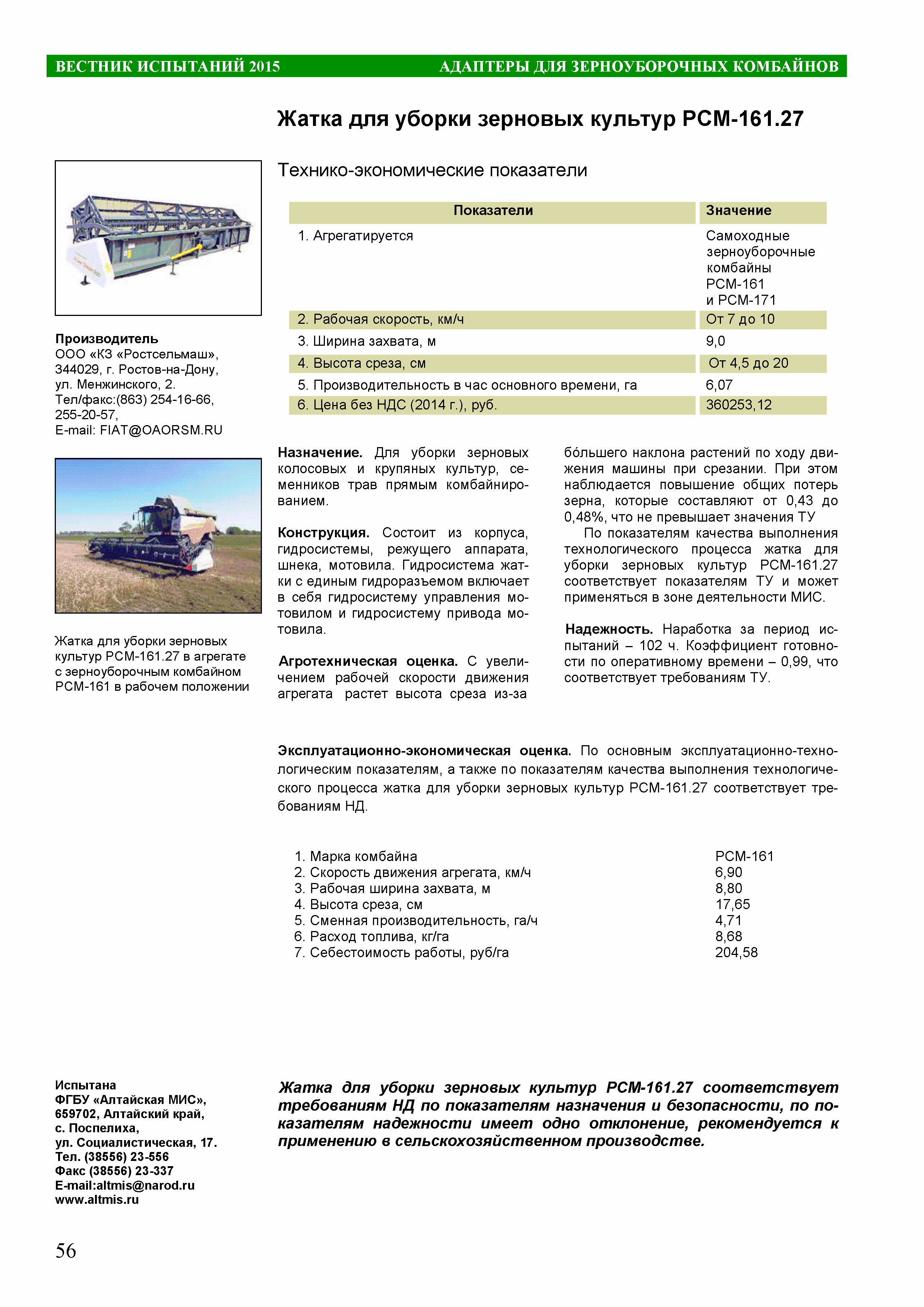 | Название рус.: | Вестник испытаний сельскохозяйственной техники 2015 |