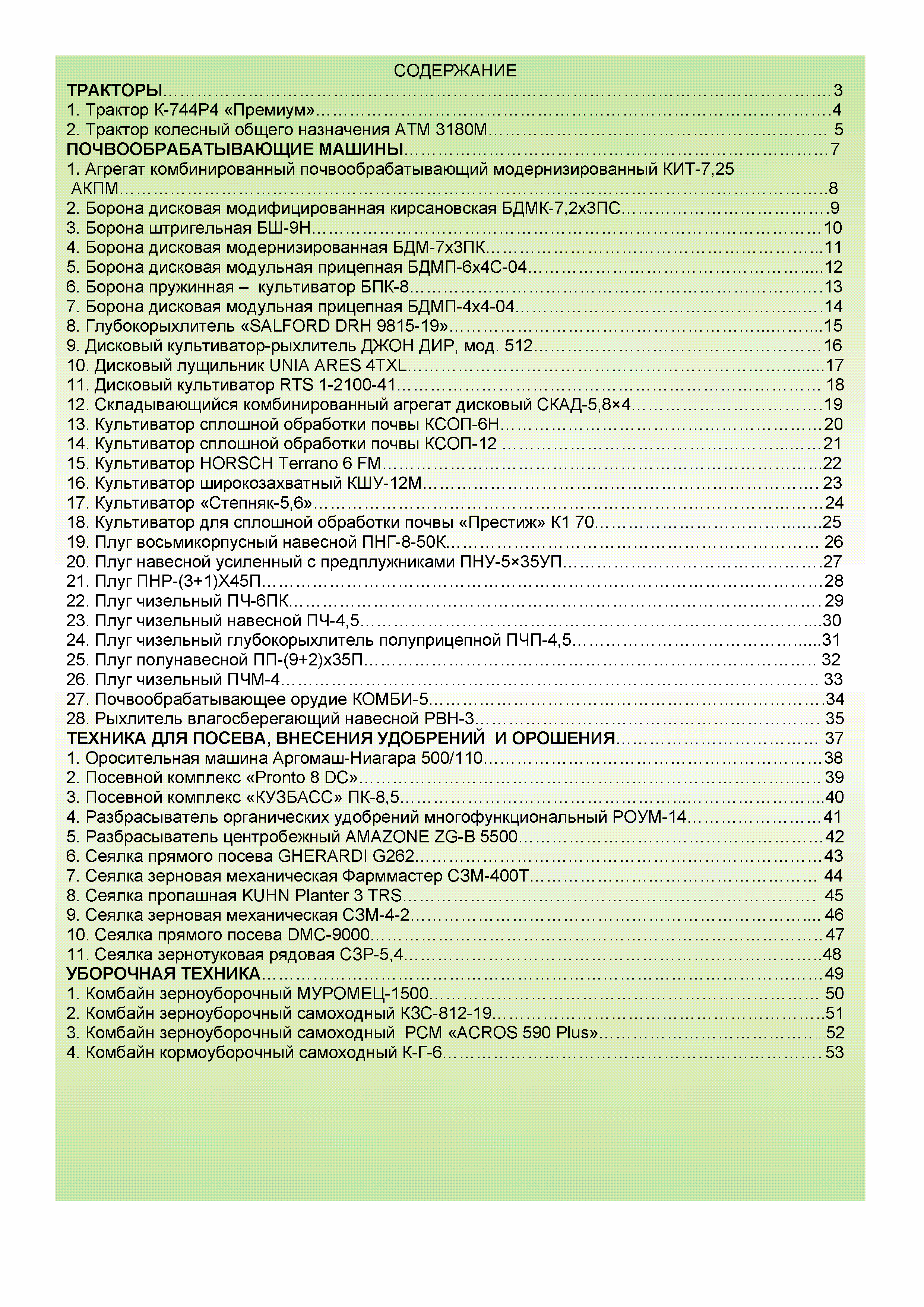 | Оглавление: | Тракторы Почвообрабатывающие машины Техника для посева, внесения удобрений и орошения Уборочная техника Адаптеры для зерноуборочных комбайнов Послеуборочная обработка зерна и семян Кормозаготовительная техника Животноводческие машины и оборудование Прицепное и навесное оборудование |