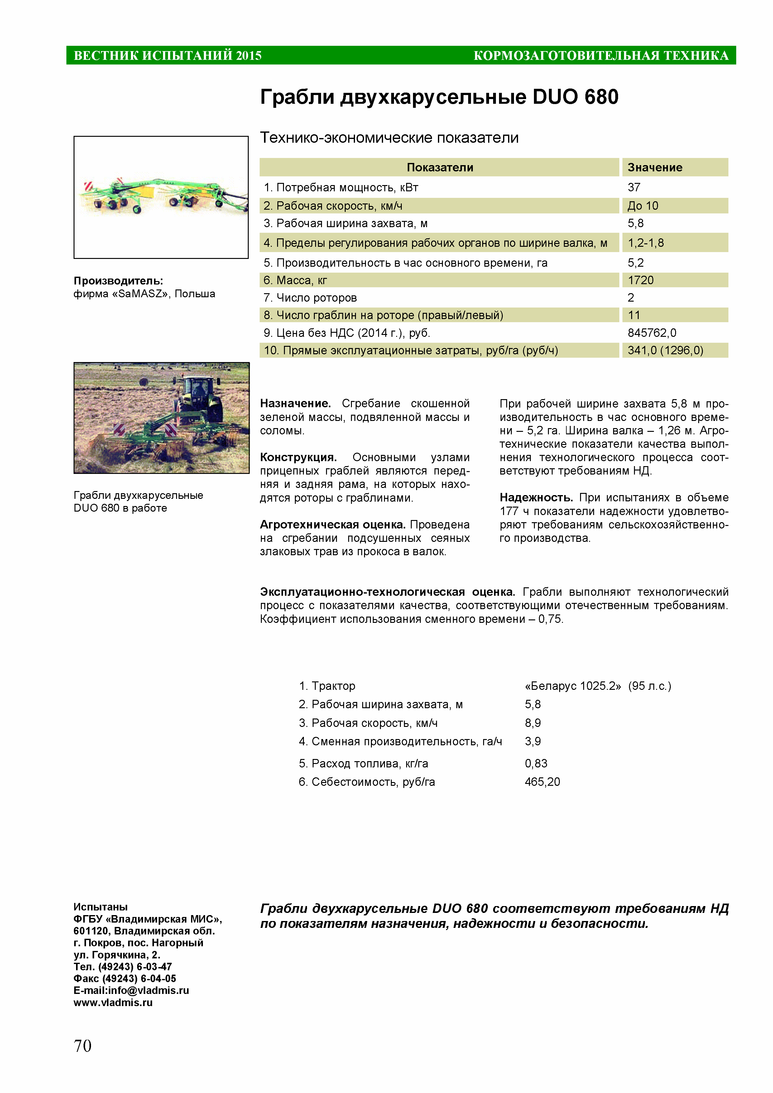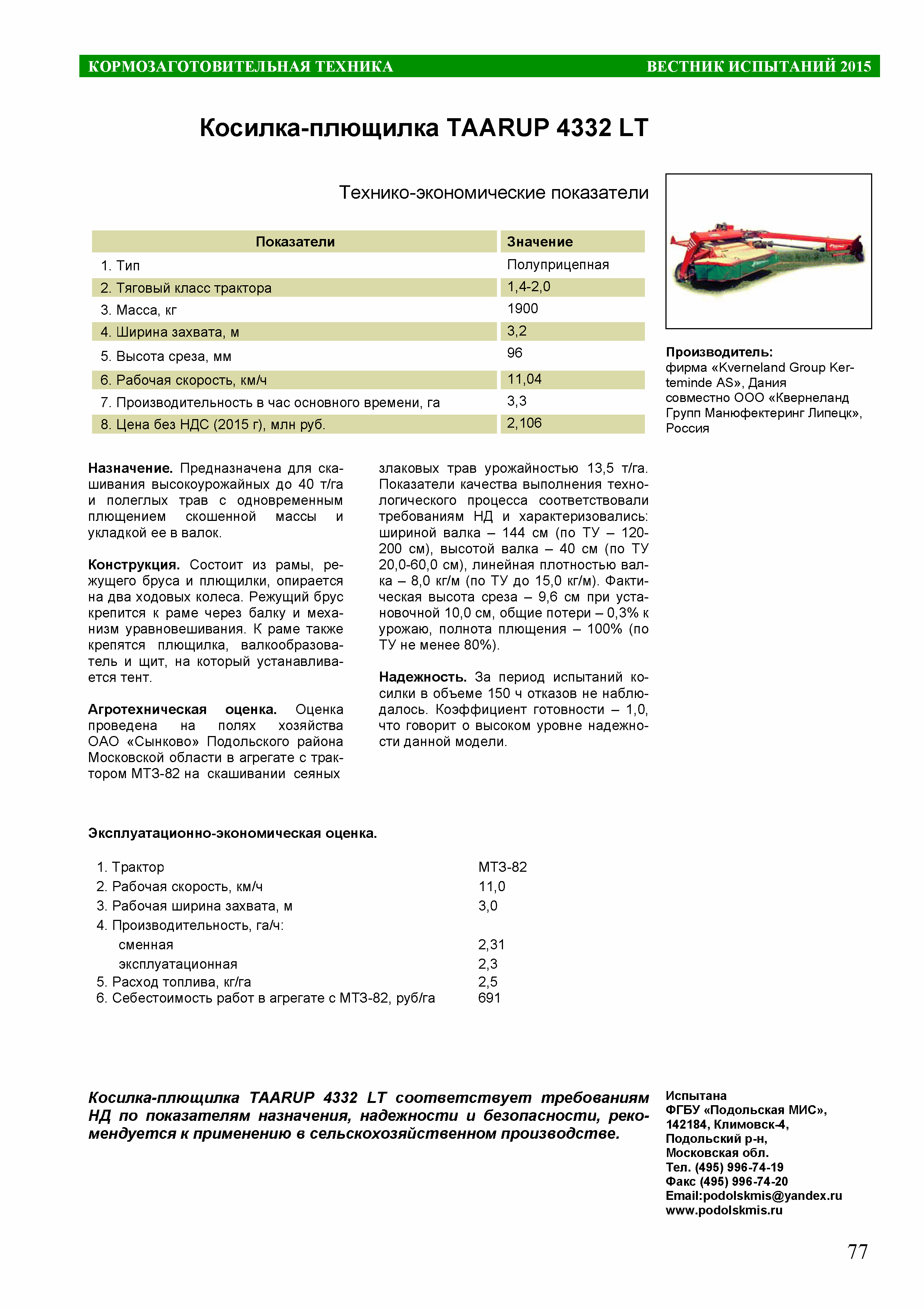 | Разработан: | Ассоциация испытателей сельскохозяйственной техники и технологий (АИСТ)