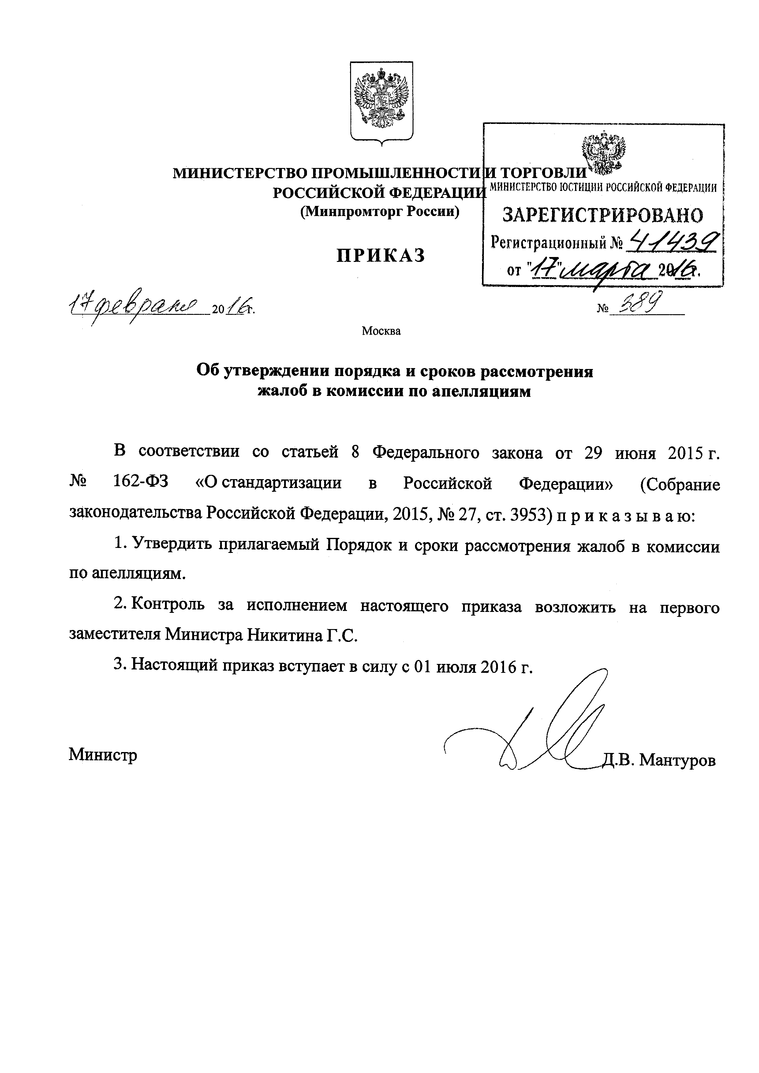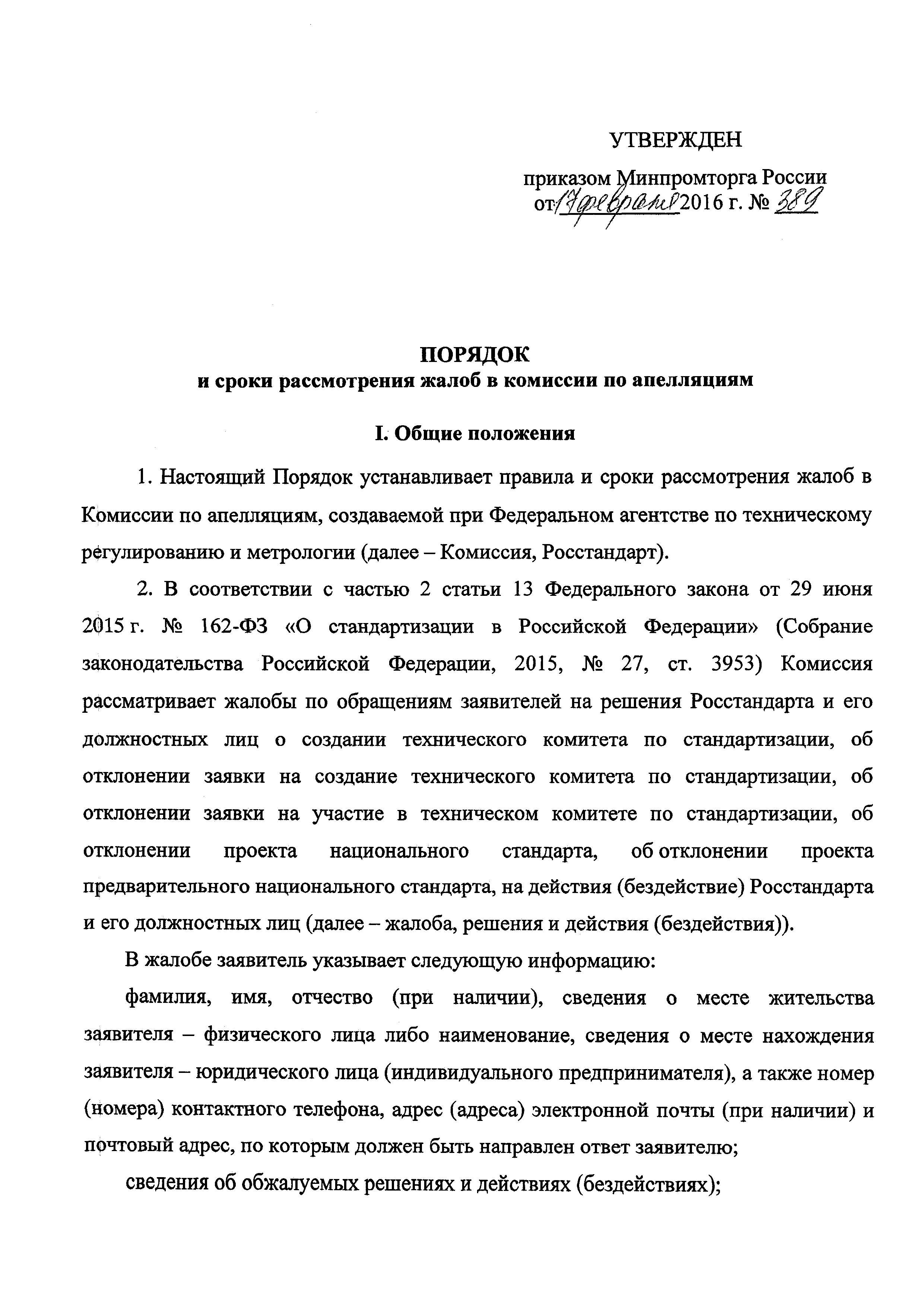 | Утверждён: | 17.02.2016 Министерство промышленности и торговли РФ (389)