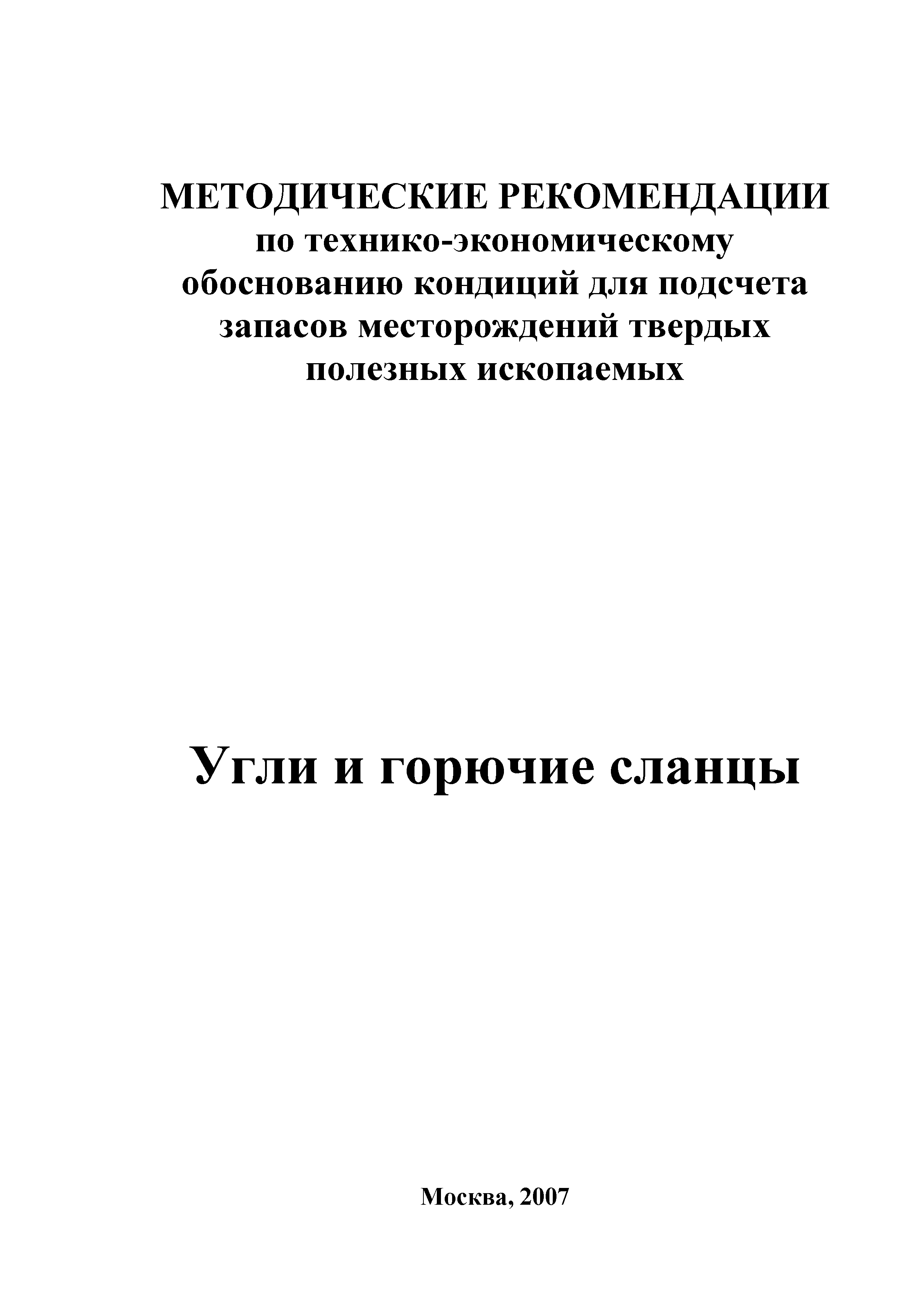 | Название рус.: | Методические рекомендации по технико-экономическому обоснованию кондиций для подсчета запасов месторождений твердых и полезных ископаемых. Угли и горючие сланцы |