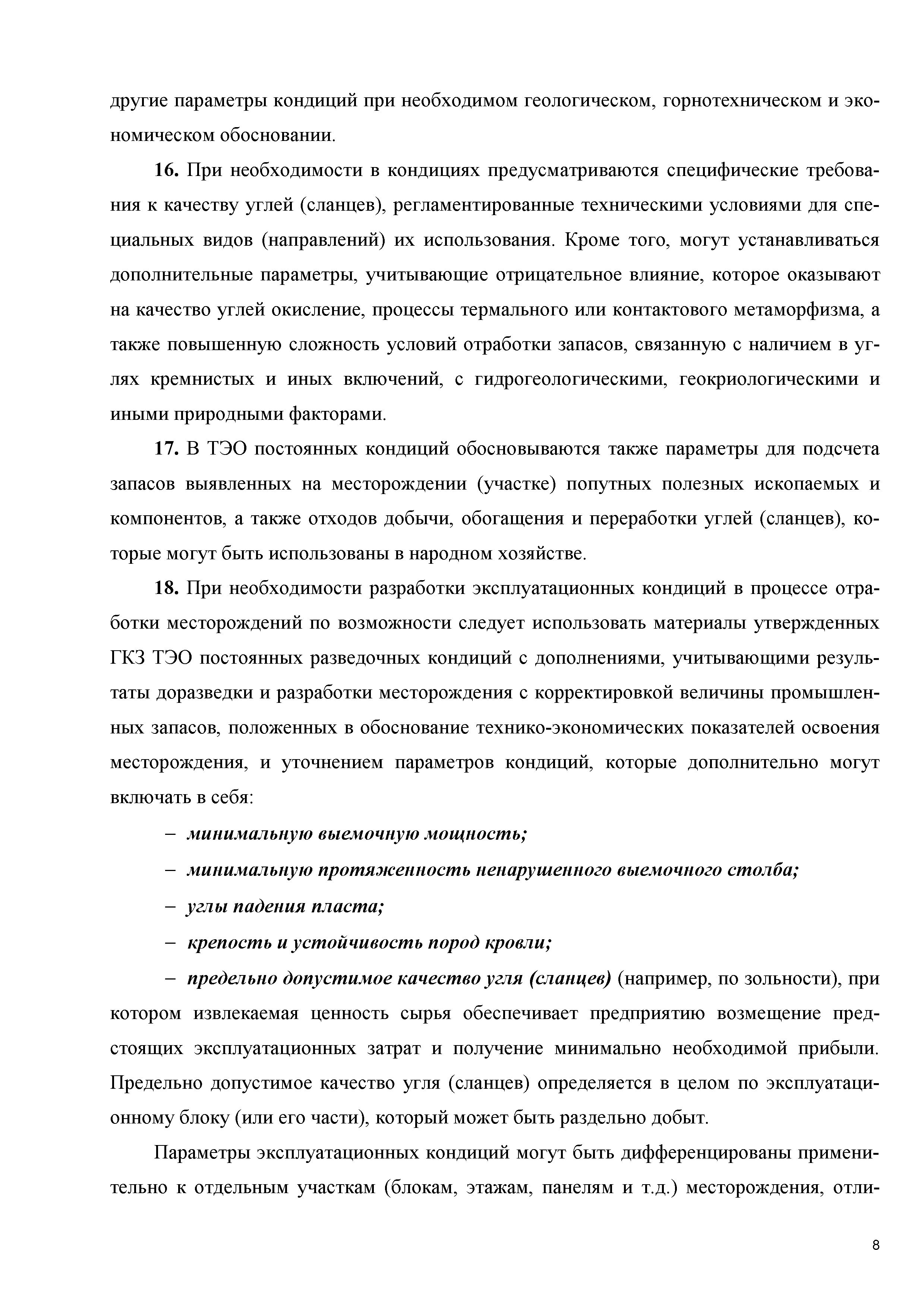 | Оглавление: | I Общие положения II Основные параметры кондиций, общий порядок их обоснования III Геологическое, гидрогеологическое и инженерно-геологическое обоснование кондиций IV Горнотехническое обоснование кондиций V Обоснование направления использования углей (сланцев) и технологии их обогащения (переработки) VI Экологическое обоснование кондиций VII Экономическое обоснование кондиций VIII Определение параметров кондиций Некоторые особенности разработки ТЭО кондиций Приложение 1. Денежные потоки Приложение 2. Основные технико-экономические показатели освоения месторождения (для месторождений угля и горючих сланцев) Приложение 3. Рекомендации по обоснованию кондиций для подсчета запасов попутных полезных ископаемых и компонентов, а также отходов производства I Попутные полезные ископаемые II Попутные полезные компоненты III Отходы добычи и переработки углей (сланцев) IV Метан |