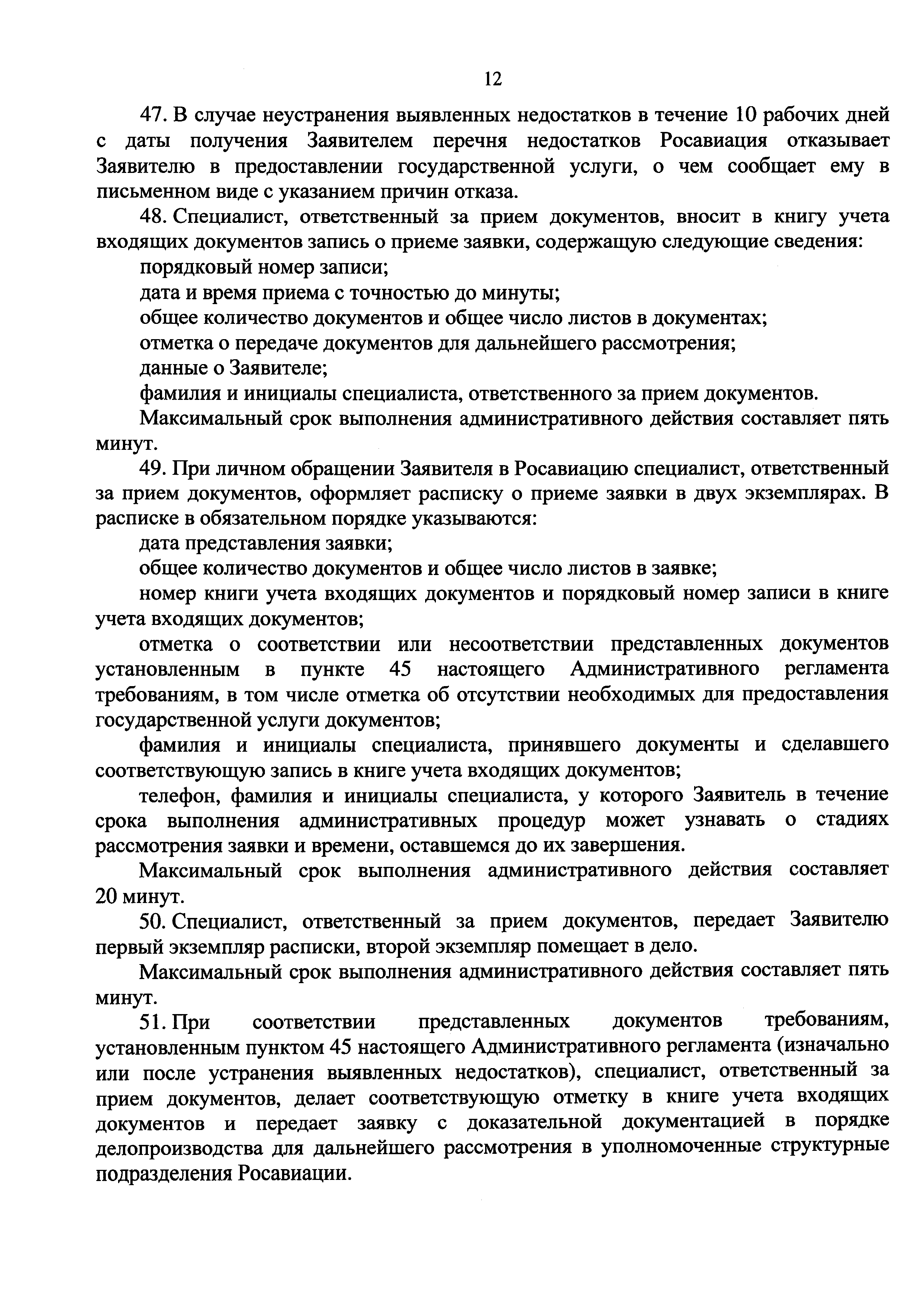 | Область применения: | Административный регламент Федерального агентства воздушного транспорта предоставления государственной услуги по выдаче документа, подтверждающего соответствие юридических лиц, осуществляющих аэронавигационное обслуживание полетов воздушных судов пользователей воздушного пространства Российской Федерации, требованиям федеральных авиационных правил определяет сроки и последовательность выполнения административных процедур (действий) Федерального агентства воздушного транспорта (Росавиации) по выдаче документа, подтверждающего соответствие юридических лиц, осуществляющих аэронавигационное обслуживание полетов воздушных судов пользователей воздушного пространства Российской Федерации, требованиям федеральных авиационных правил, а также порядок взаимодействия должностных лиц Росавиации с юридическими лицами, являющимися потребителями результатов предоставления государственной услуги |